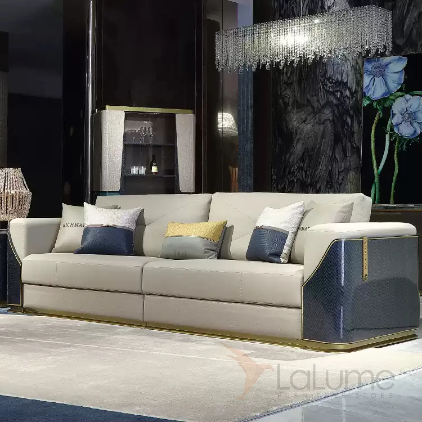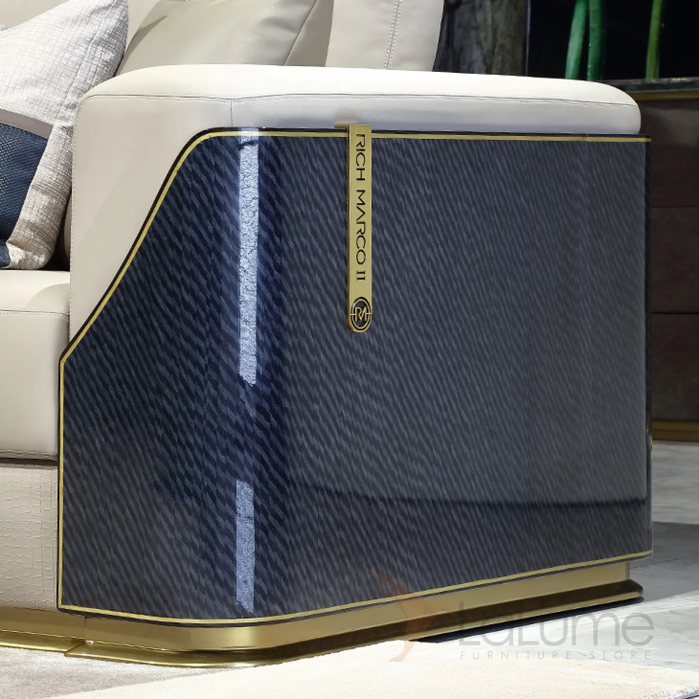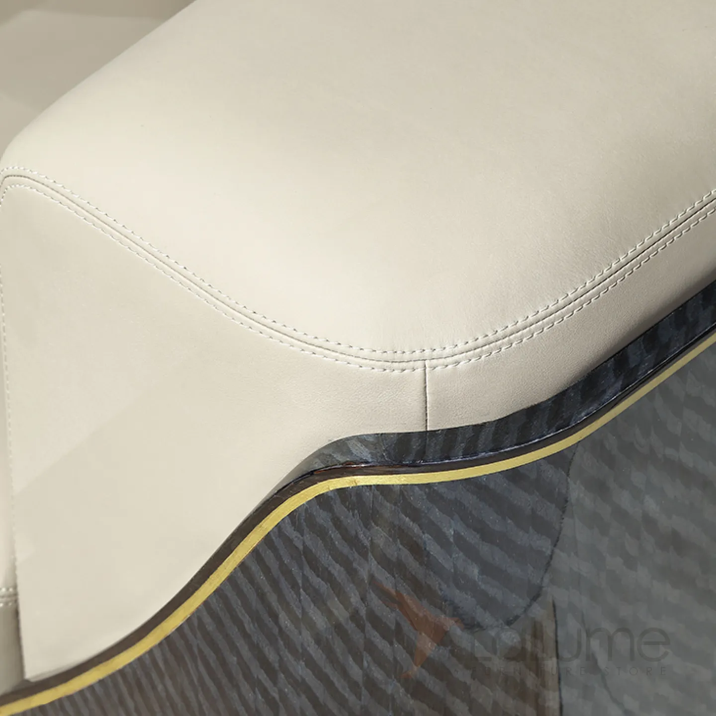 Диван, выполненный из натуральной кожи и красного дерева со шпоном, станет настоящим украшением вашего дома. Изысканные золотистые элементы придают ему роскошный и оригинальный вид. Эргономичный дизайн обеспечивает максимальный комфорт, а в комплекте идут подушки, которые сделают ваш отдых еще более приятным. Вы можете выбрать модель на 2 или 4 места в зависимости от ваших потребностей.