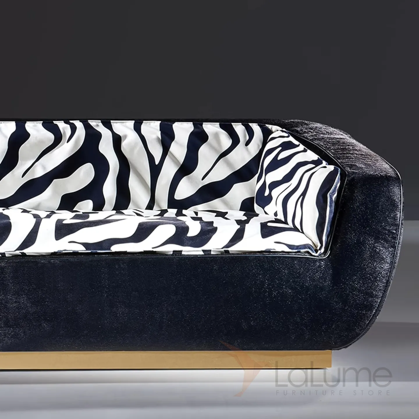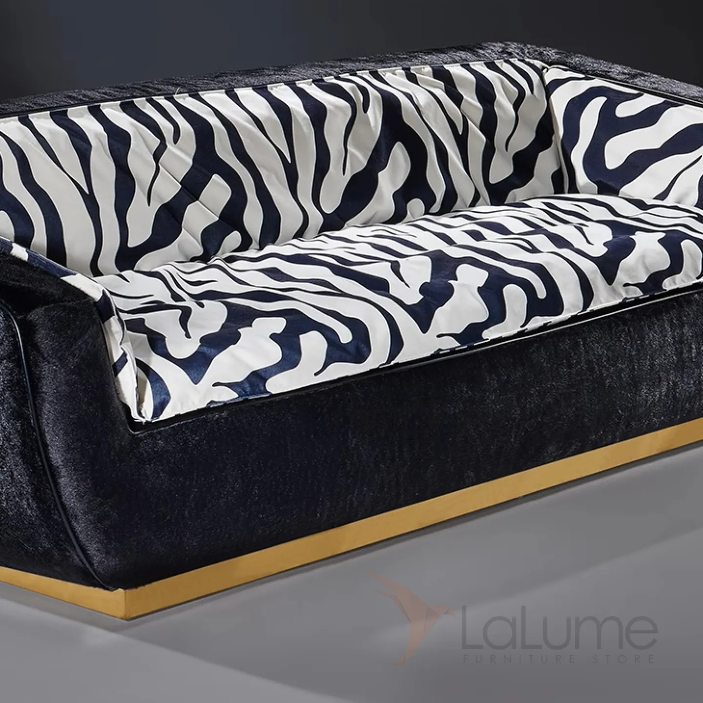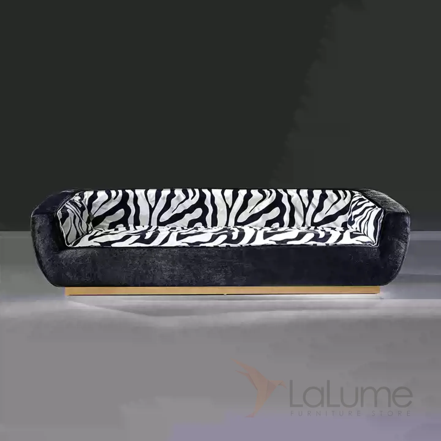 Этот уютный и просторный диван имеет прочное основание из нержавеющей стали и дерева. Сиденье изготовлено из износостойкого мебельного поролона и пружинного блока в форме змейки, а его обивка выполнена из высококачественного плюша. Принт в виде зебры придаст вашему интерьеру яркий акцент. Вы можете выбрать модель, подходящую для 3 или 4 человек.