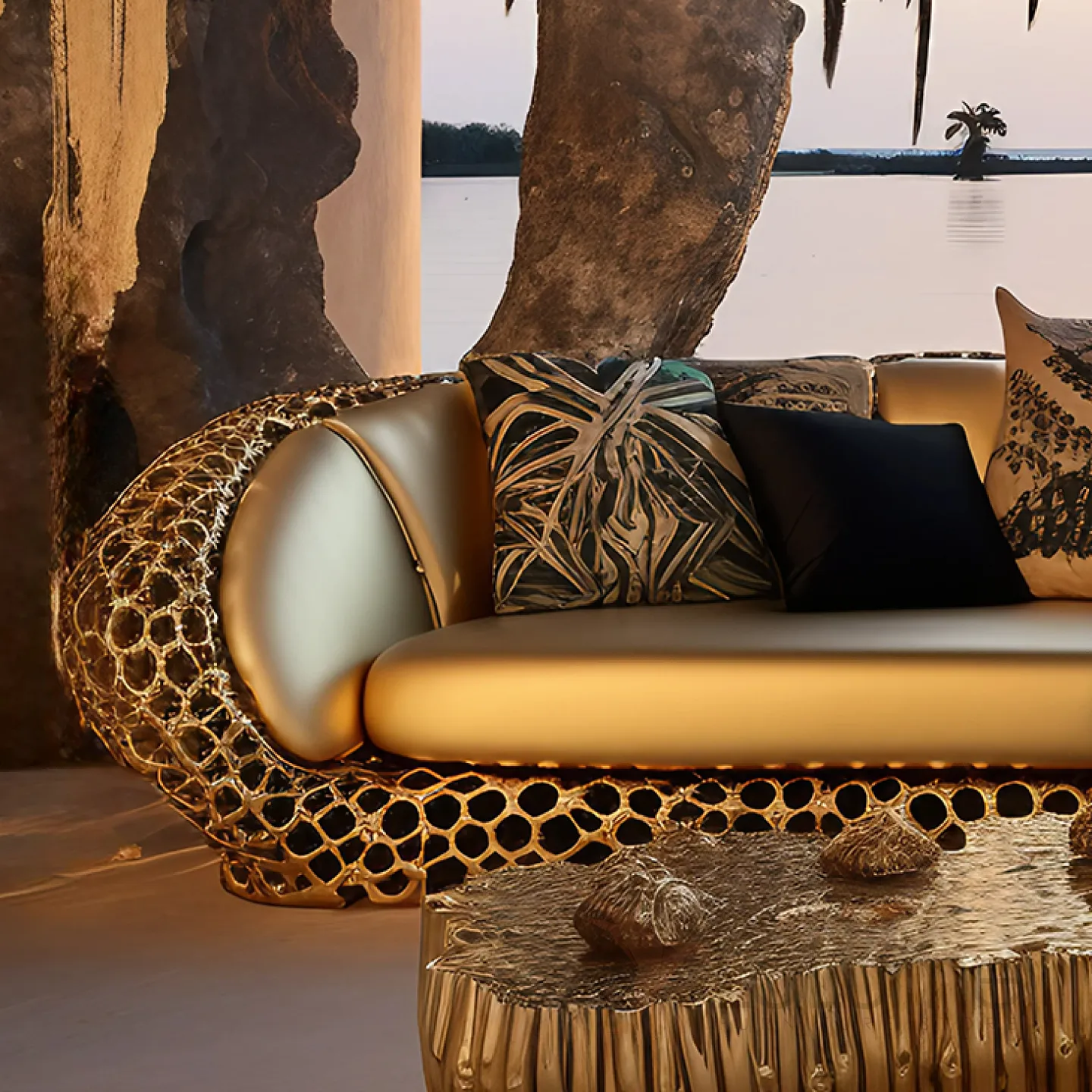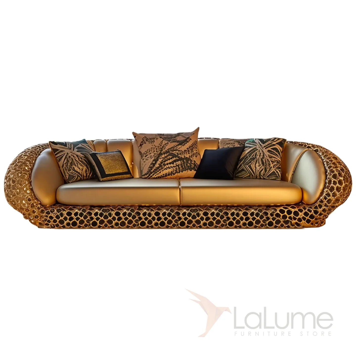 Диван для ценителей современной красоты и изысканных фактур. Его основание выполнено из экологичного ячеистого пластика ASA, а сидение — из воловьей кожи медного оттенка с поролоном и пружинами. В комплекте идут подушки. Этот диван станет ярким акцентом в вашем интерьере.