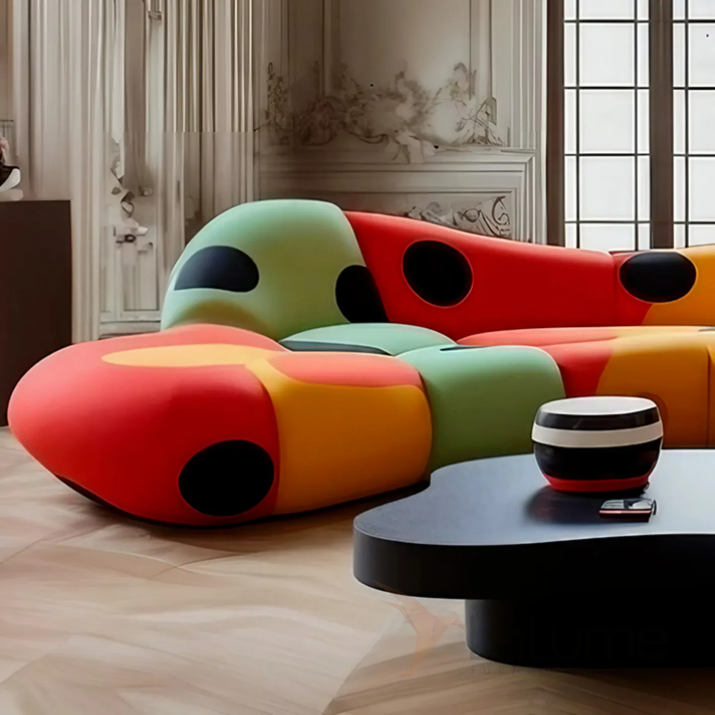 Этот диван, созданный для ценителей модерна, выделяется необычной формой и яркой расцветкой. Он станет центральным элементом вашего интерьера. Деревянное основание, сидение из высококачественного поролона и обивка из мебельного текстиля с оригинальным принтом делают его стильным и комфортным.