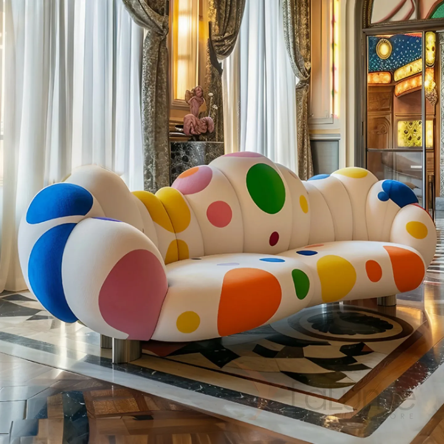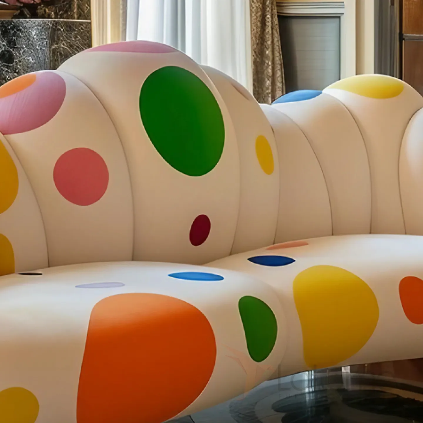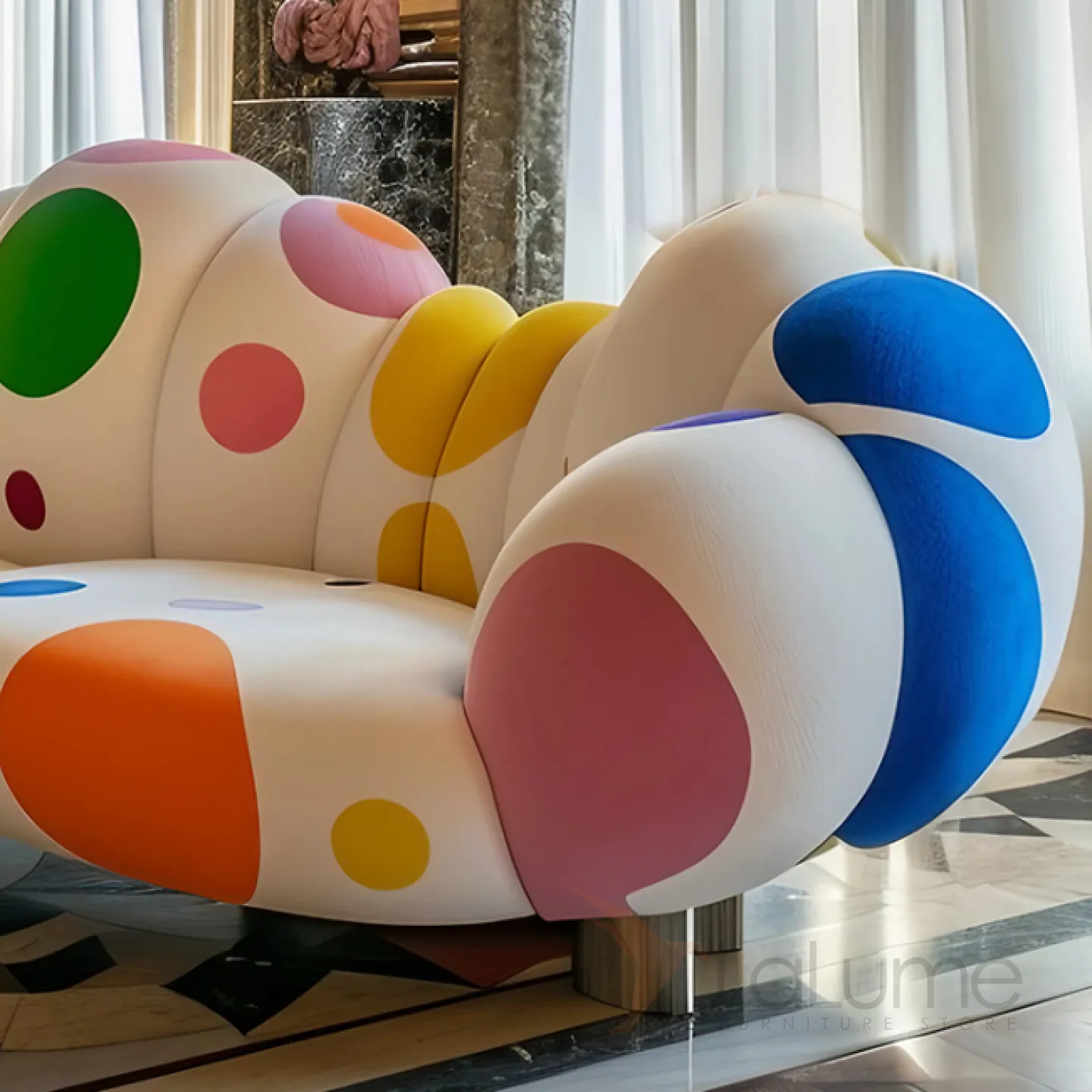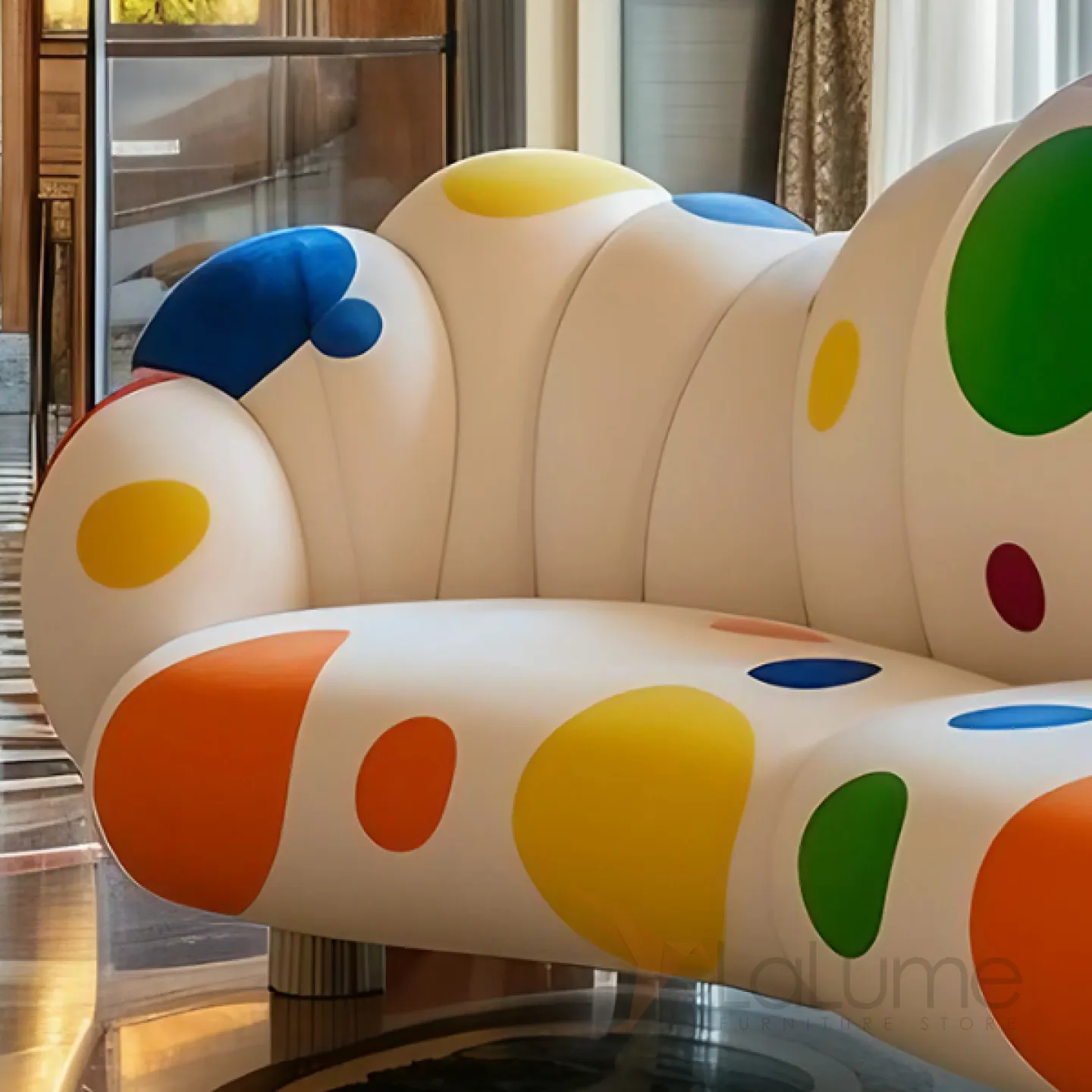 Оригинальный диван с эксклюзивным дизайном выполнен из высококачественной мебельной ткани. В качестве наполнителя применён мягкий пенополиуретан. Диван предназначен для трёх или четырёх человек.