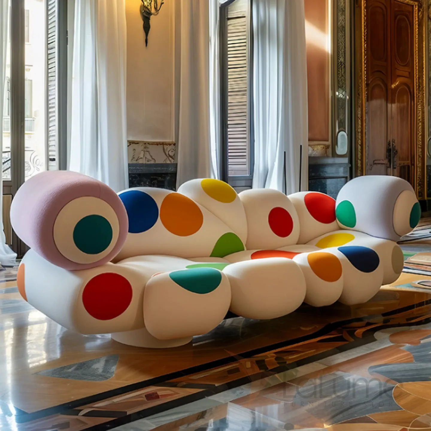 Этот диван создан с уникальным дизайном и изготовлен из премиальной мебельной ткани. Внутри — мягкий пенополиуретан, обеспечивающий комфорт. Диван рассчитан на троих или четверых человек.