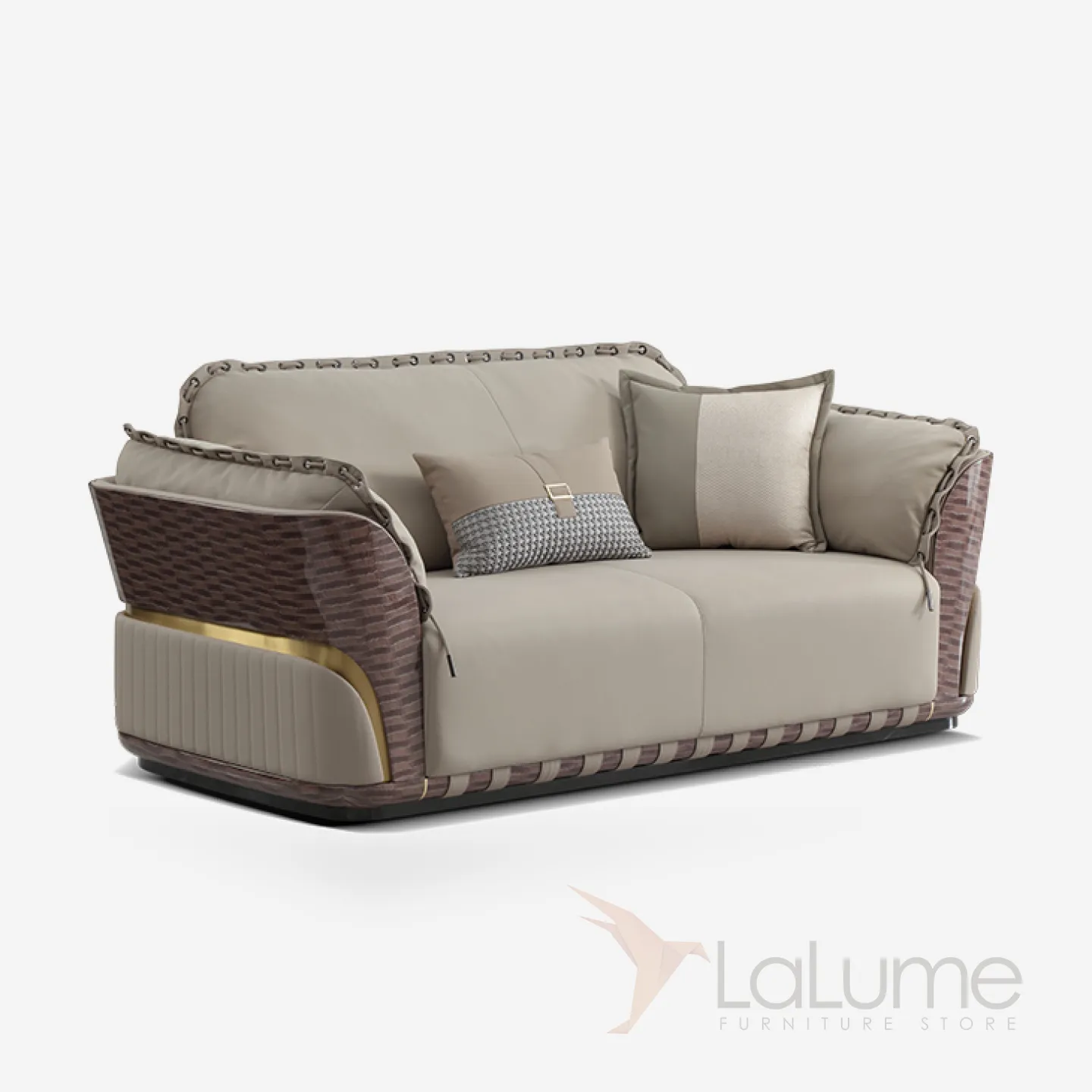 Диван выполнен из долговечной древесины и шпона. Обивка из матовой кожи высшего качества. Удобная спинка и мягкие подушки обеспечивают комфорт. Модели рассчитаны на двух, трёх или четырёх человек.