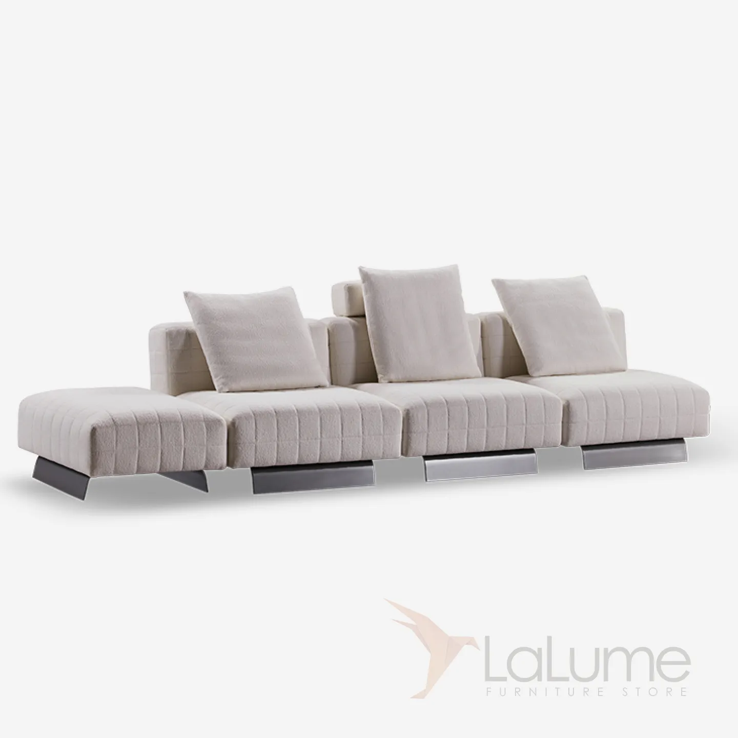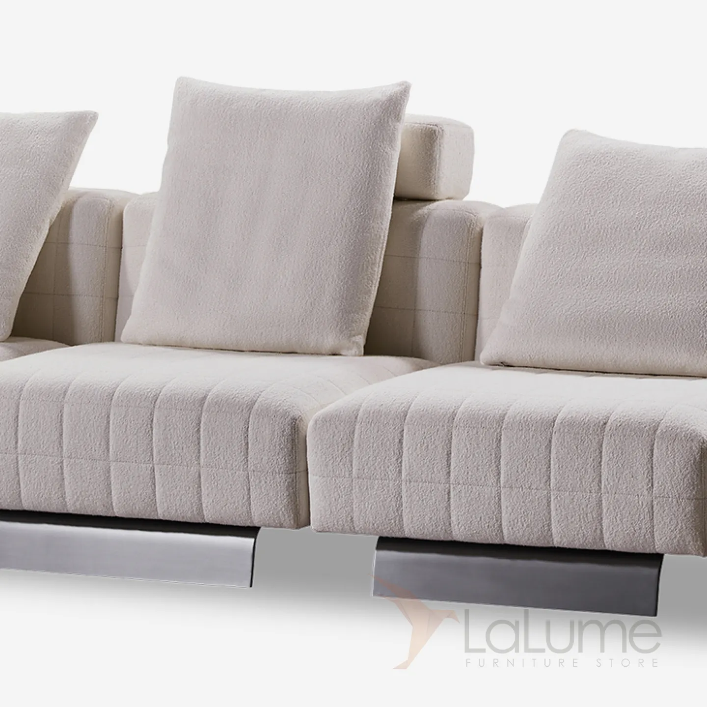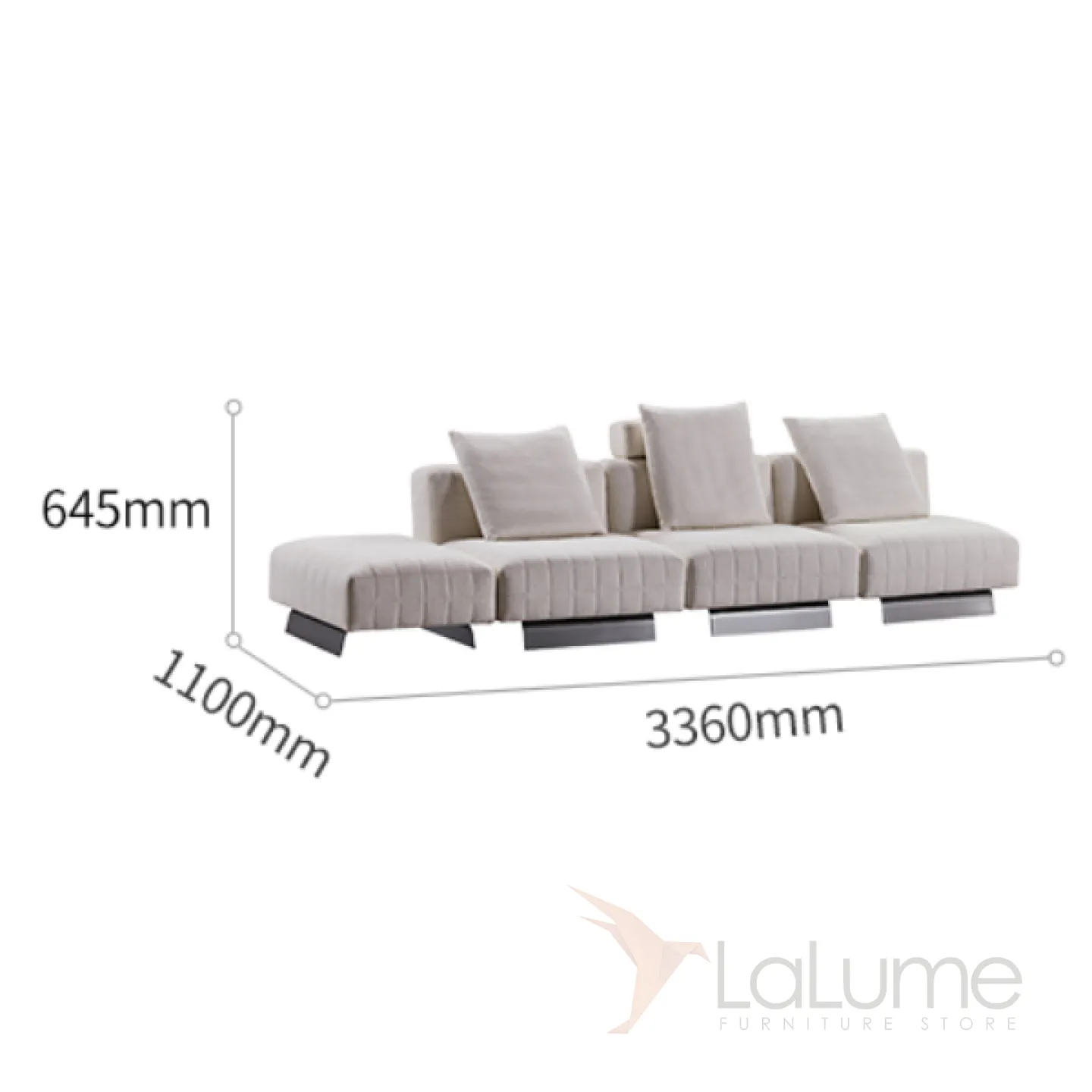 Стильный диван с прочным каркасом из металла и берёзы, наполненный поролоном для оптимальной мягкости. Обивка – высококачественный мебельный текстиль с нежной фактурой. В комплекте – дизайнерские подушки.