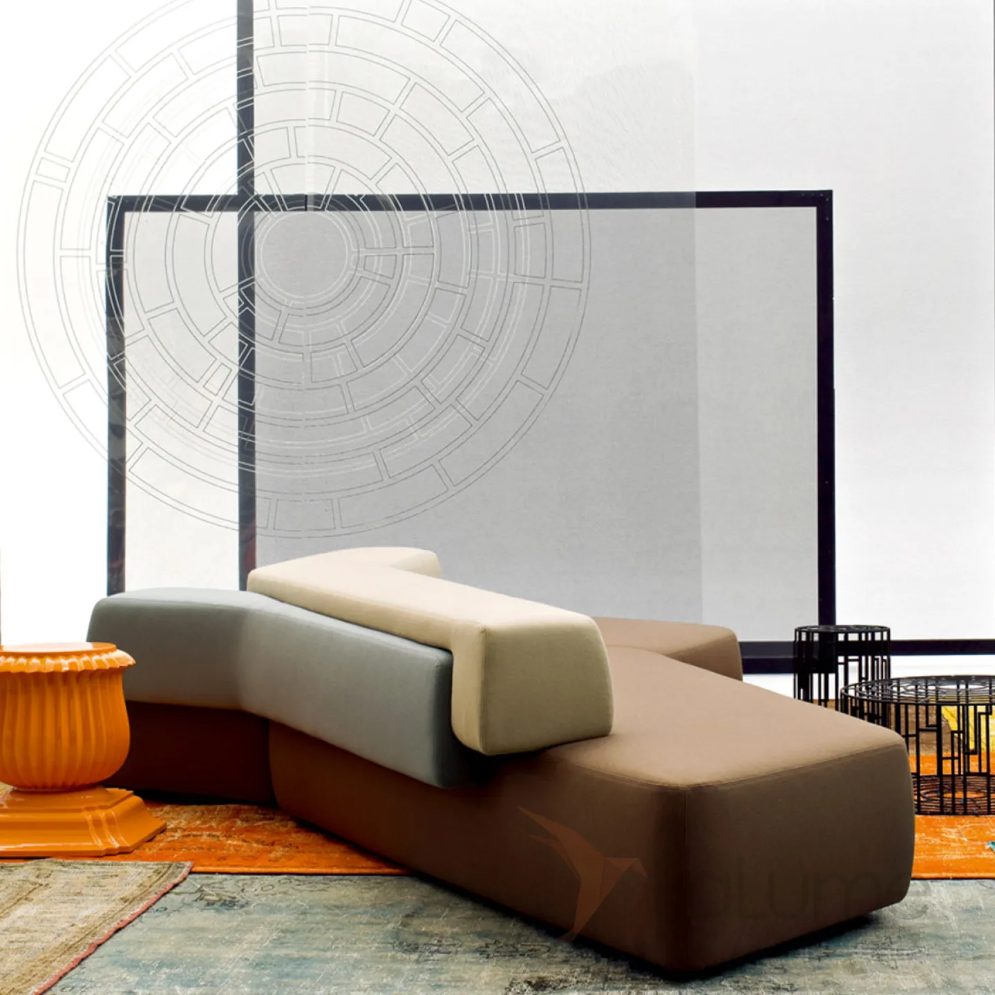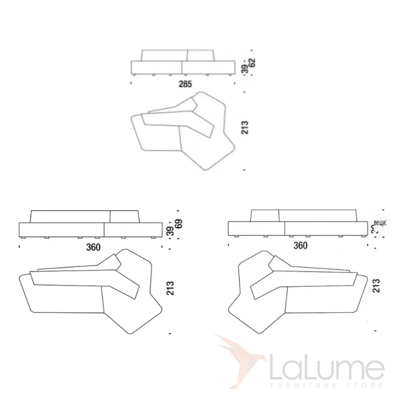 Этот диван отличается необычной формой и разной длиной выступов. Сидеть можно с разных сторон, что удобно для большой гостиной. Он позволяет оригинально организовать пространство для отдыха. Вы можете выбрать диван с правосторонней или левосторонней спинкой, а также разных размеров. Изготовлен из дерева, обит качественным поролоном и мебельным текстилем.