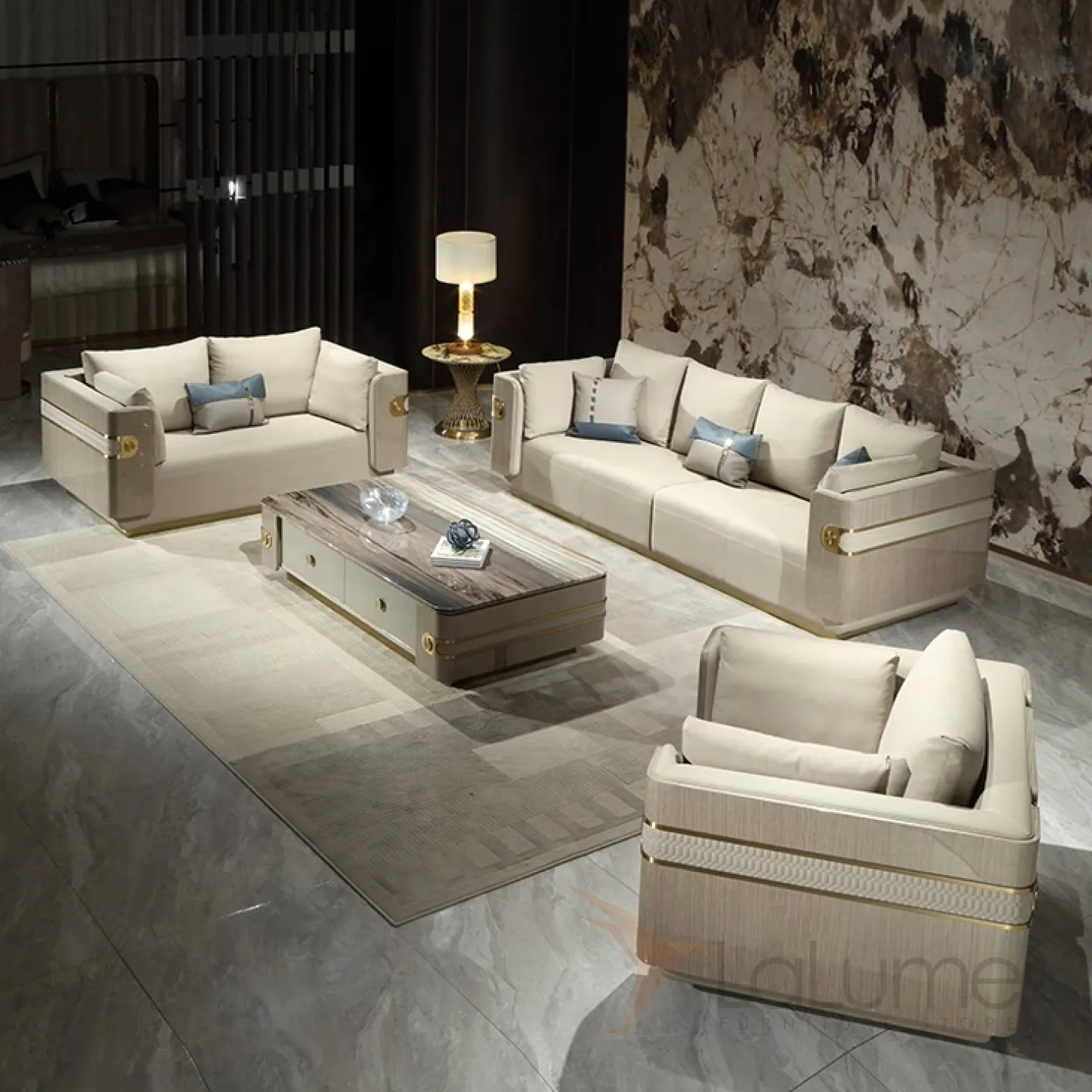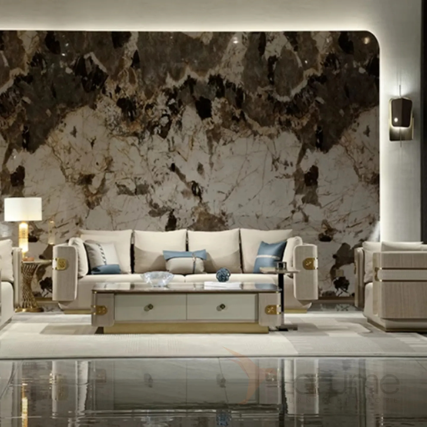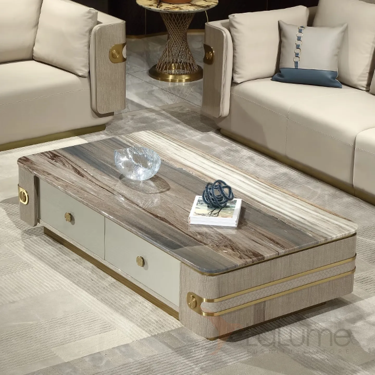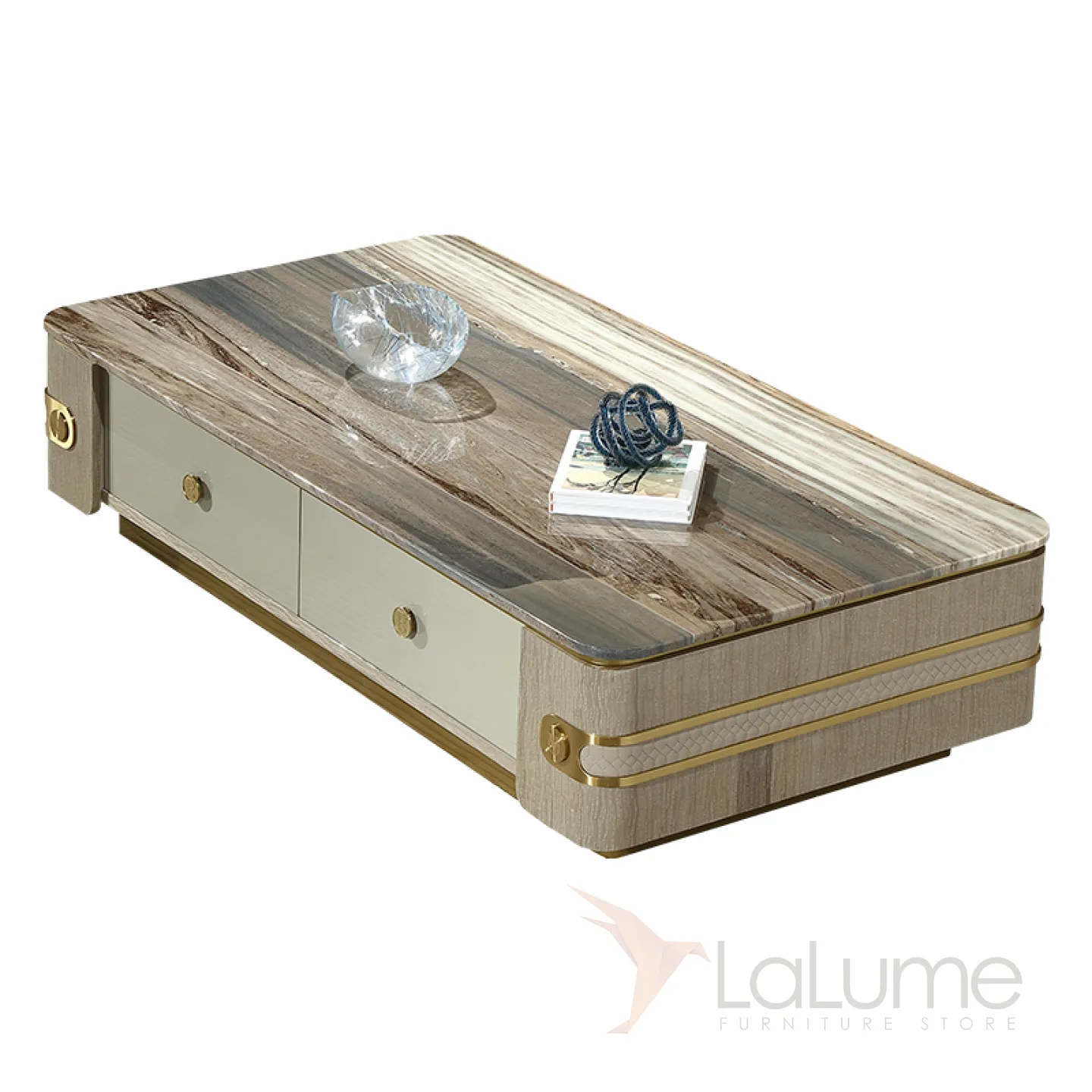 Элегантный журнальный столик MIVICA из мрамора и красного дерева JS38214-32