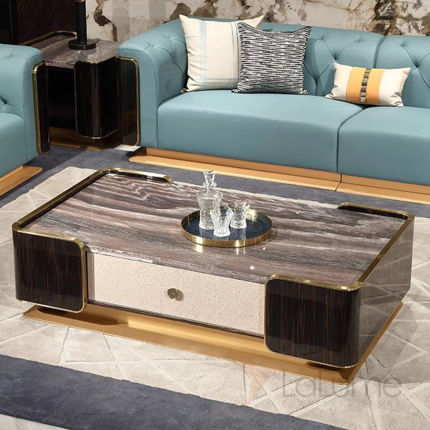 Элегантный журнальный столик MIVICA из мрамора и красного дерева JS38257-32