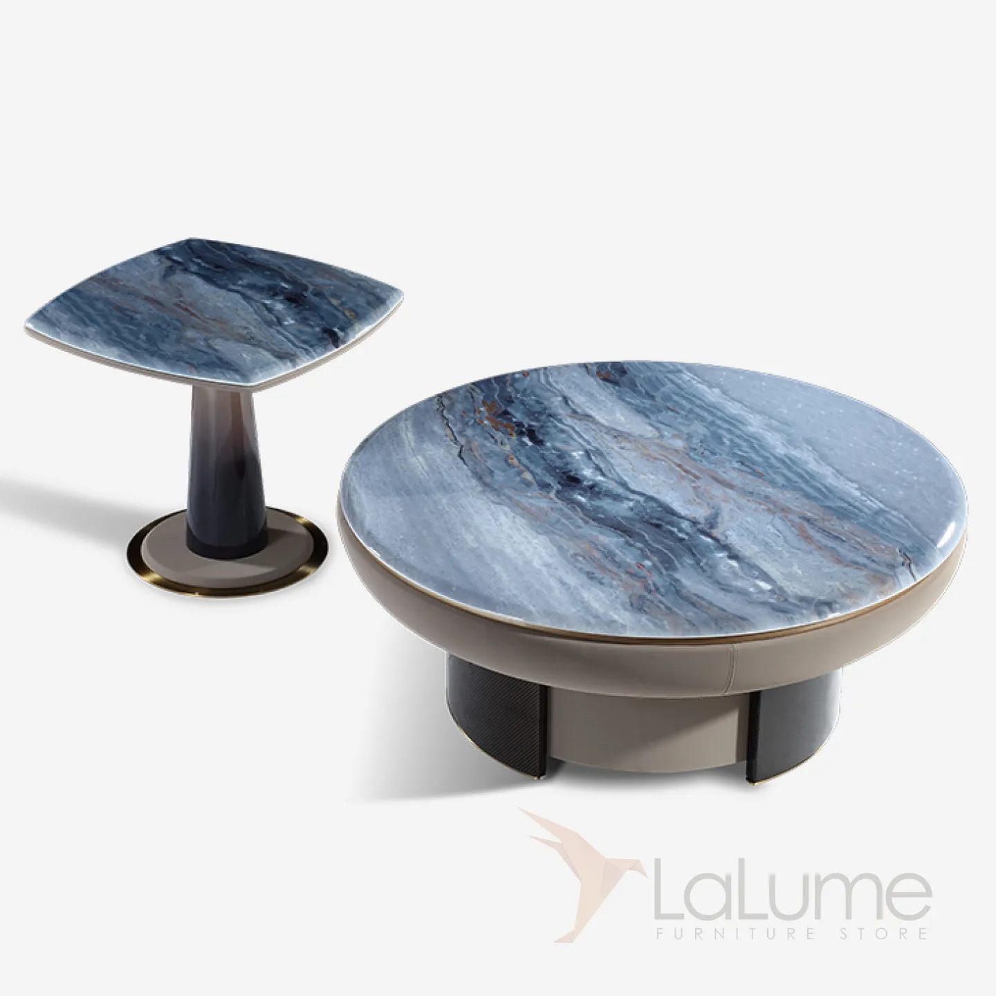 Низкий журнальный столик MIVICA из мрамора, кожи, дерева JS38327-32