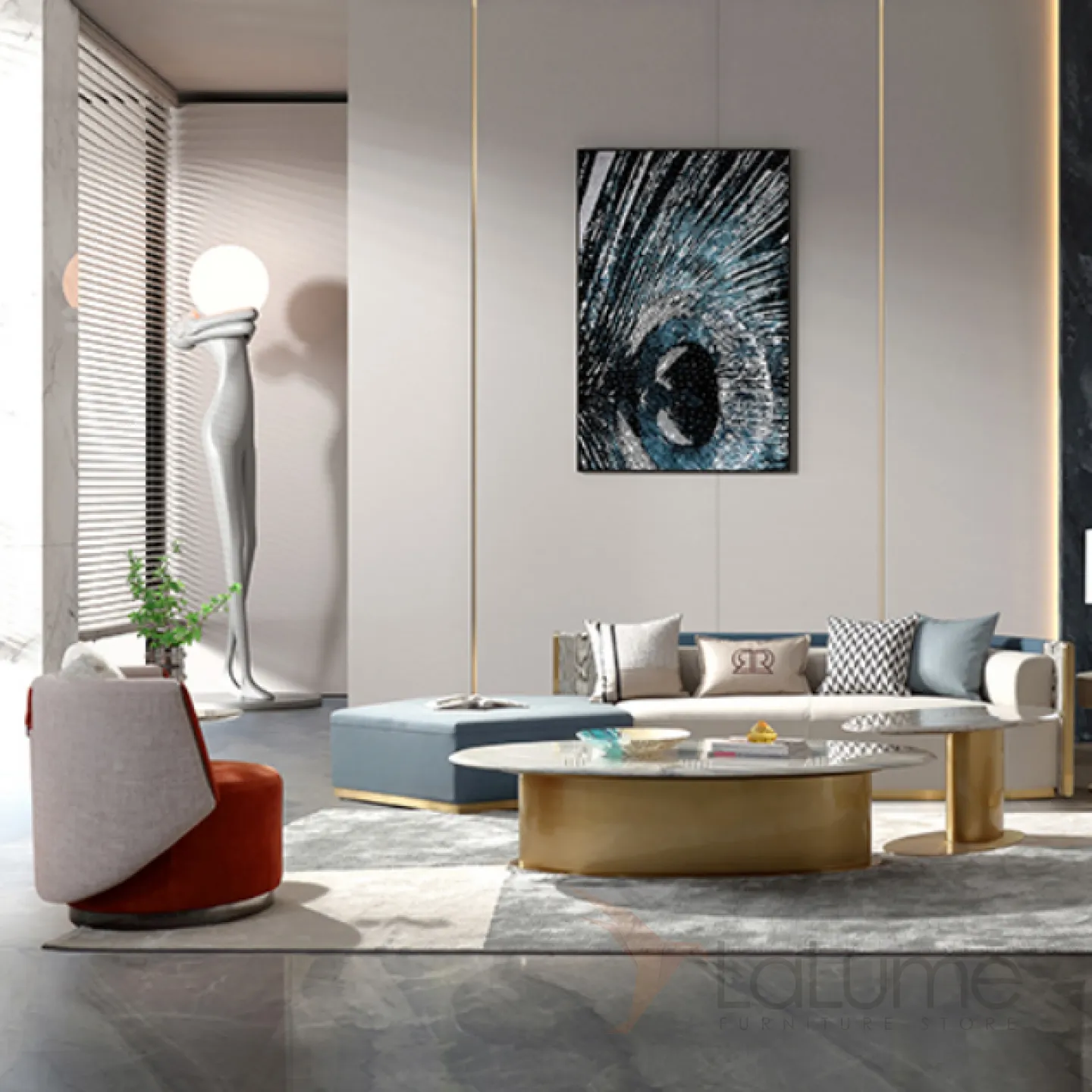 Удобный журнальный стол MIVICA из мрамора с золотым подстольем JS38346-32