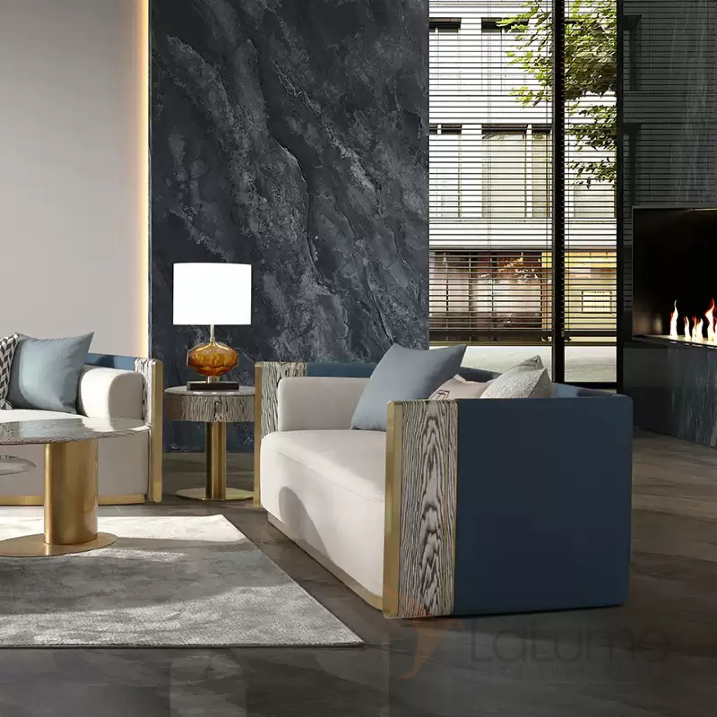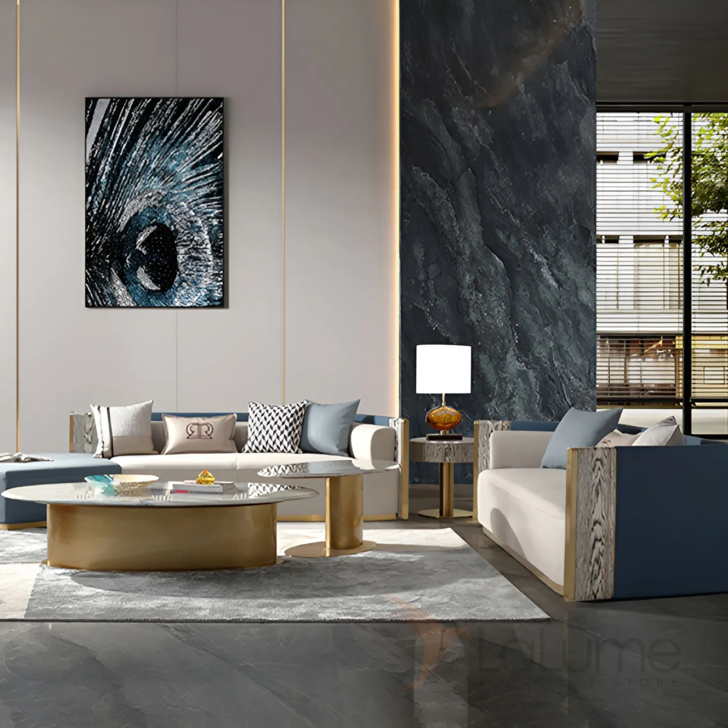 Маленький журнальный стол MIVICA с золотым подстольем JS38348-32