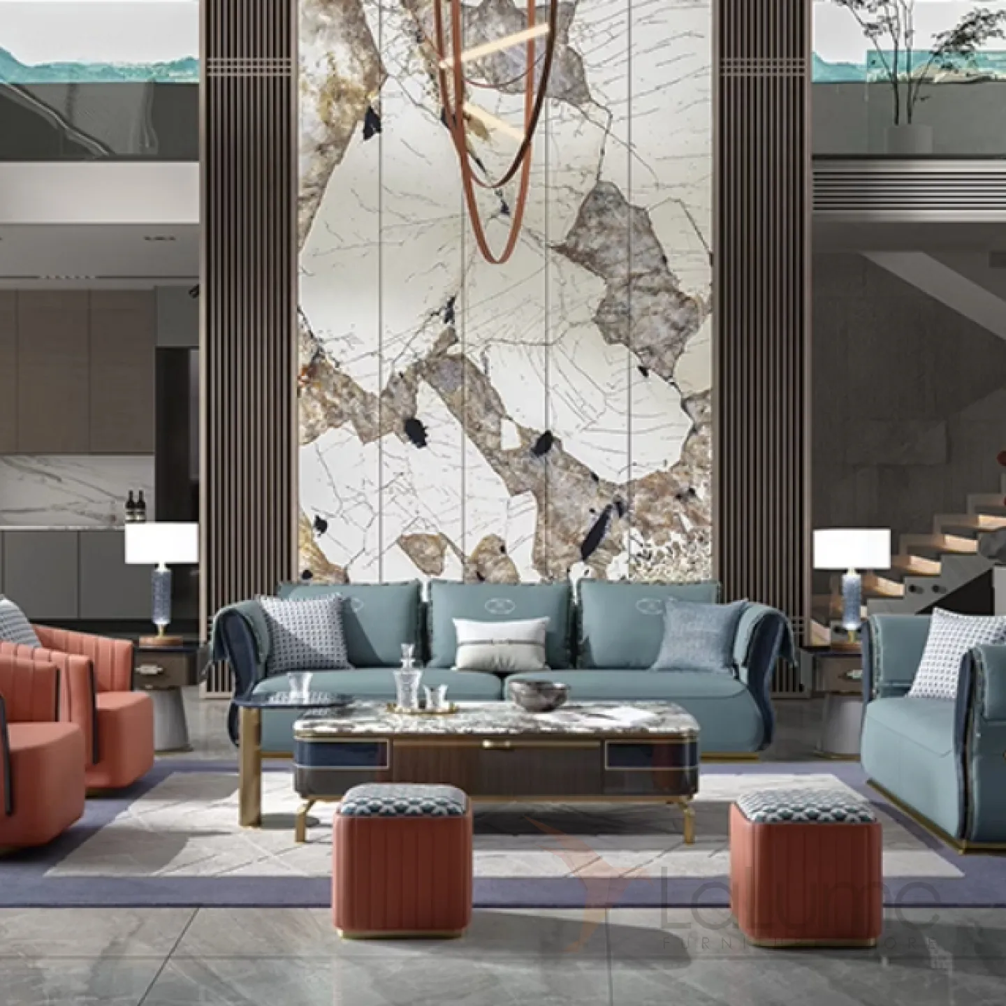 Удобный журнальный столик Leonie от MIVICA со столешницей из мрамора JS38444-32