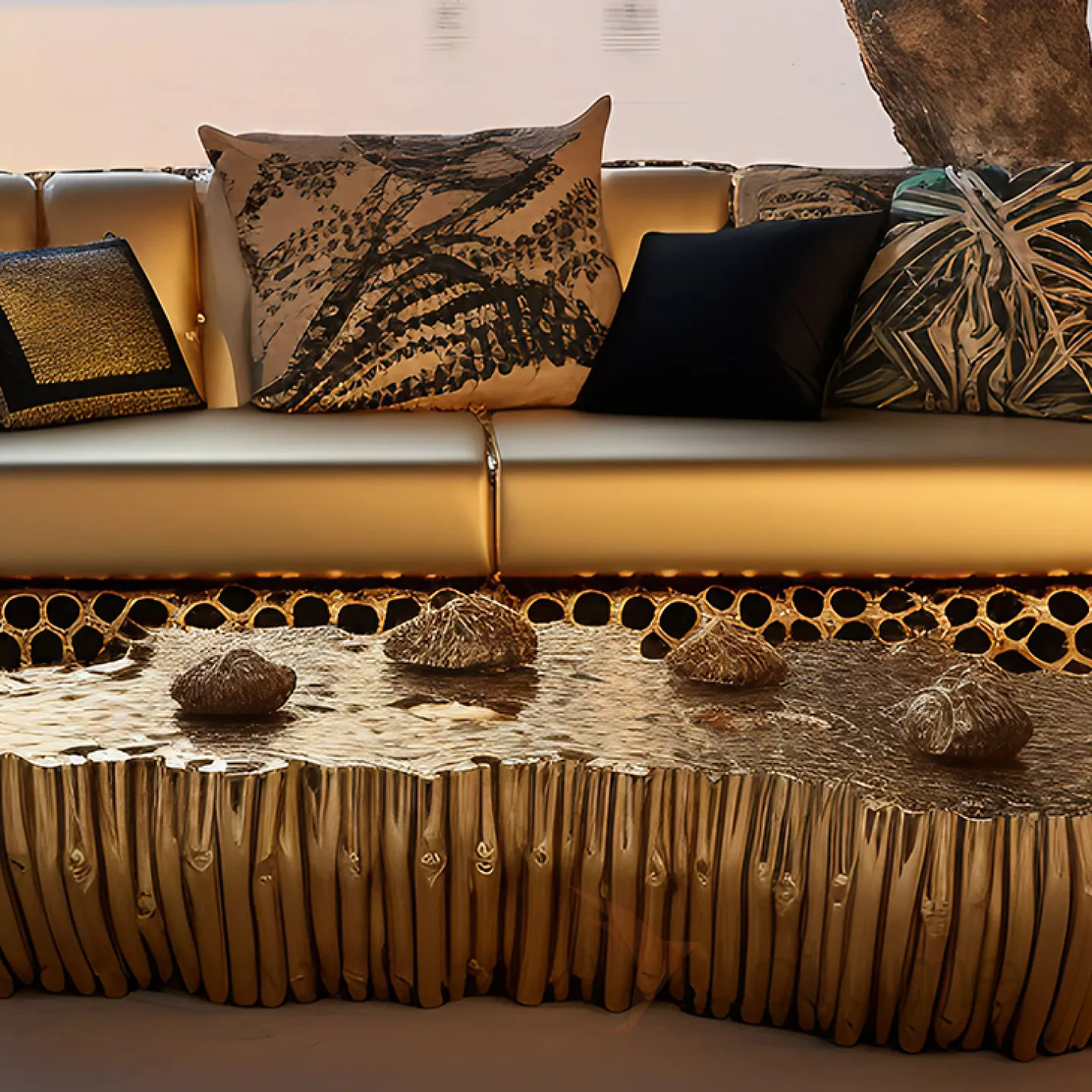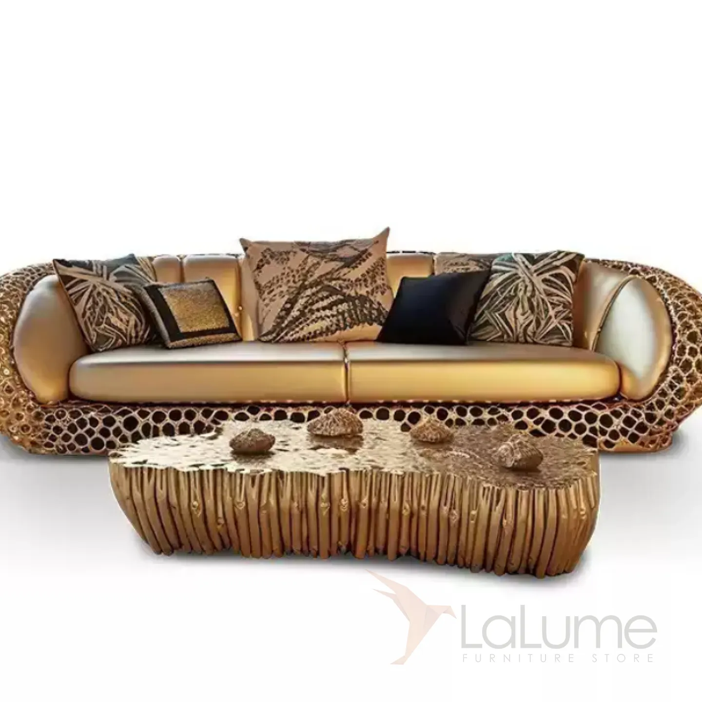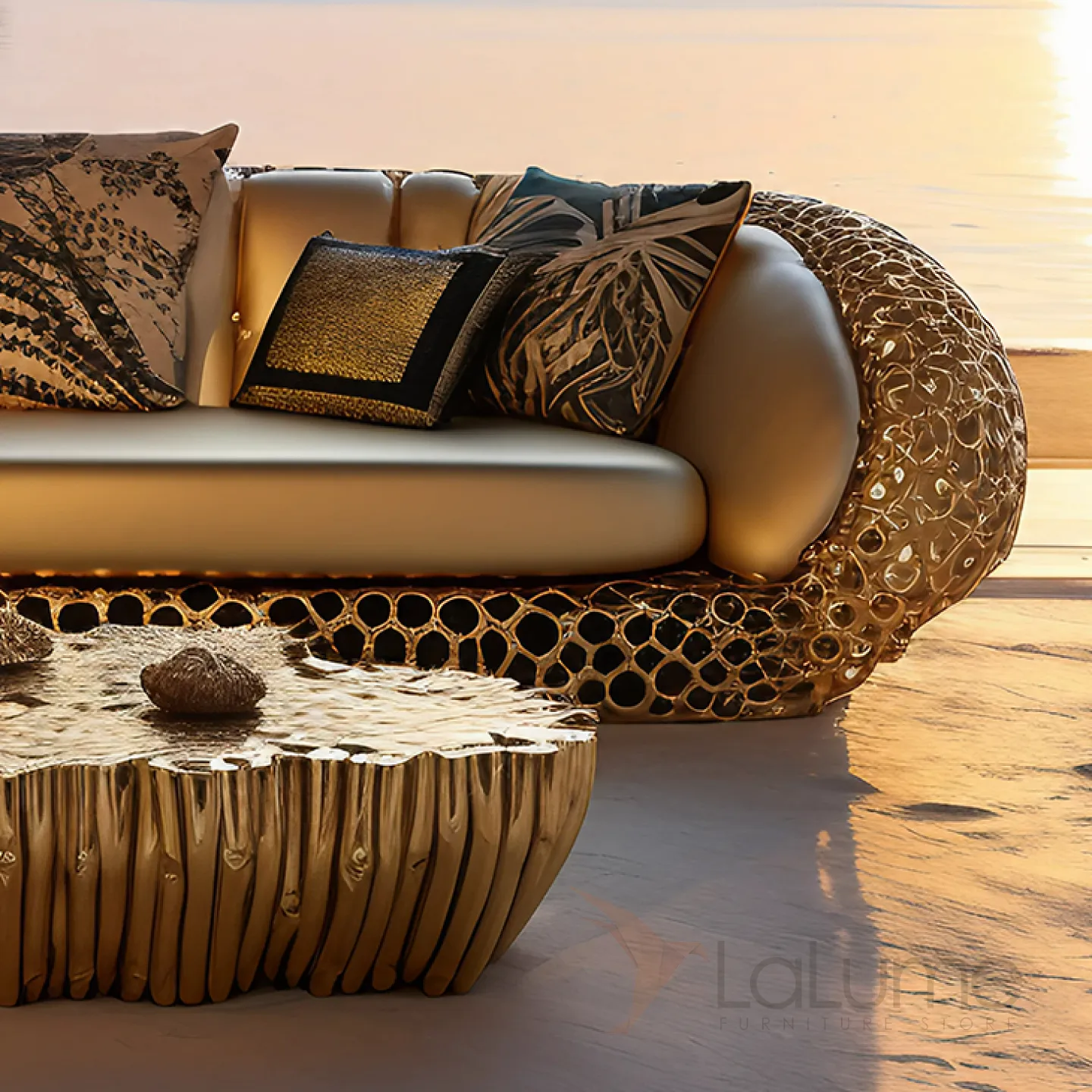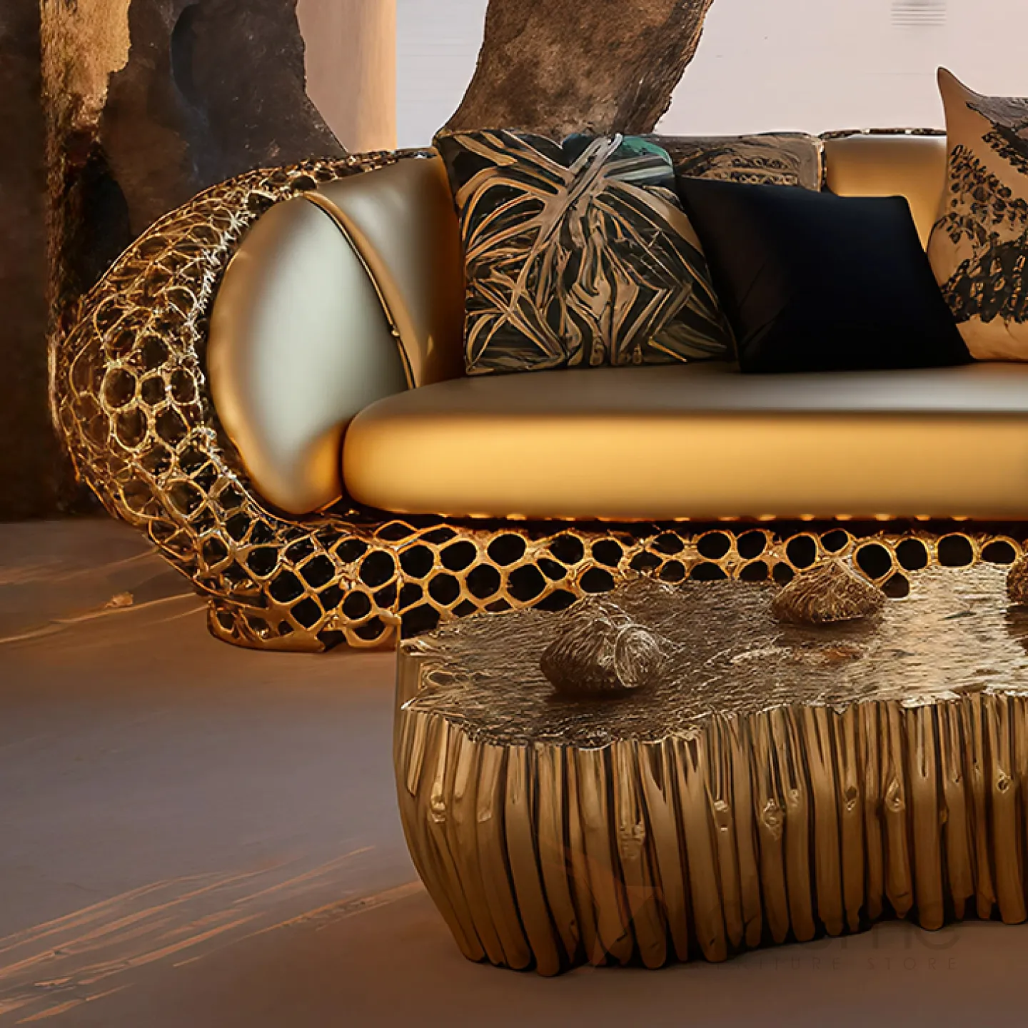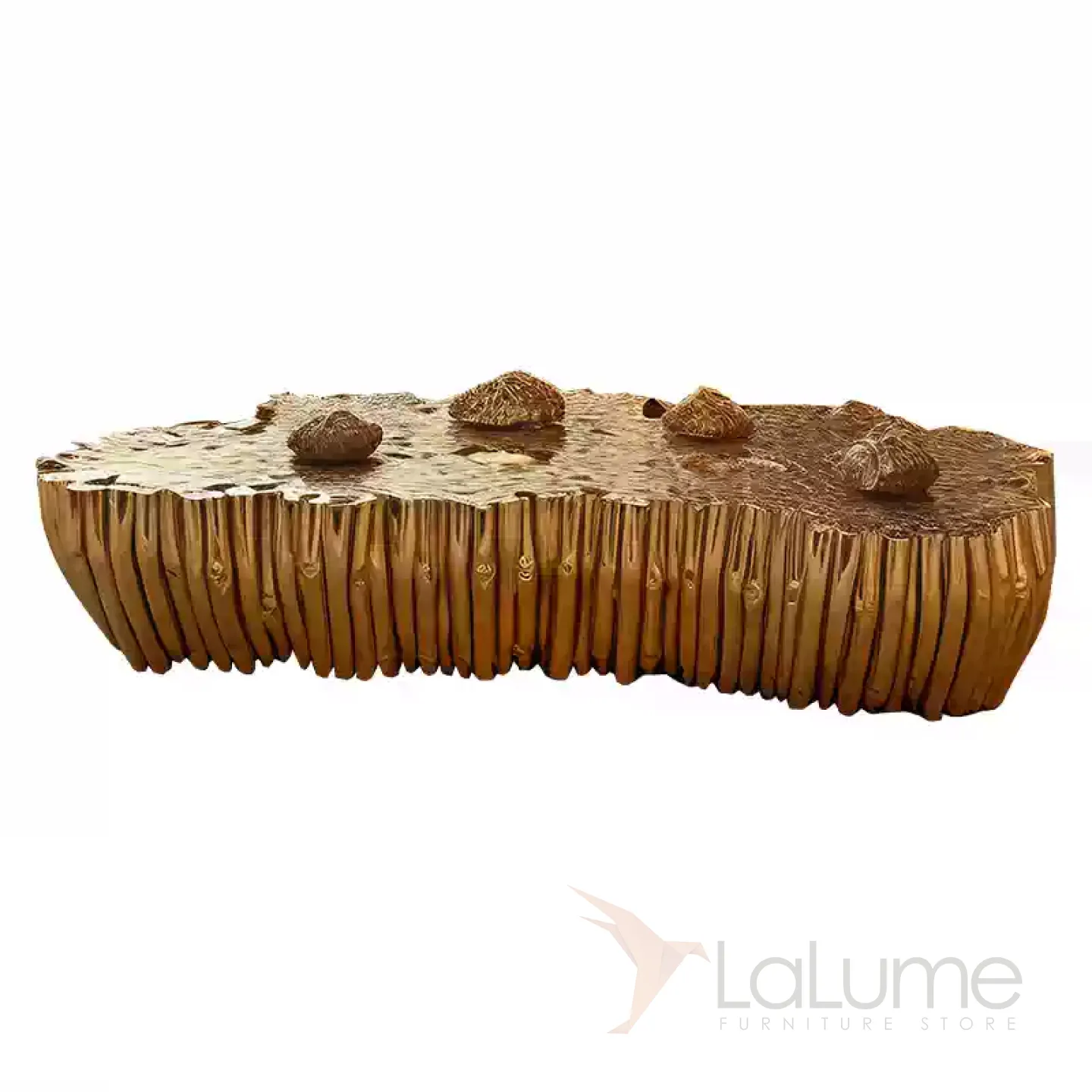Журнальный столик из инновационного пластика ASA с медным покрытием. Его оригинальная форма сразу привлекает внимание.