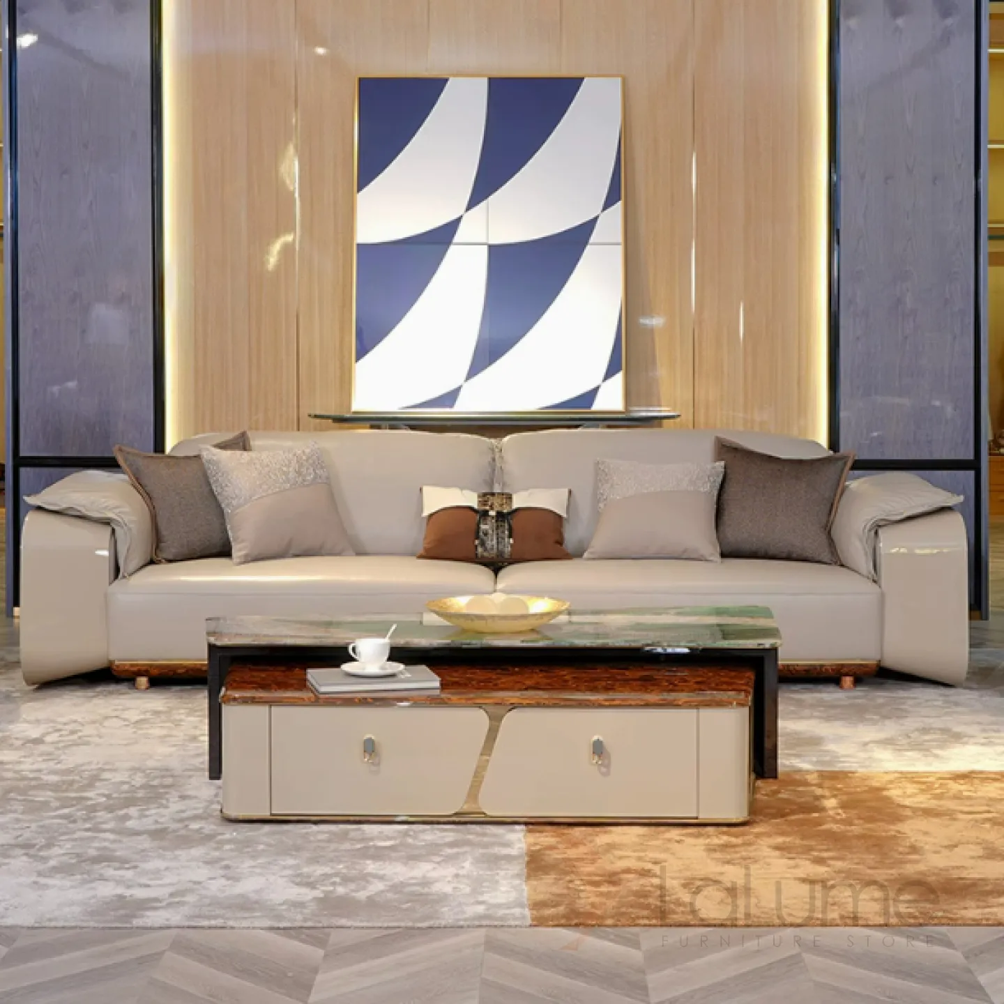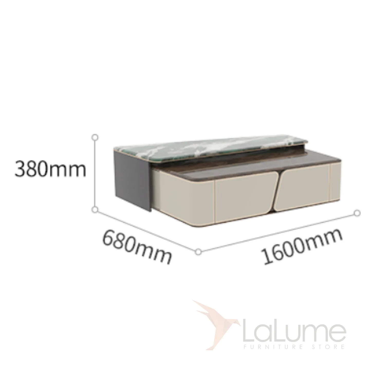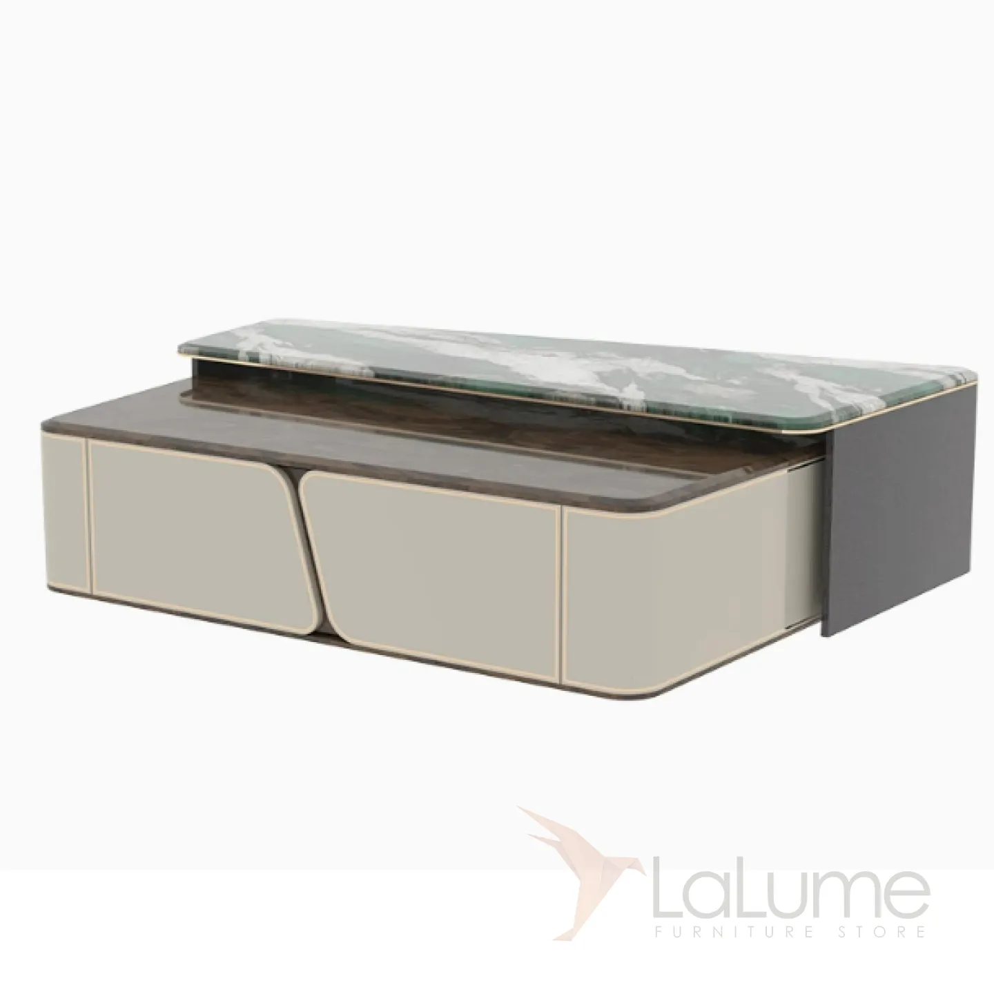 Современный журнальный столик сочетает элегантность мрамора и природное тепло дерева. Верхний ярус из мрамора, нижний — с двумя вместительными ящиками. Этот стильный и практичный предмет мебели гармонично впишется в интерьер гостиной, создавая атмосферу уюта и гармонии.
