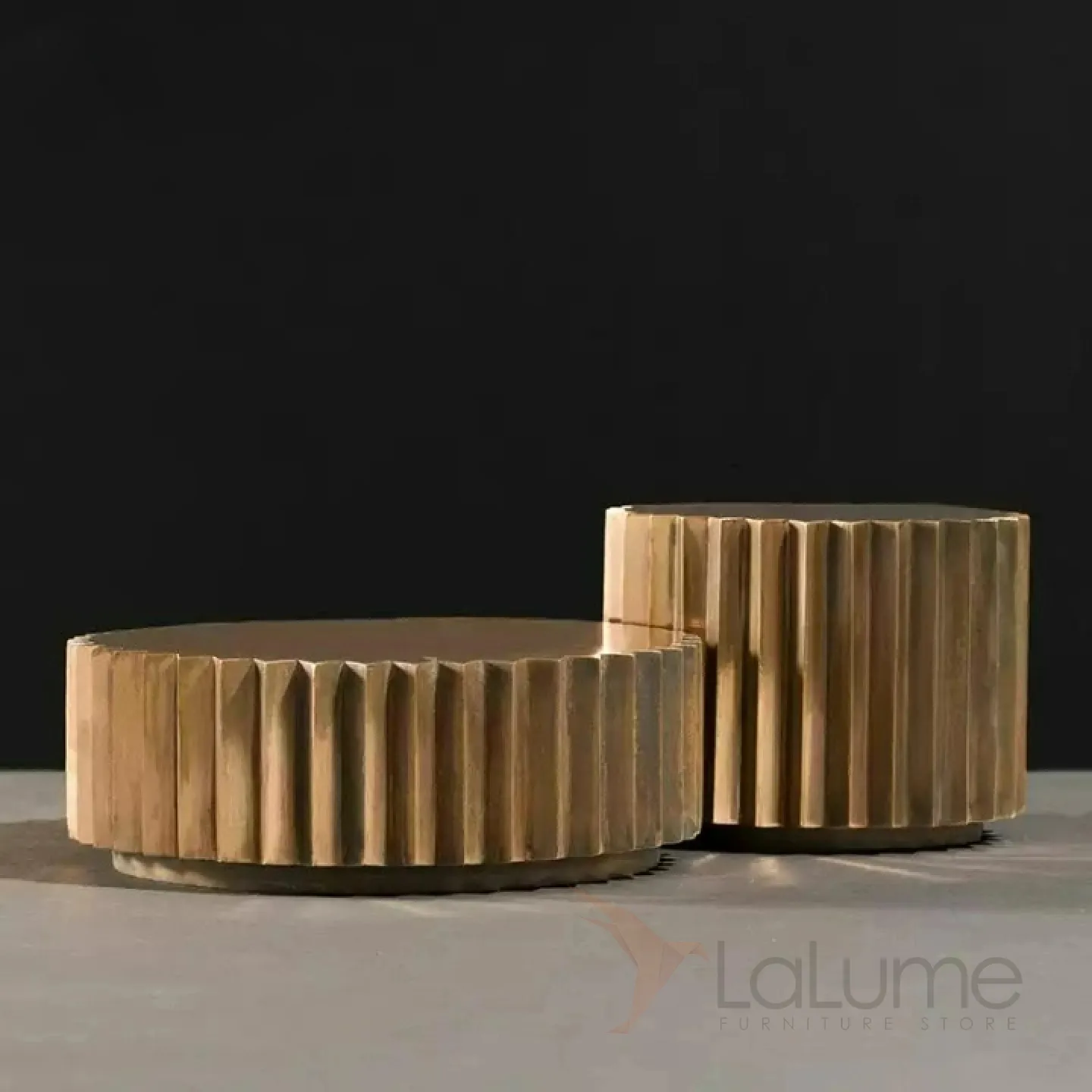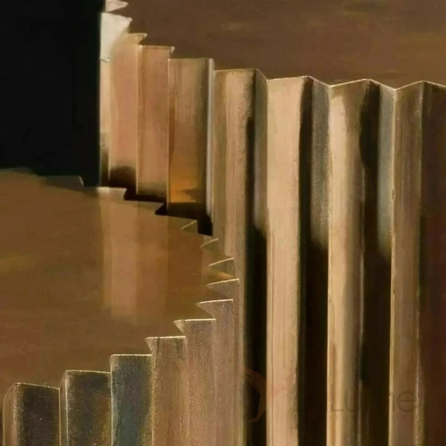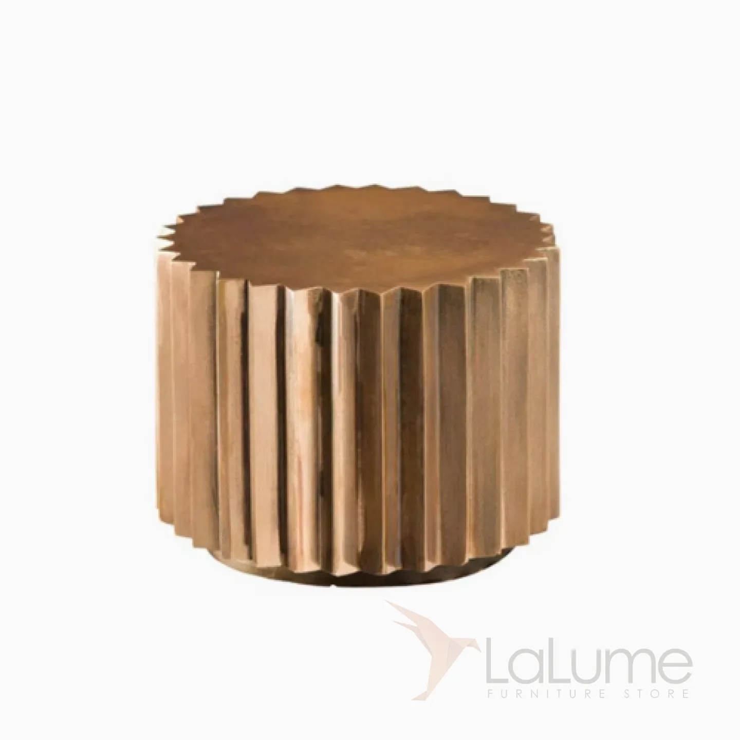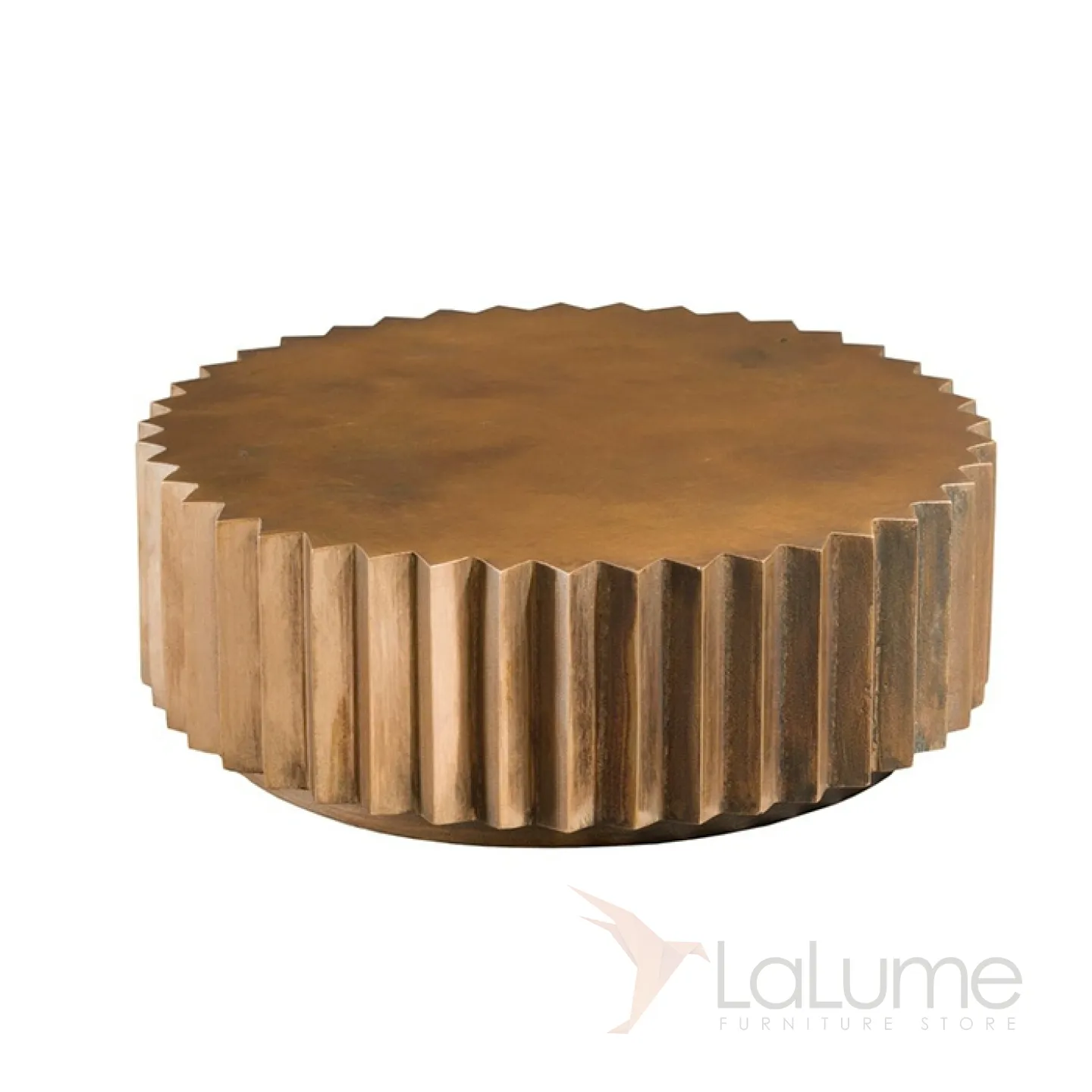 Журнальный столик в форме шестерёнки из нержавеющей стали с бронзовым оттенком. Доступен в большом и маленьком размерах.