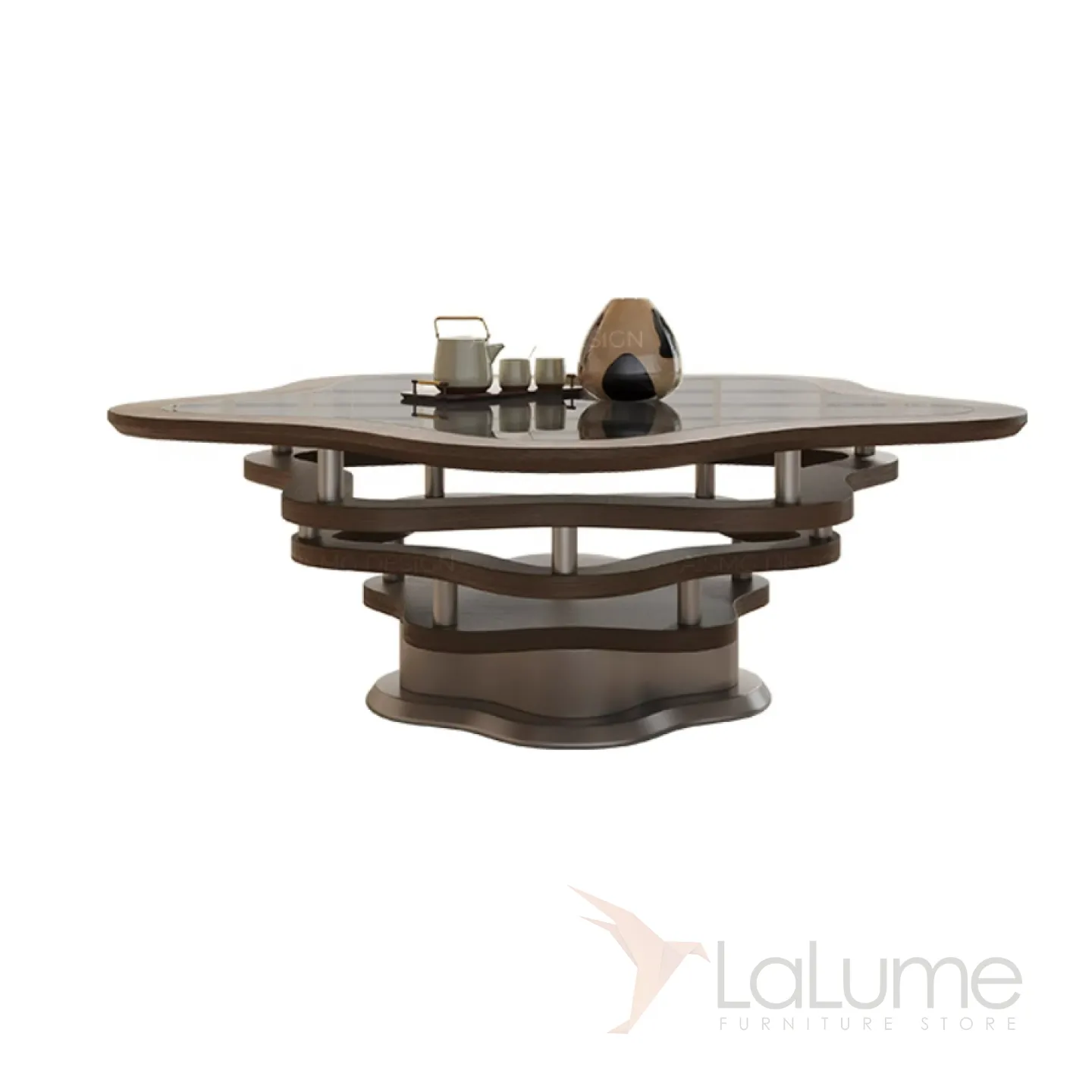 Стильный журнальный столик Yuhao из дерева и закалённого стекла JS39128-32