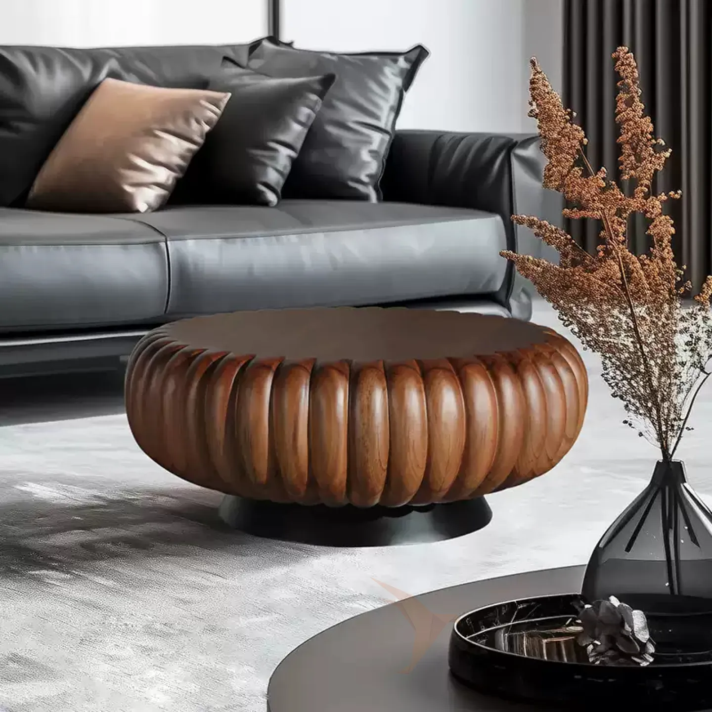 Изысканный журнальный столик из массива ореха воплощает минималистичный стиль. Его поверхность, созданная с помощью современных технологий обработки древесины, объединяет природную текстуру ореха и элегантную простоту. Эта модель идеально вписывается в минималистичный интерьер, где каждая деталь продумана для создания уюта и утонченности.