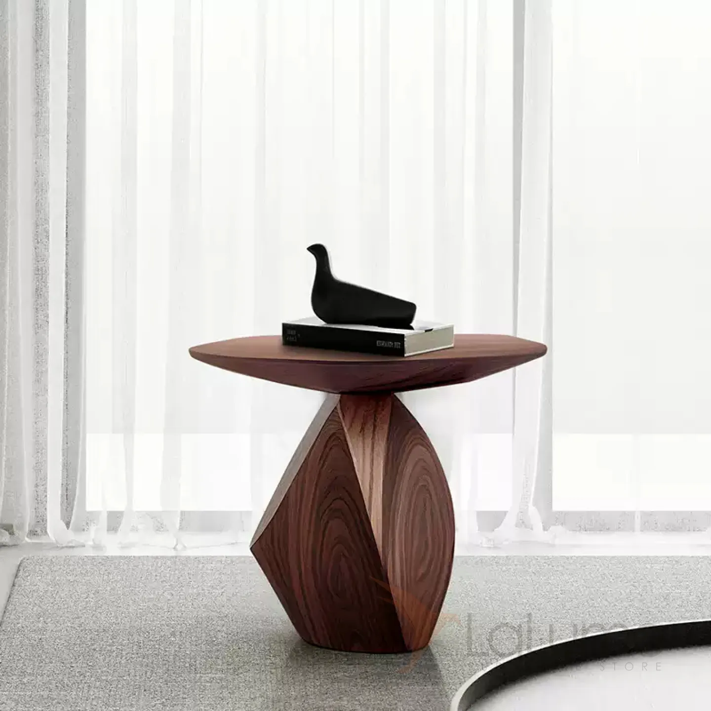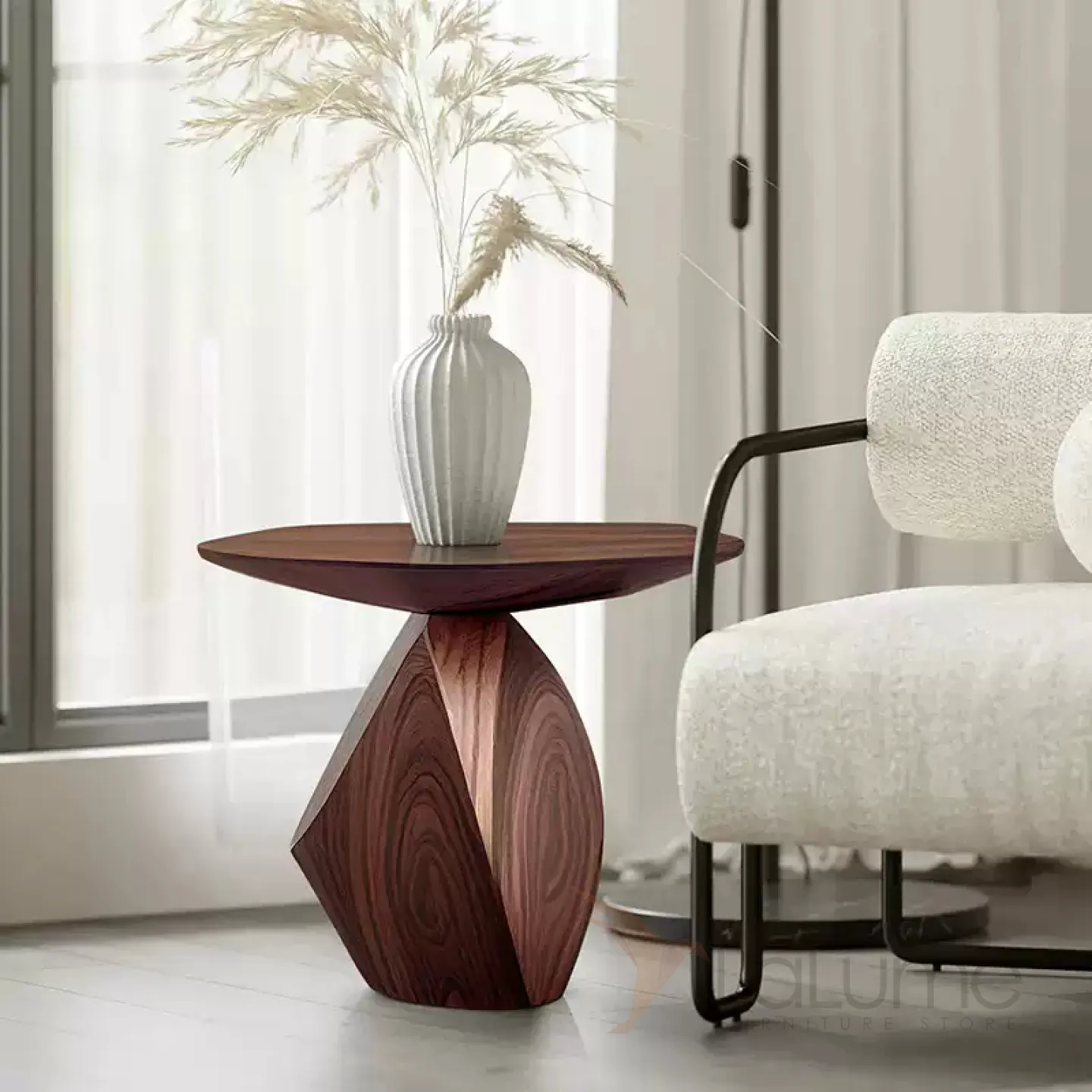 Журнальный столик, выполненный из высококачественной древесины, представляет собой образец минималистичного дизайна. Его поверхность, обработанная с использованием передовых технологий, сочетает в себе природную фактуру ореха и изысканную лаконичность.