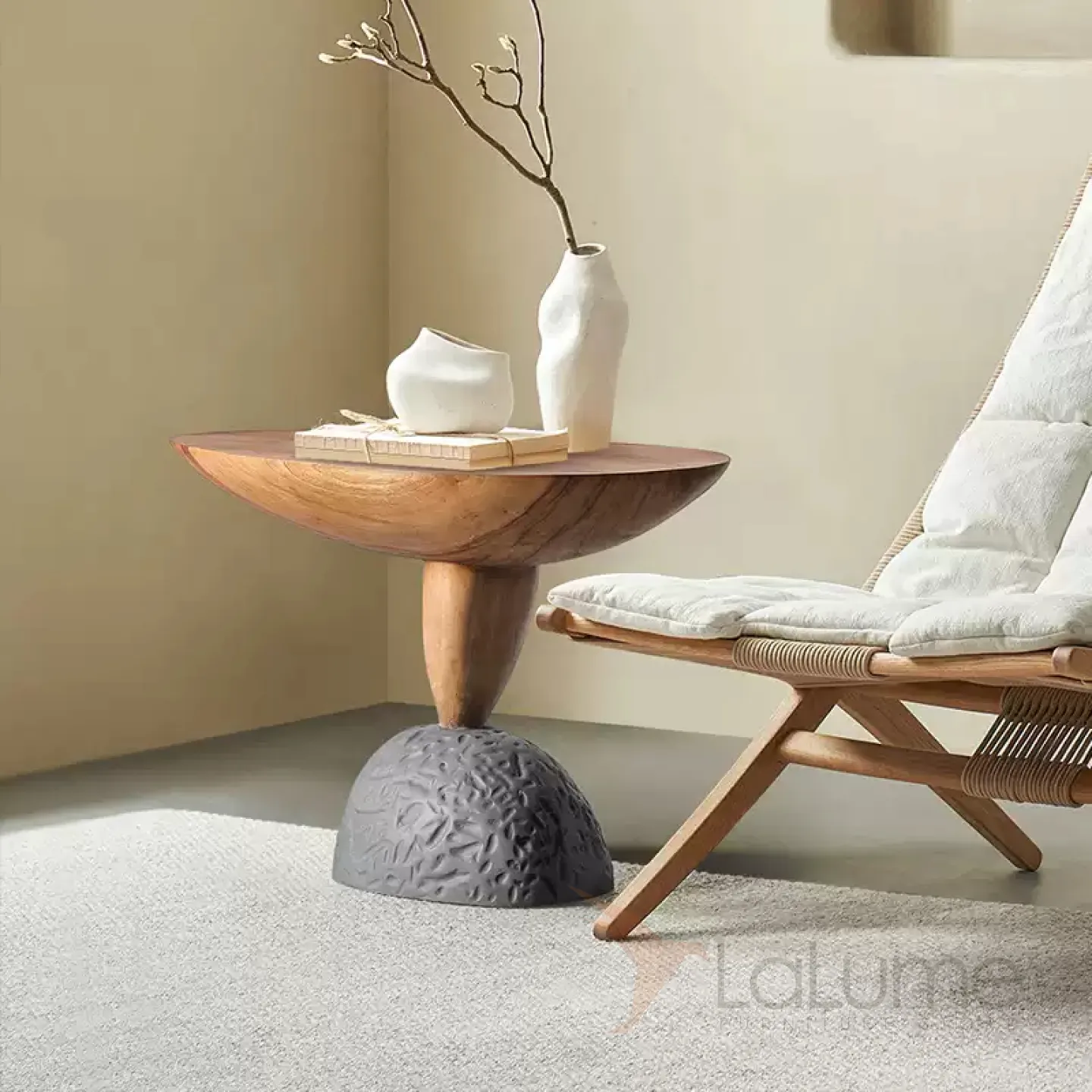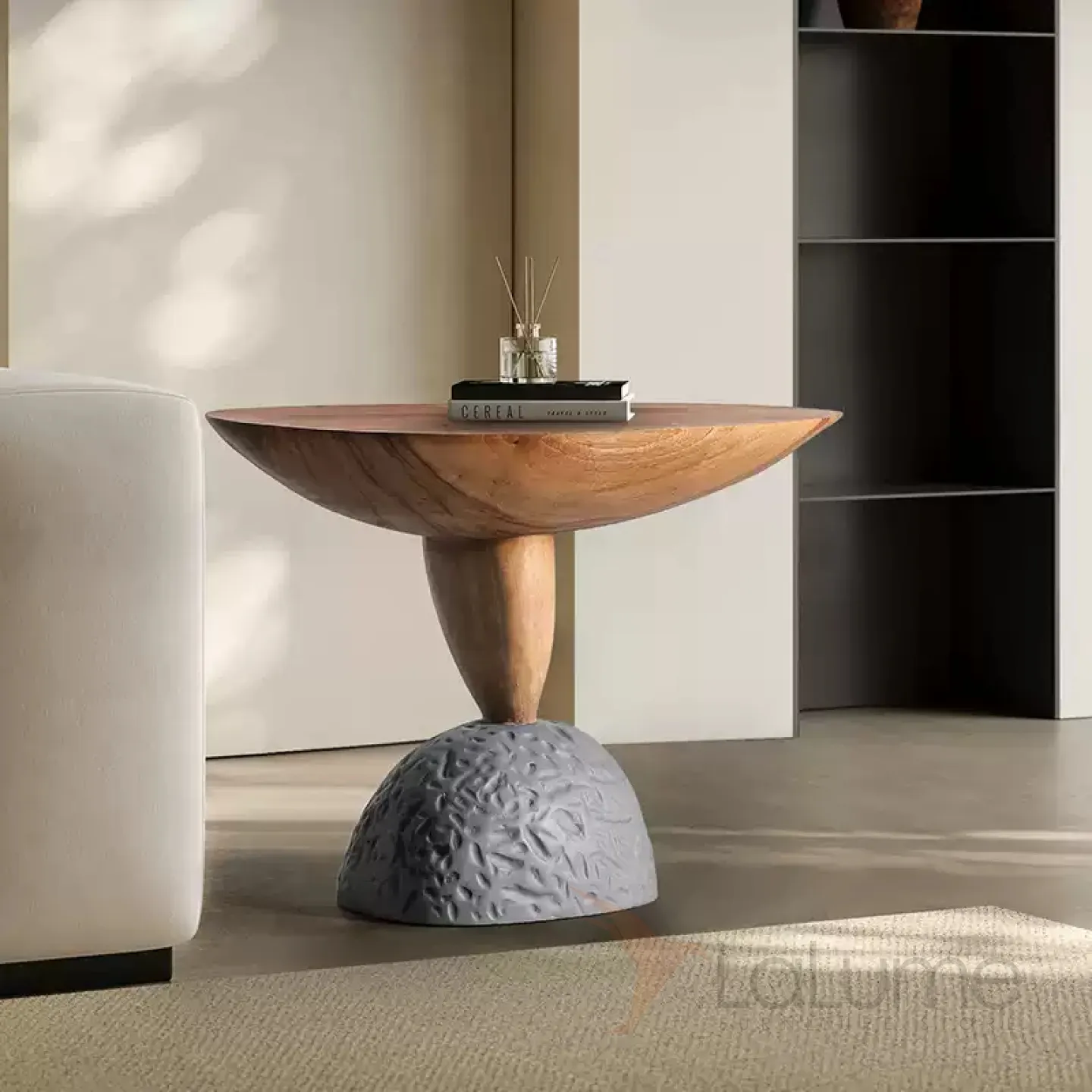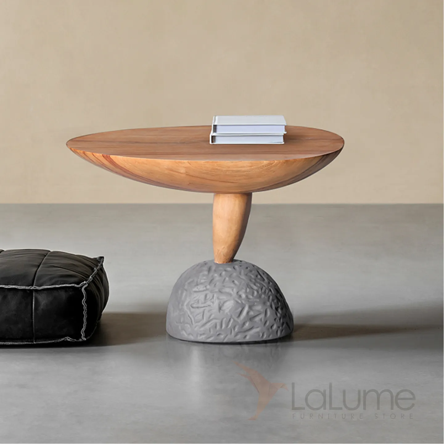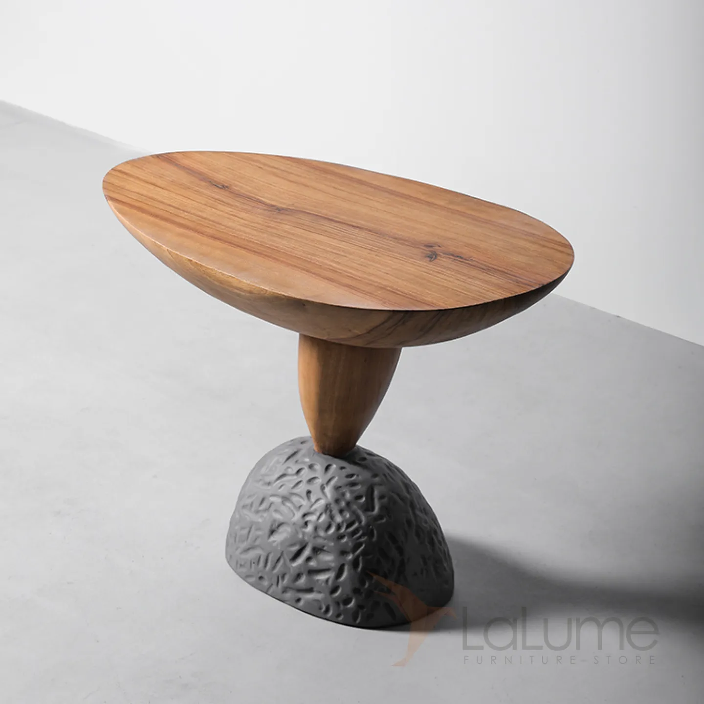 Журнальный столик оригинальной формы с ножками под камень оживит ваш интерьер. Изготовленный из премиального дерева, он привнесет в дом уют и утонченность.