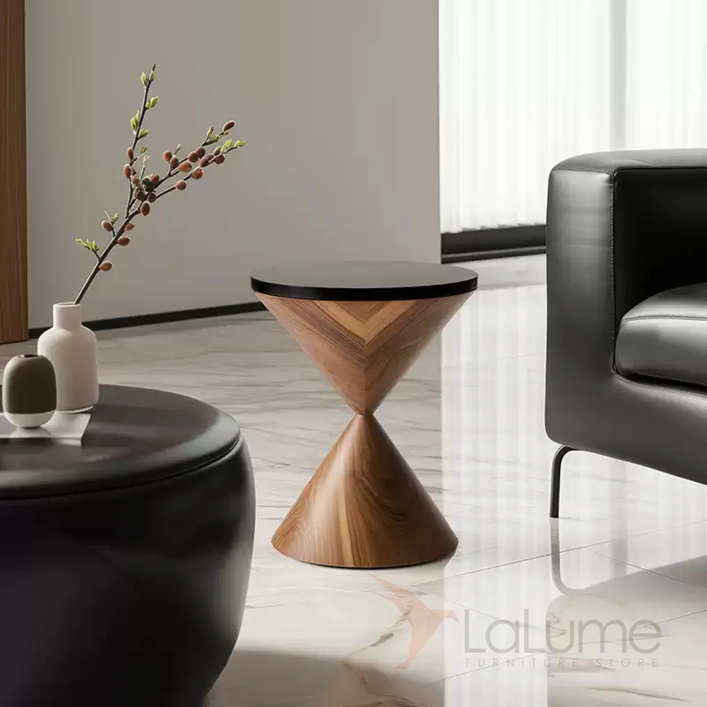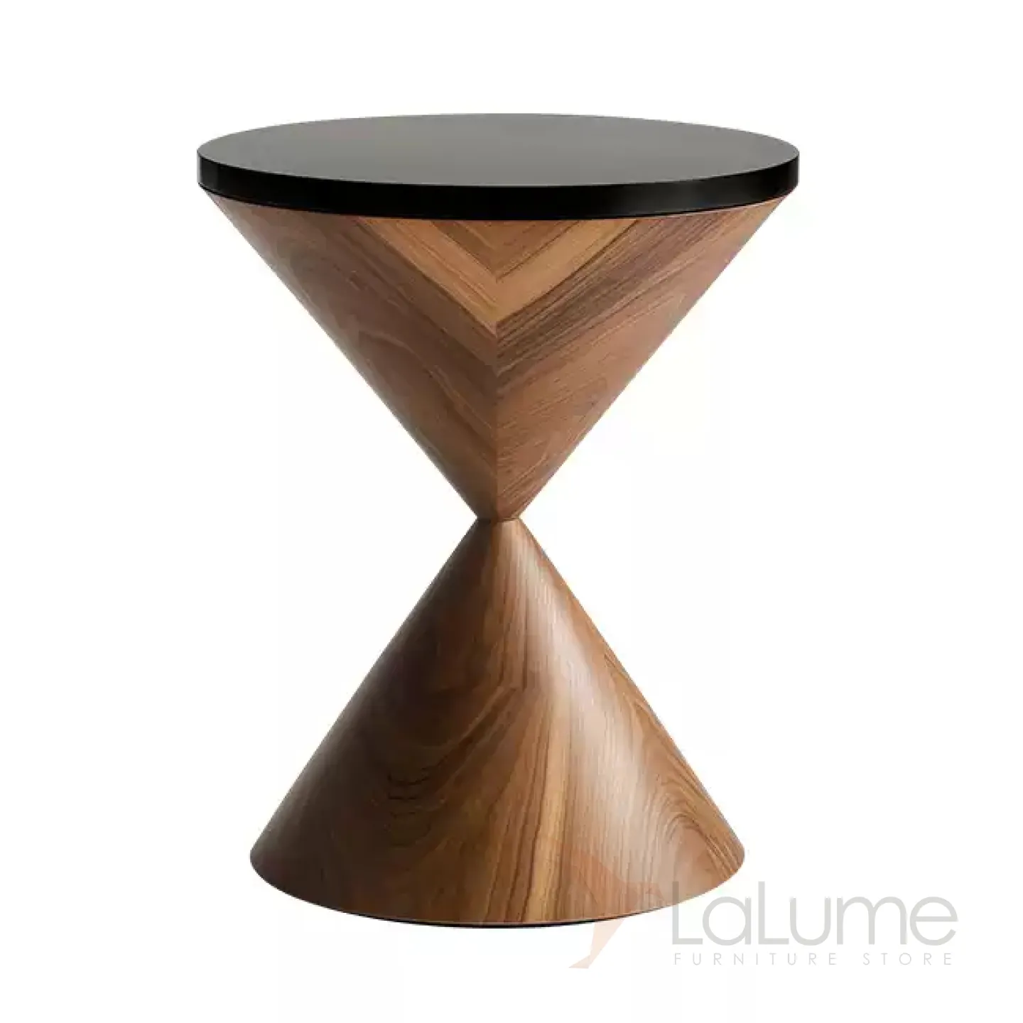 Журнальный столик, выполненный из натурального дерева в форме песочный часов. Он был изготовлен вручную, что делает его уникальным и ценным.