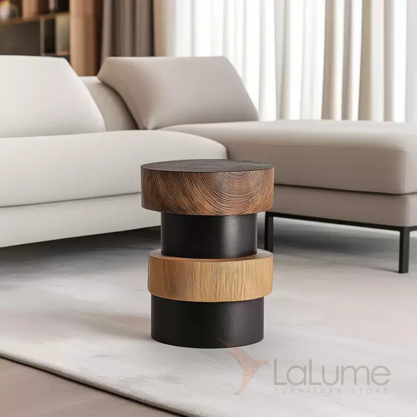 Журнальный столик из натурального дерева состоит из нескольких срезов ствола. Он выглядит оригинально и имеет уникальную ценность. Столик изготовлен вручную, что подчеркивает его эксклюзивность.