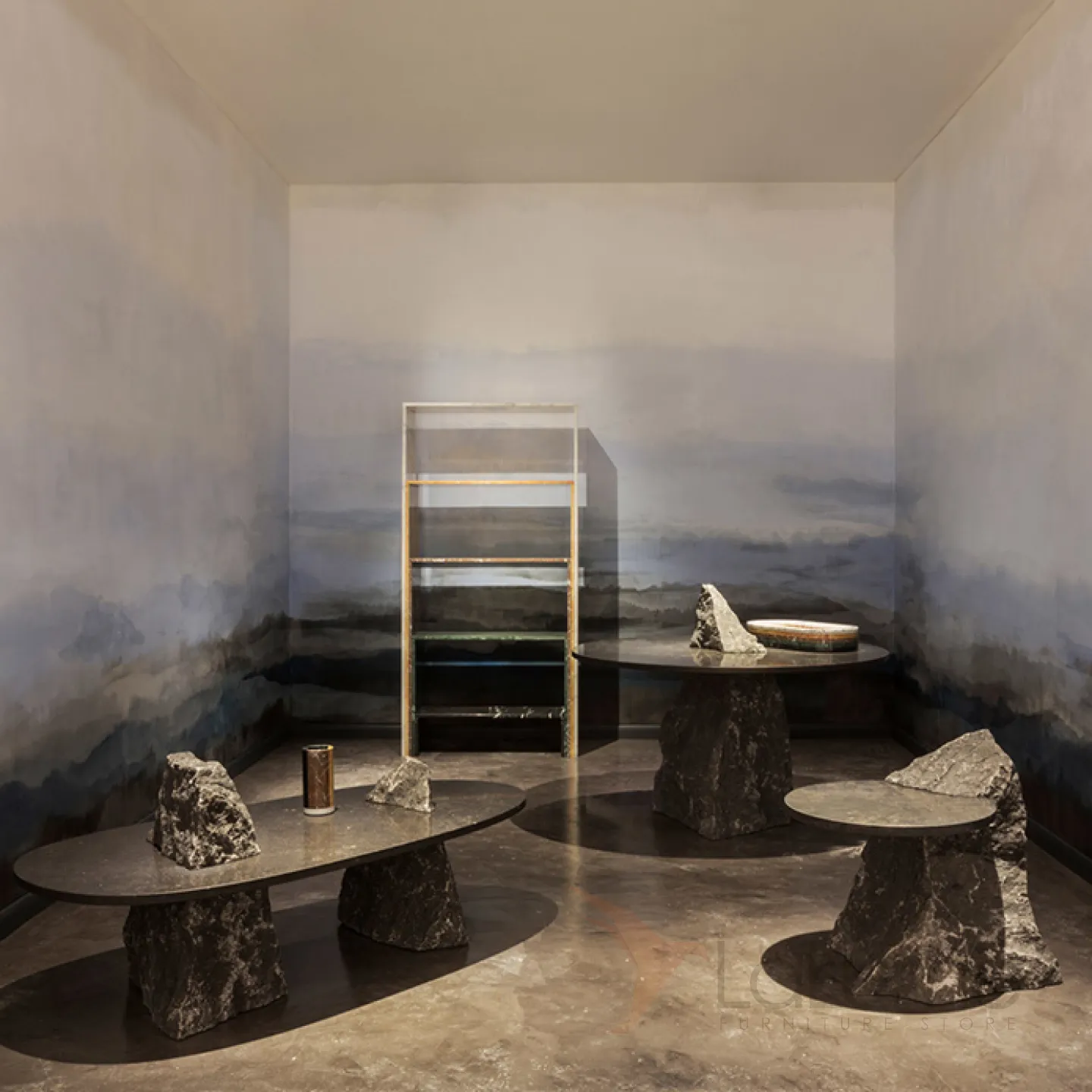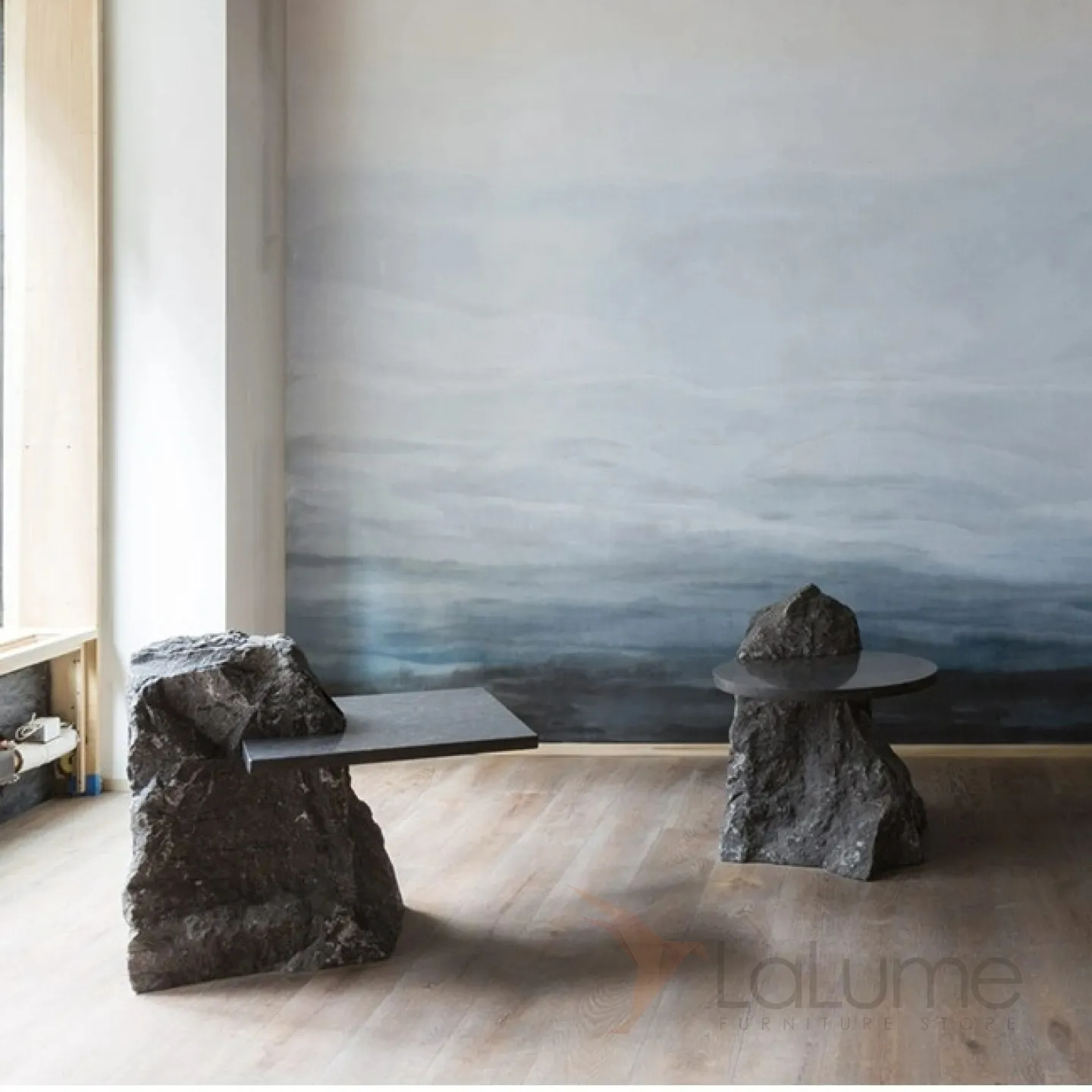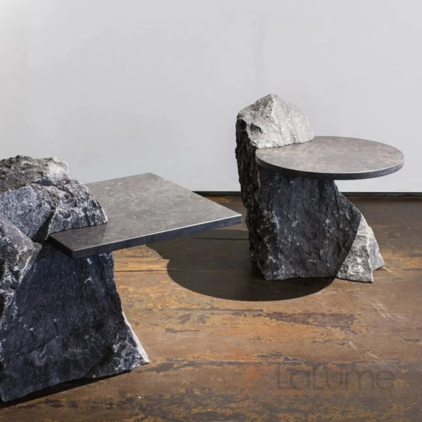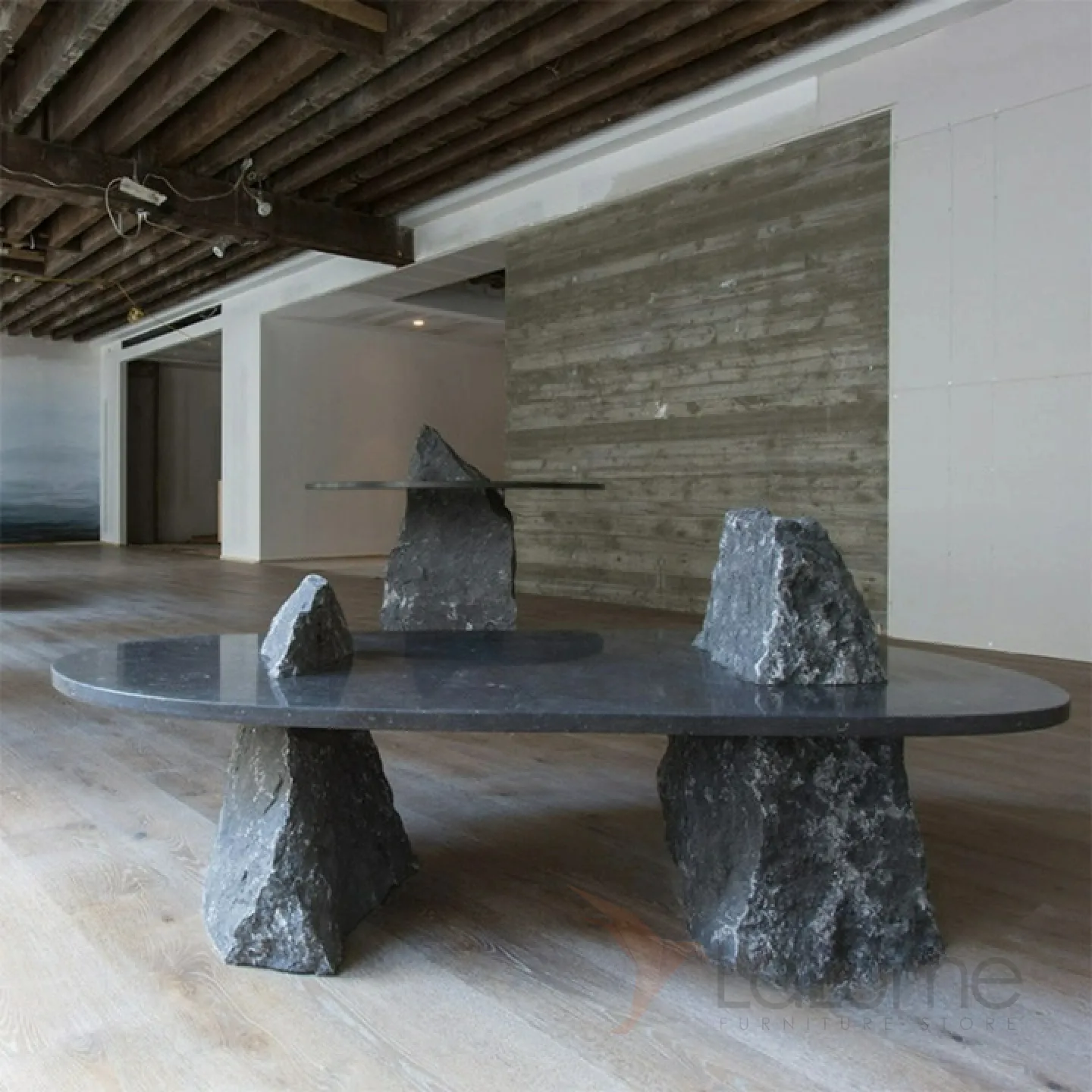 Журнальный столик с уникальным подстольем в форме горной породы или глыбы из стеклопластика с особым покрытием. Столешница может быть выполнена из мрамора или пластика, в зависимости от выбранной модели.