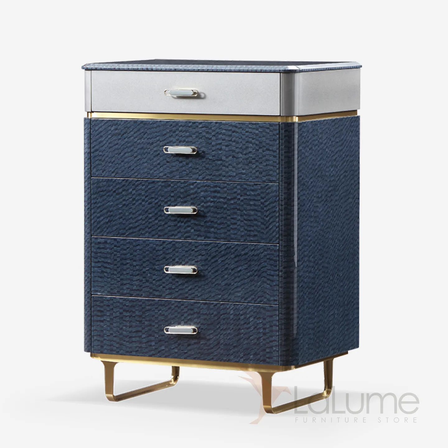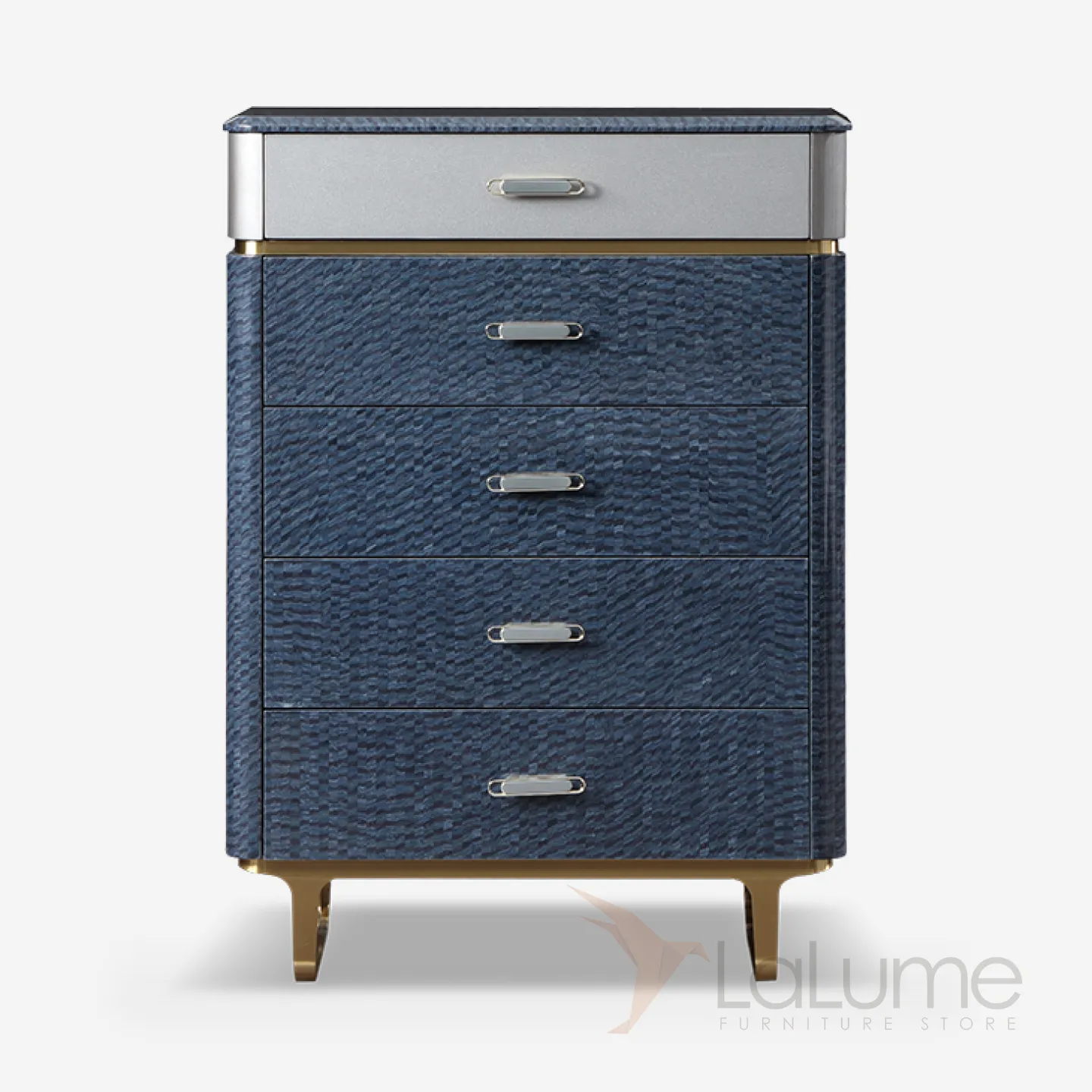 Деревянный комод с отделкой из красного бука и качественным шпоном, установленный на латунных ножках. Имеет пять выдвижных ящиков. Этот комод станет стильным украшением вашей кухни или столовой и поможет поддерживать порядок в хранении вещей.