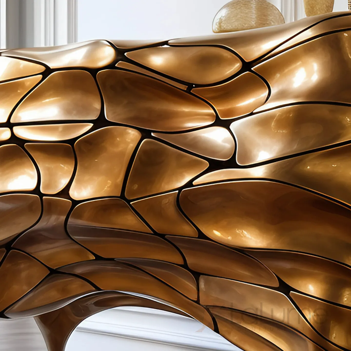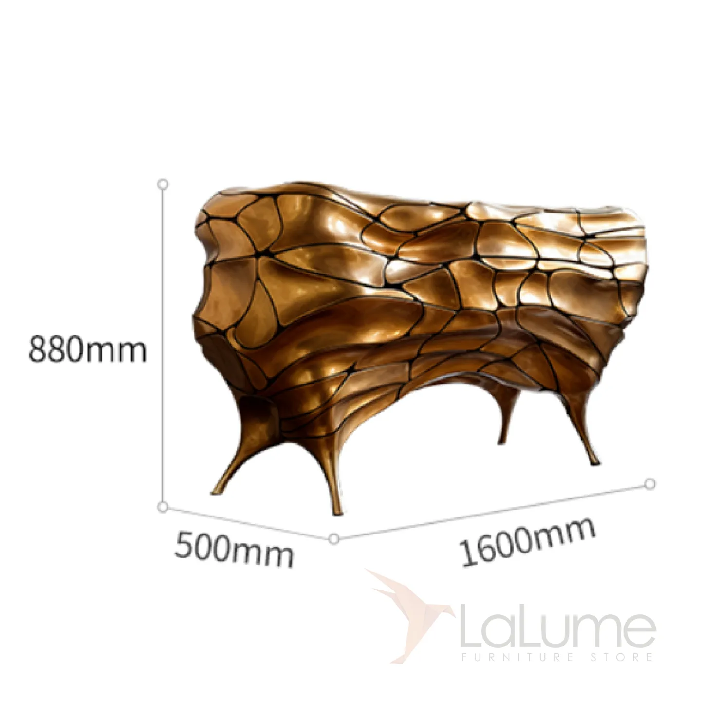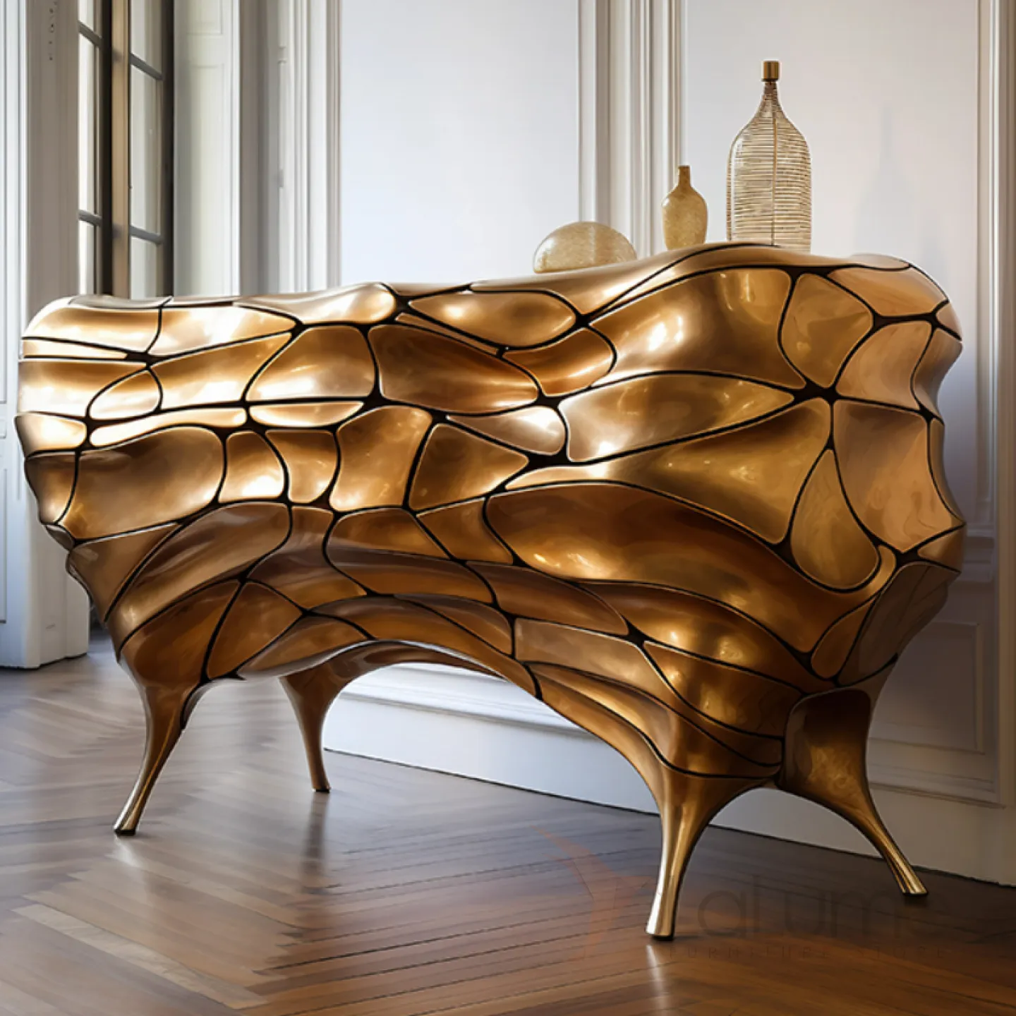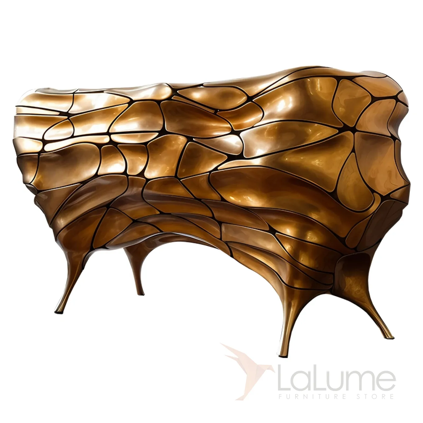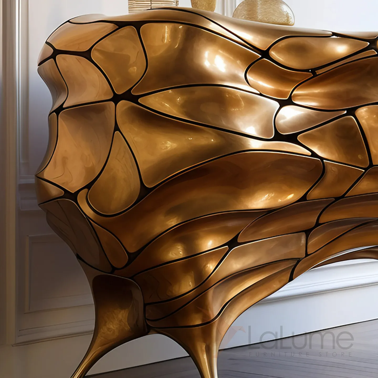 Комод необычной формы станет центром внимания в интерьере. Его блестящая поверхность будет создавать разнообразные фактуры в зависимости от освещения.