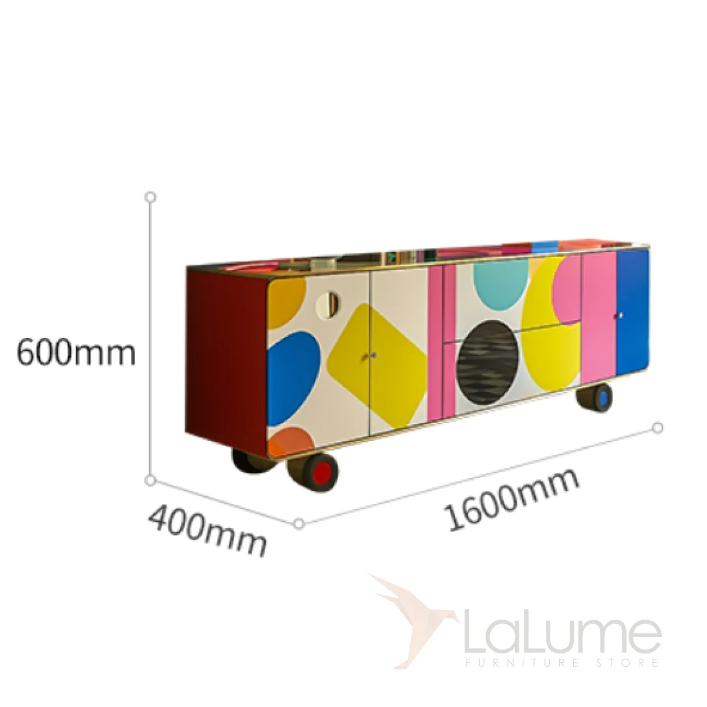 Комод необычной расцветки станет украшением для тех, кто ценит современное искусство и выразительные интерьеры. Круглые ножки и ручная роспись привлекают внимание, добавляя динамики. Четыре дверцы и два вместительных ящика делают его функциональным.