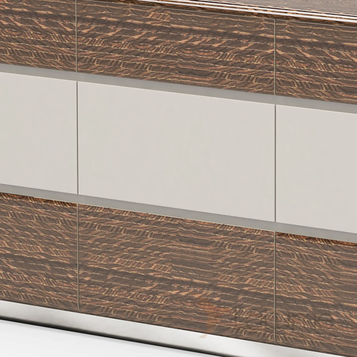 Комод из массива бука и шпона с ножками из нержавеющей стали. Удобные выдвижные ящики помогут грамотно организовать пространство для хранения.