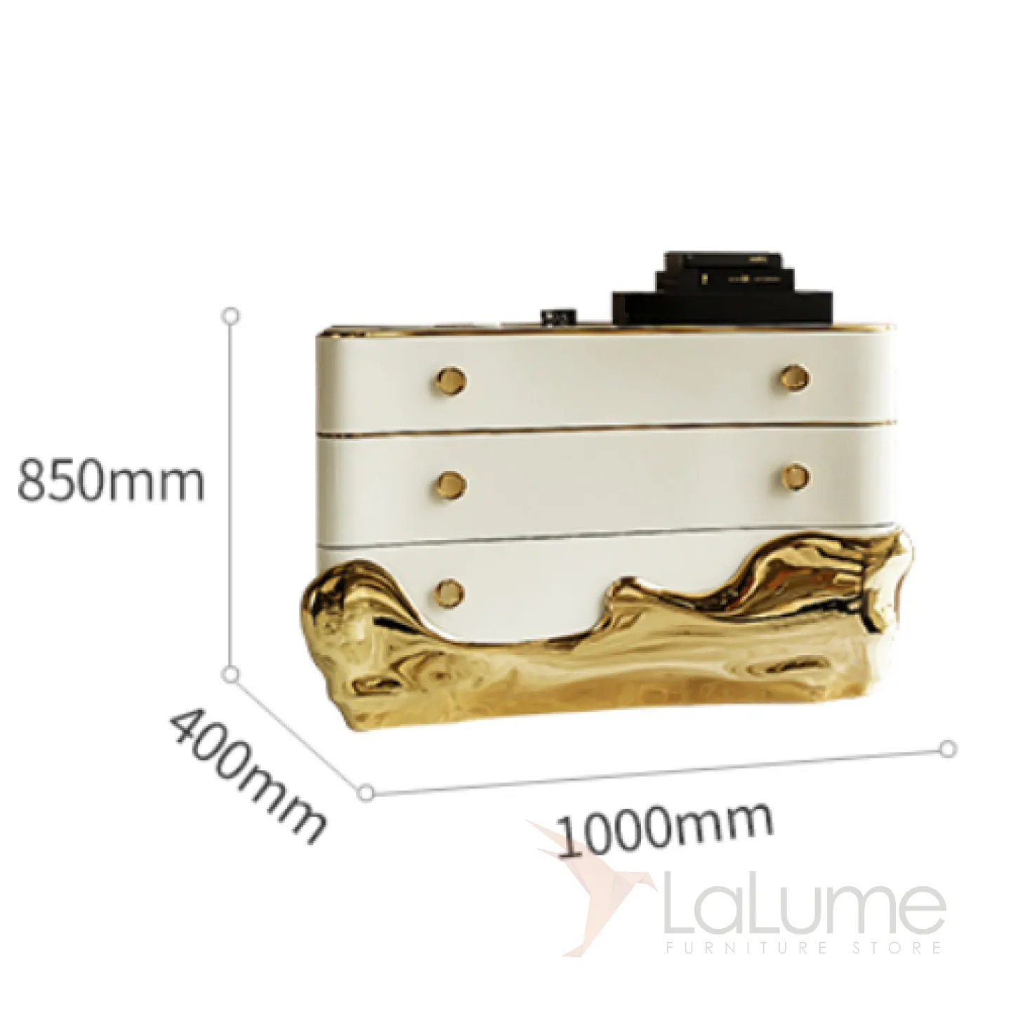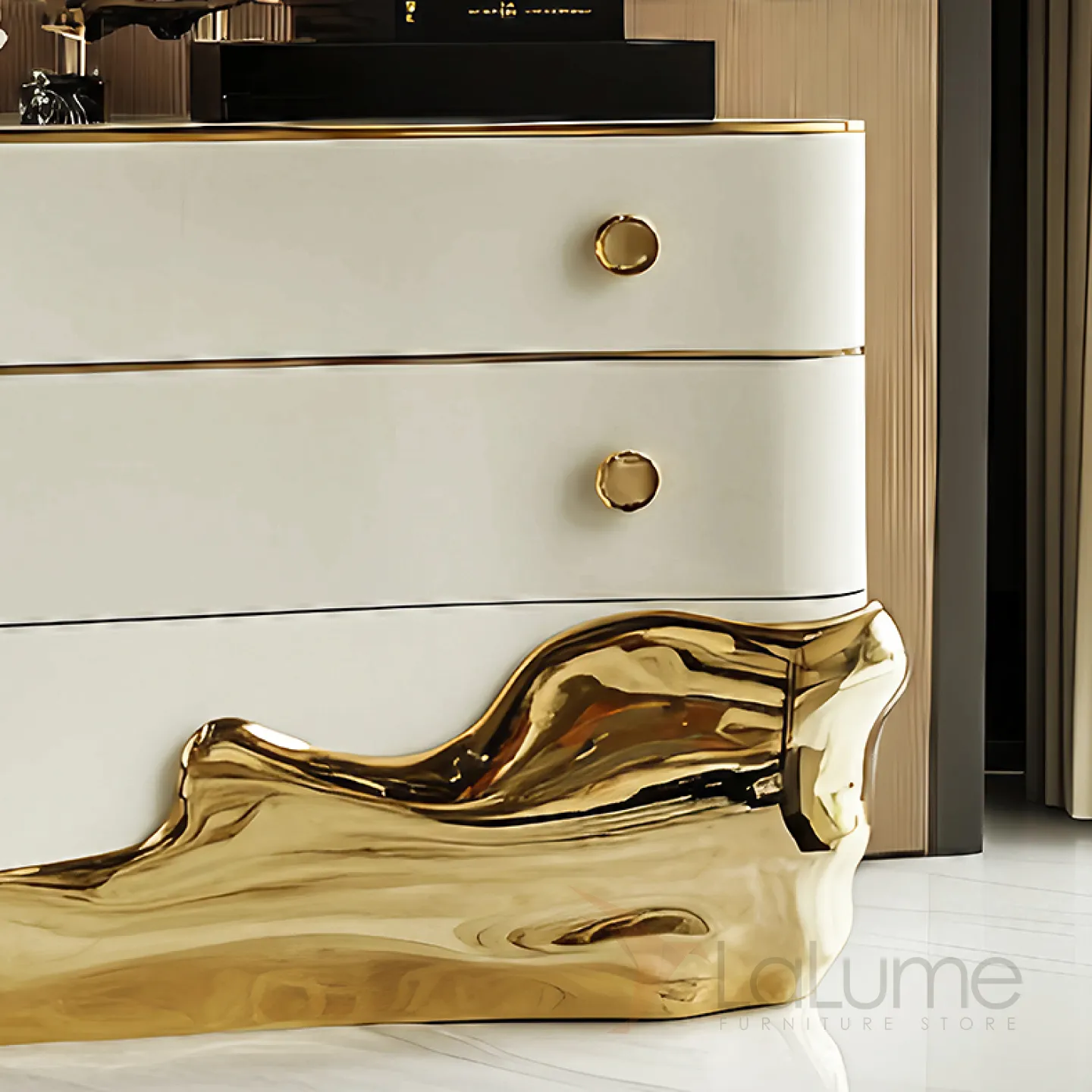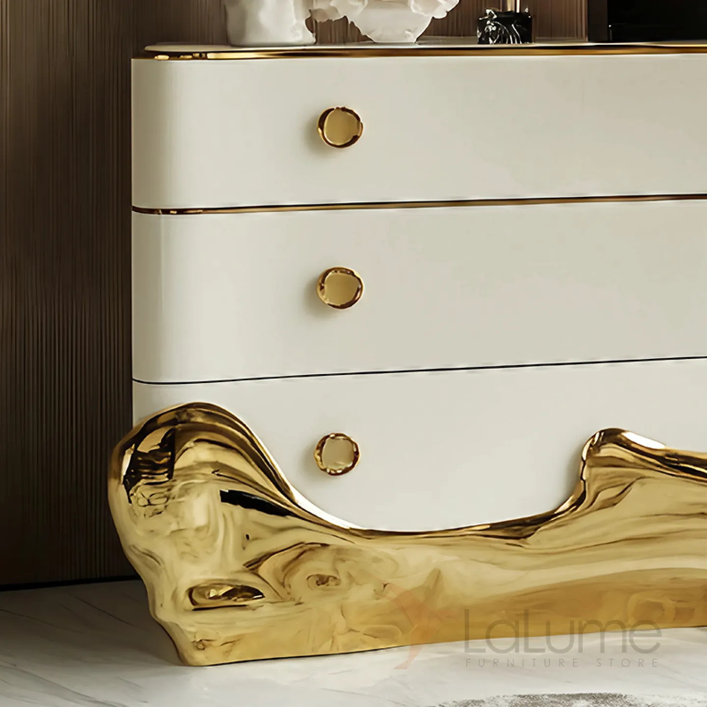 Этот изысканный комод, окрашенный в роскошный золотой оттенок, станет великолепным дополнением к вашему интерьеру. Его мягкие изгибы и искусная имитация ткани придадут особый шик любому пространству, будь то спальня или гостиная.