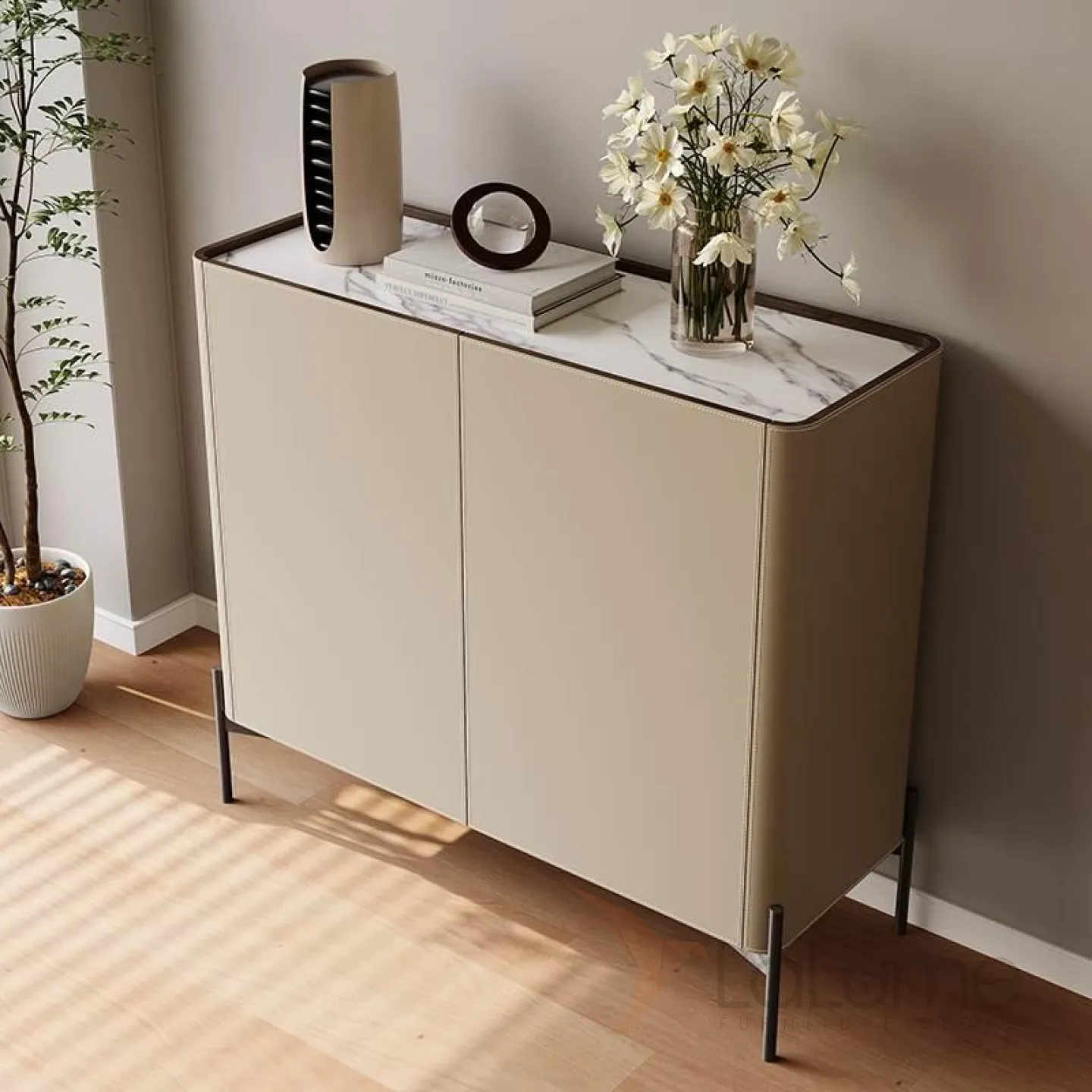 Практичный комод Wand обитый кожей с мраморной столешницей KD39484-32
