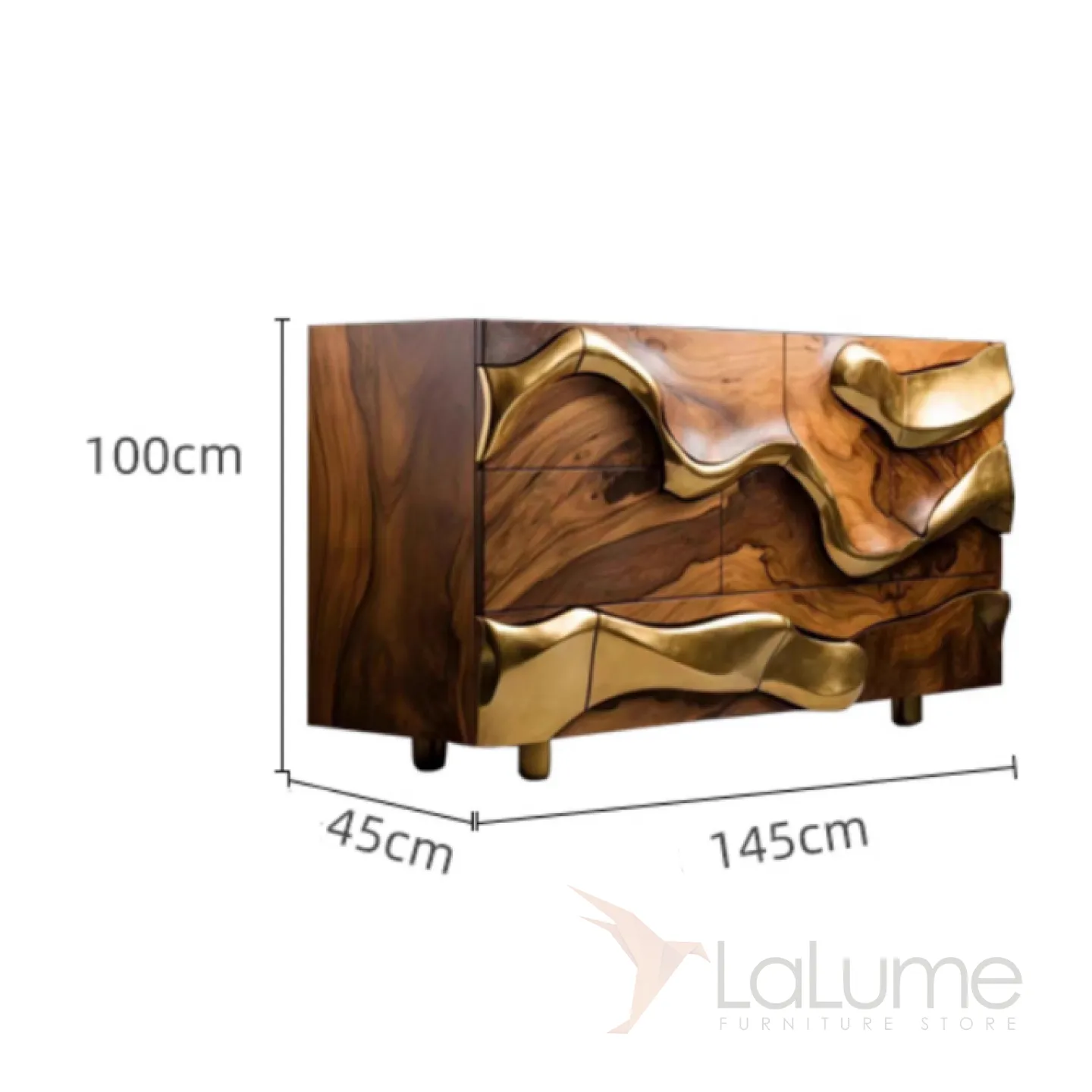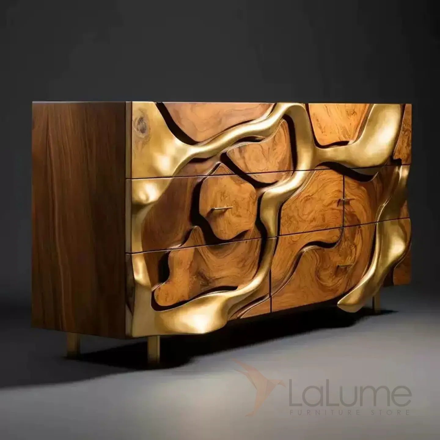 Резной комод из орехового дерева, украшенный позолотой, станет ярким акцентом в любом интерьере. Шесть выдвижных ящиков позволяют удобно организовать пространство для хранения. Вам доступны четыре различных варианта комода.