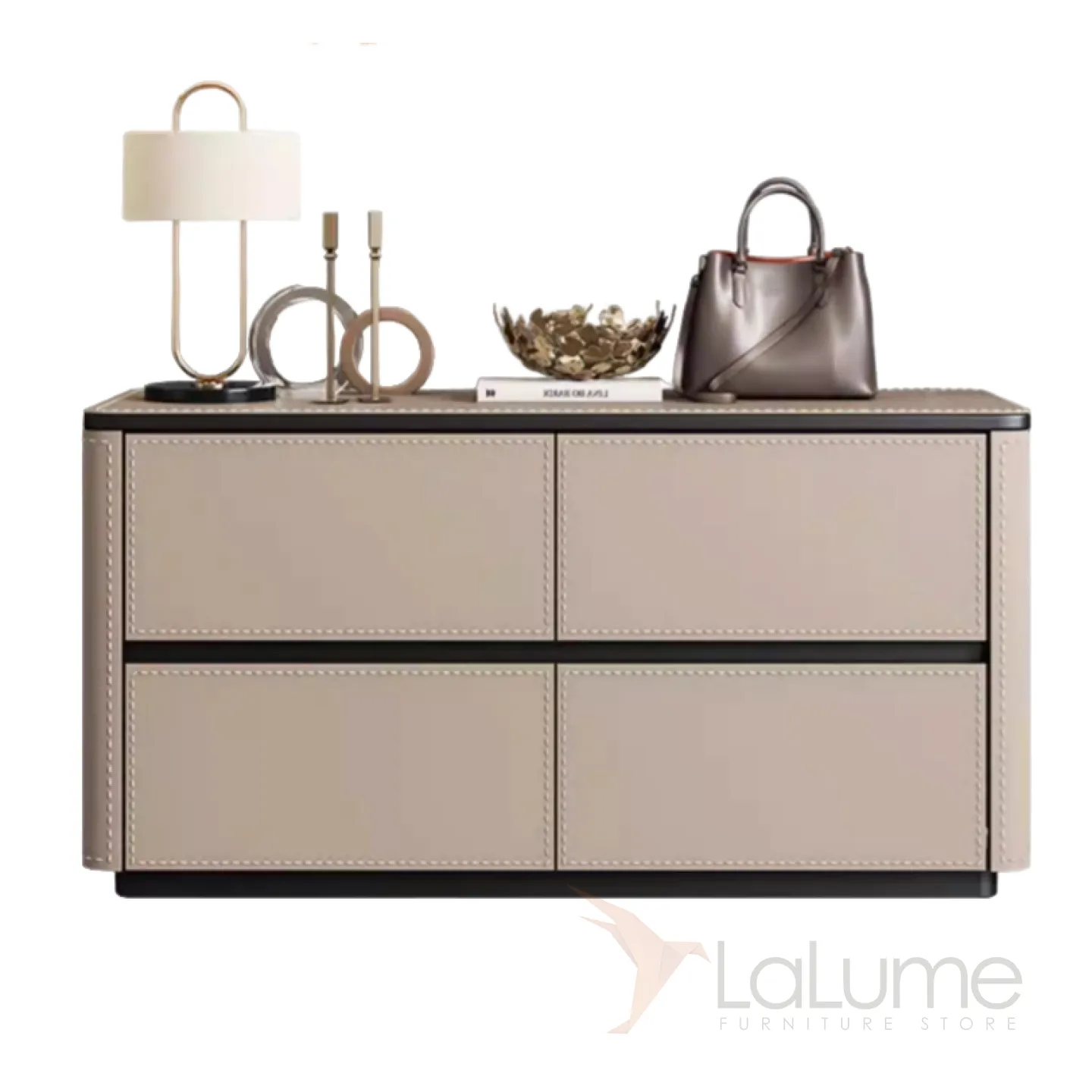 Классический комод Carat от LaLume с обивкой из кожи и мраморной столешницей KD40284-32