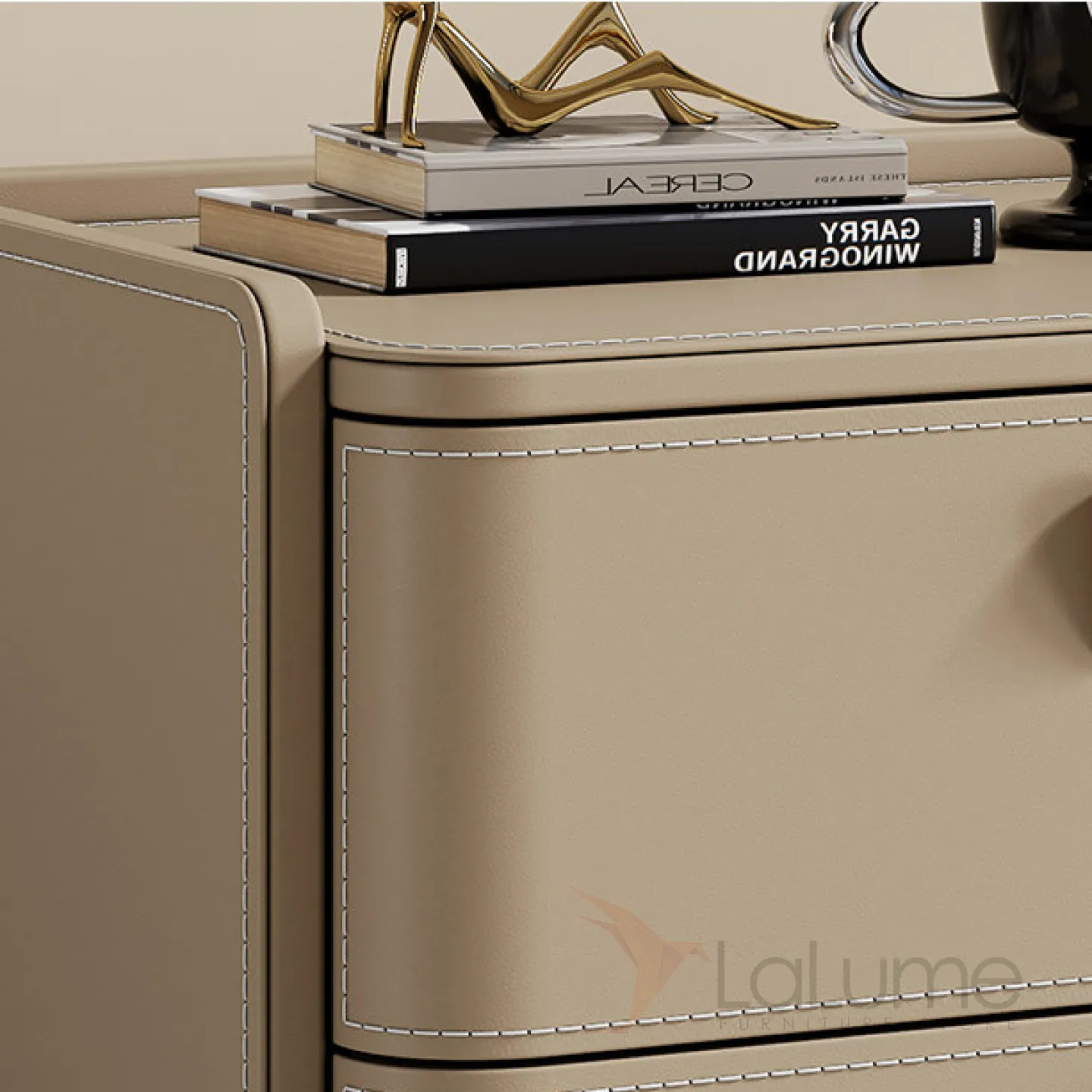 Классическая прикроватная тумба Carat от LaLume с обивкой из кожи и столешницей из мрамора KD40286-32