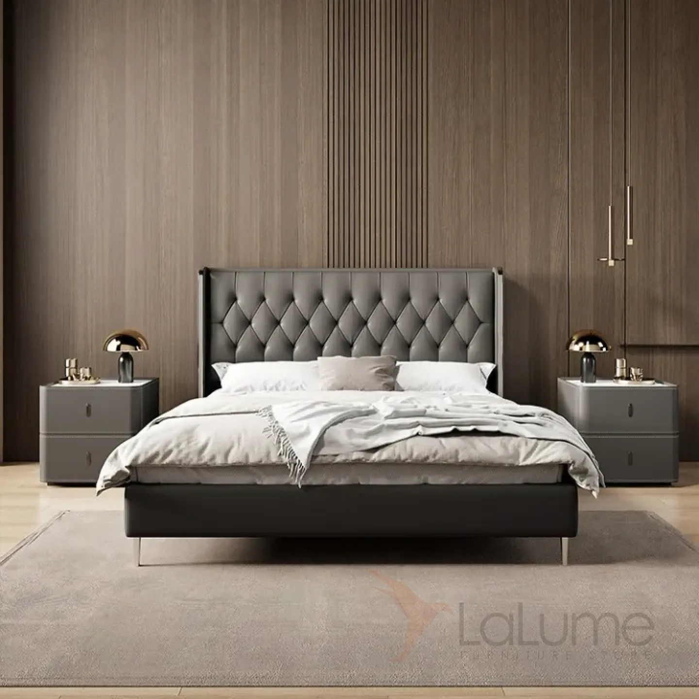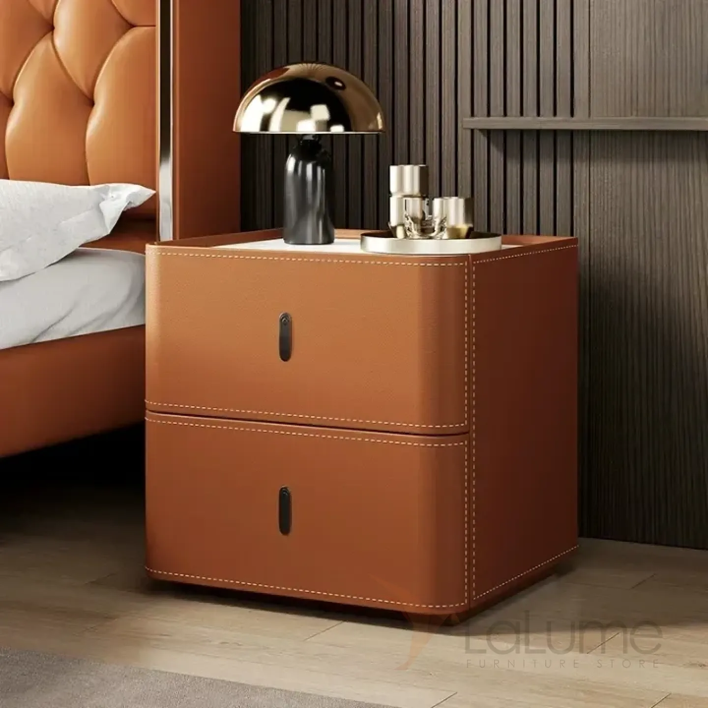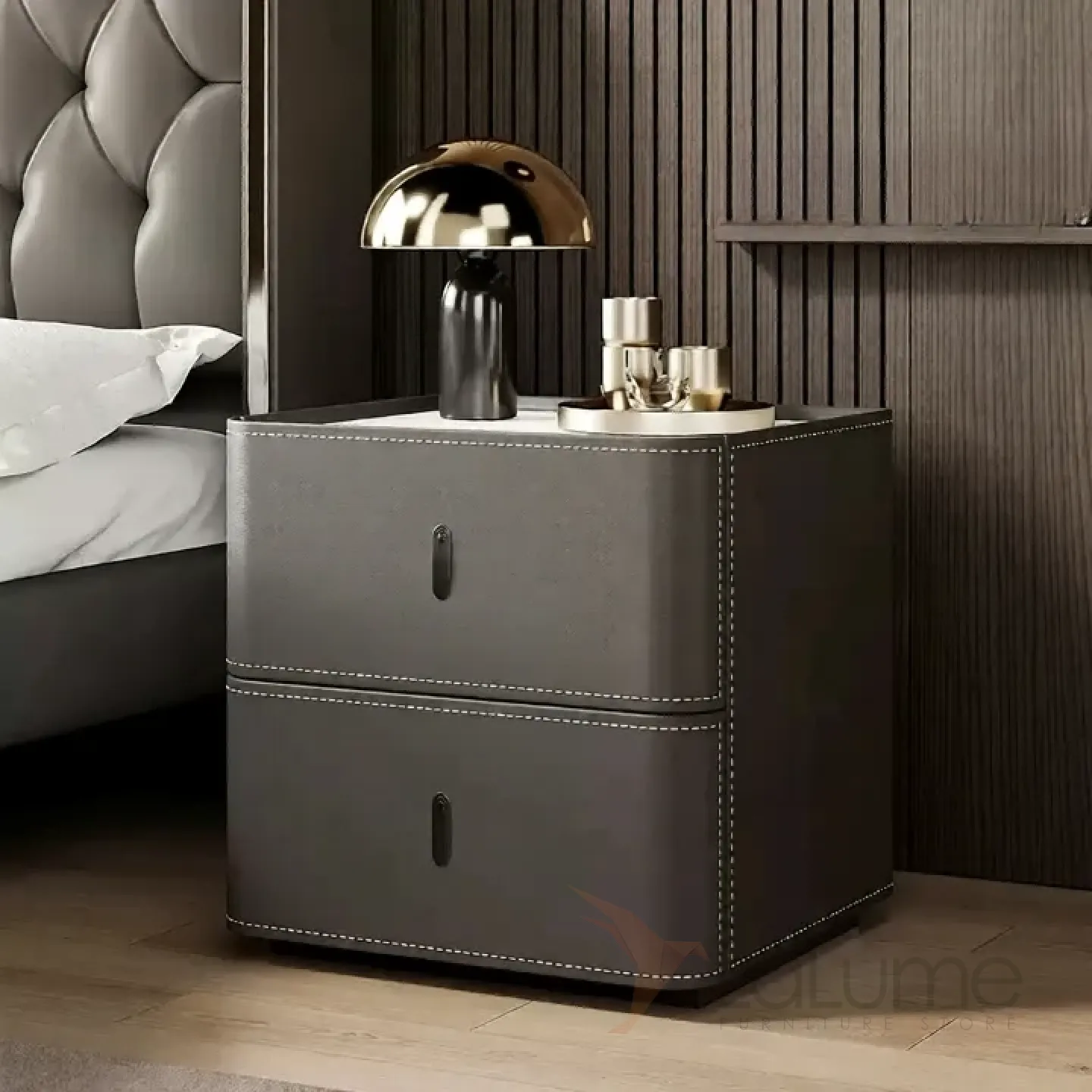 Классическая прикроватная тумба Carat от LaLume с обивкой из кожи KD40294-32
