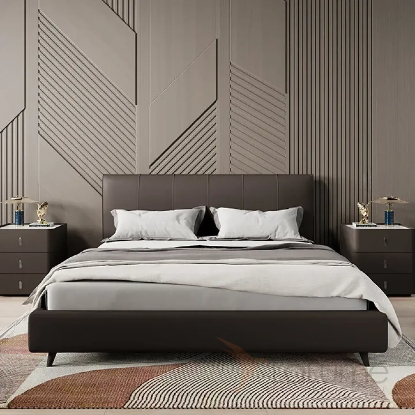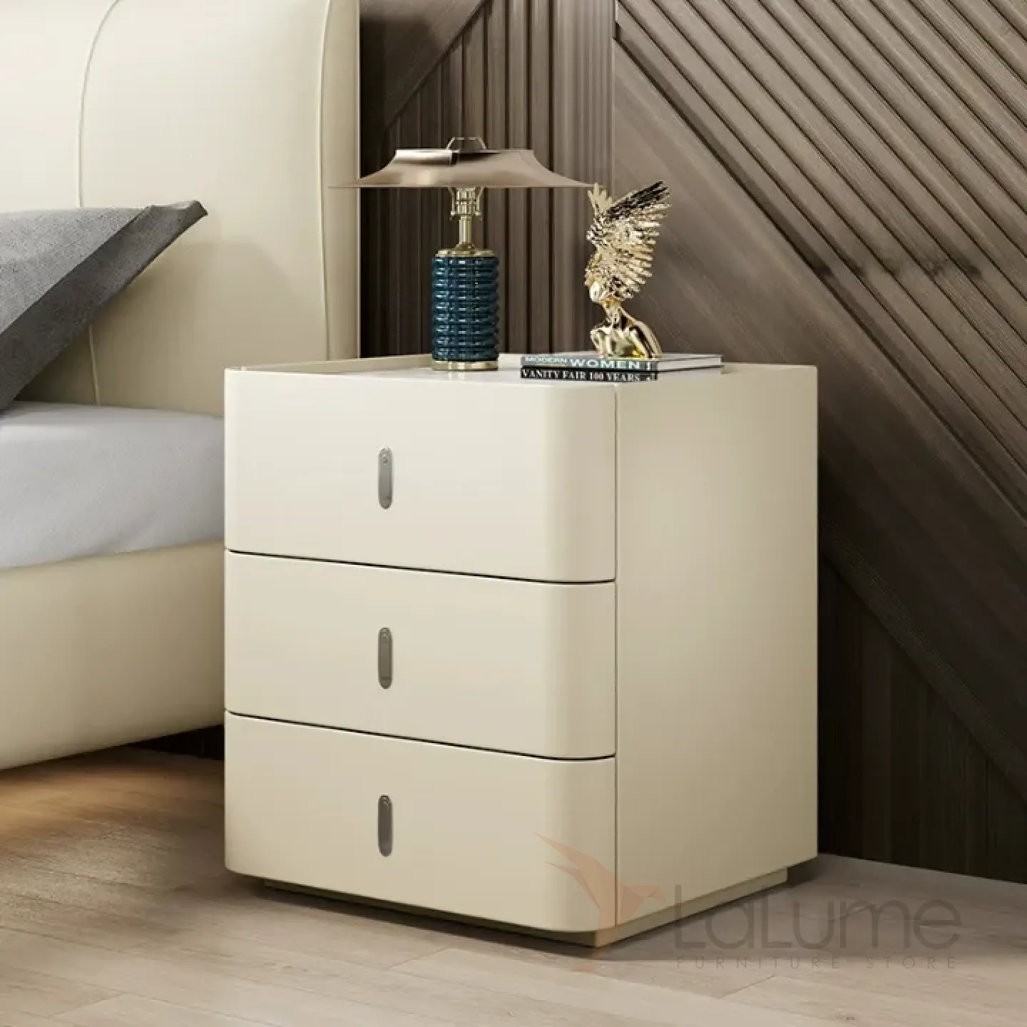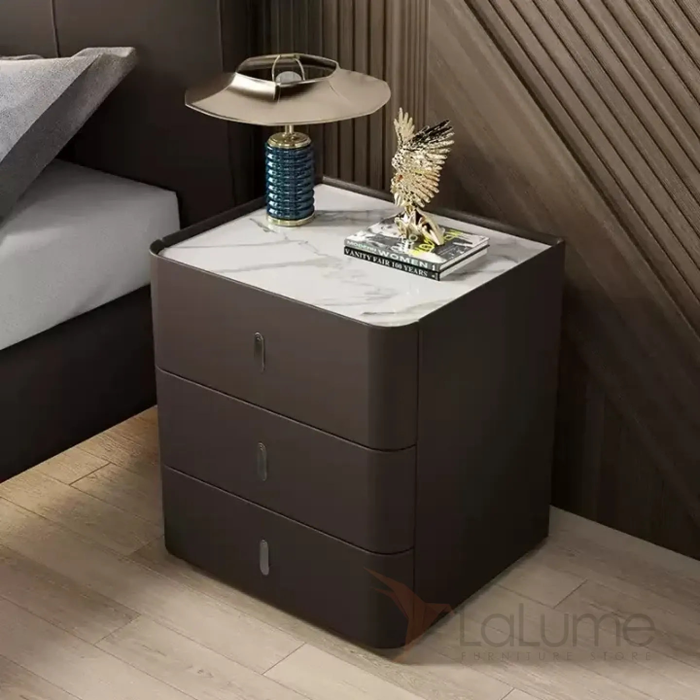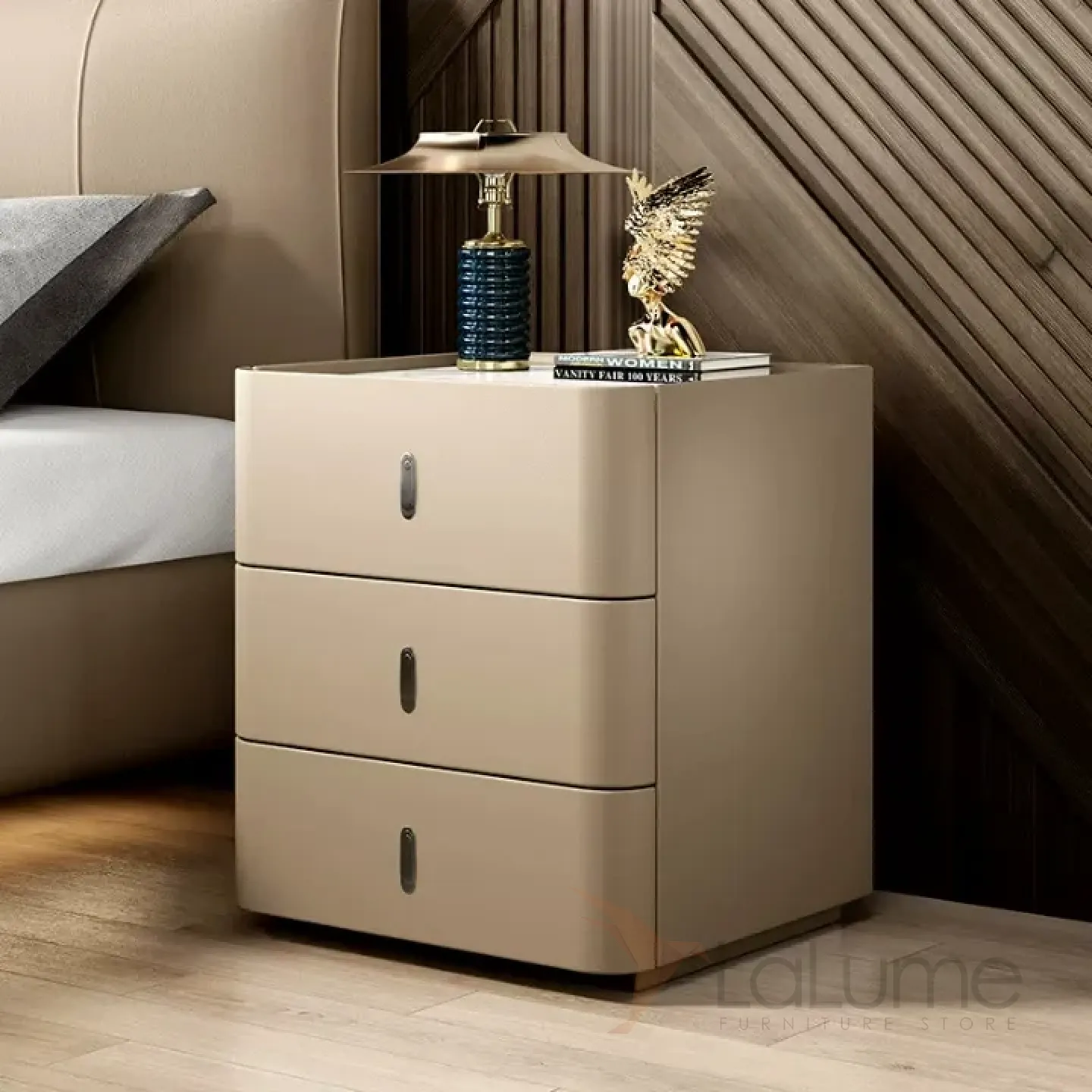 Классическая прикроватная тумба Carat от LaLume обивка кожа из микрофибры KD40296-32