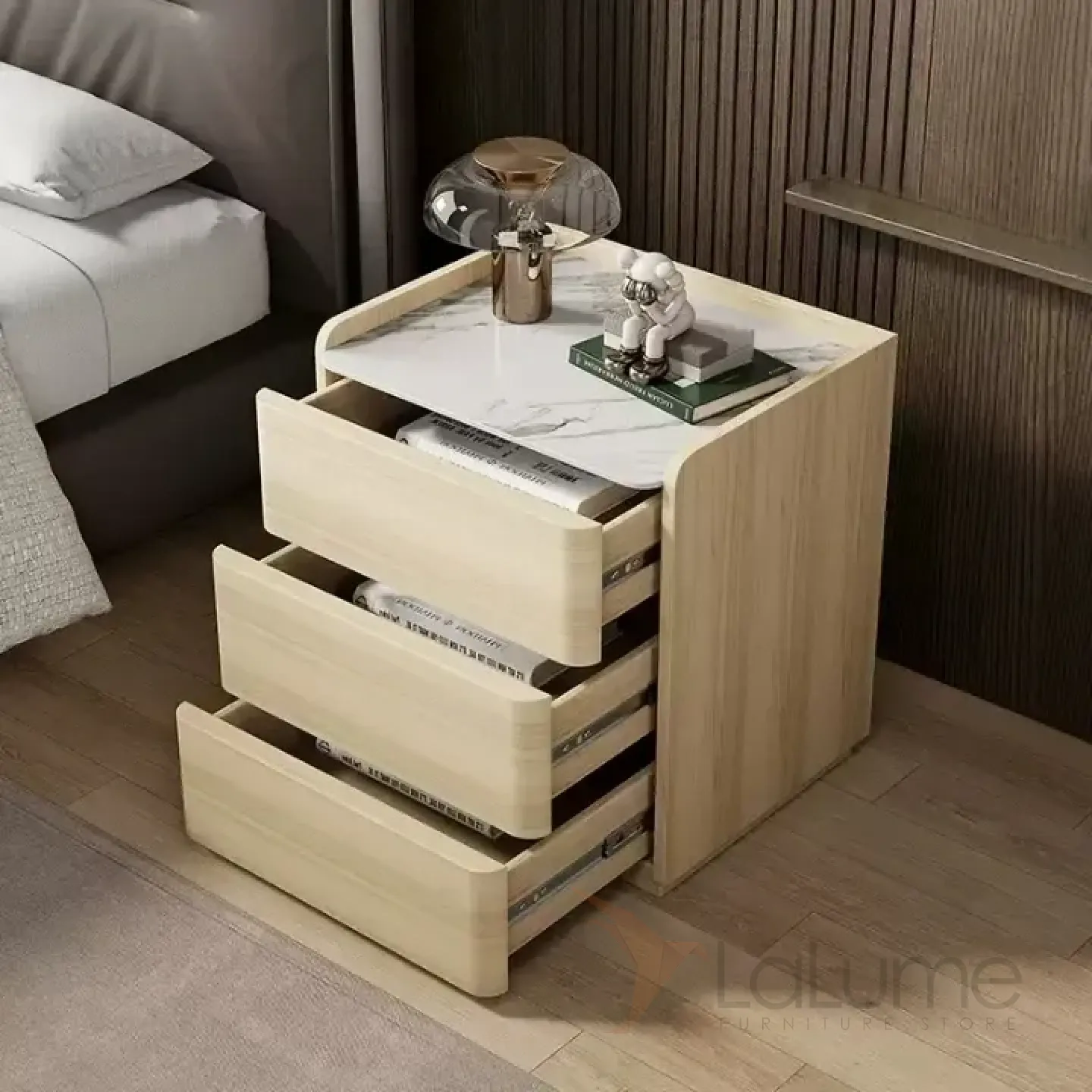 Классическая прикроватная тумба из цельного дерева, столешница из мрамора. Функциональность дополнена 3мя выдвижными ящиками.