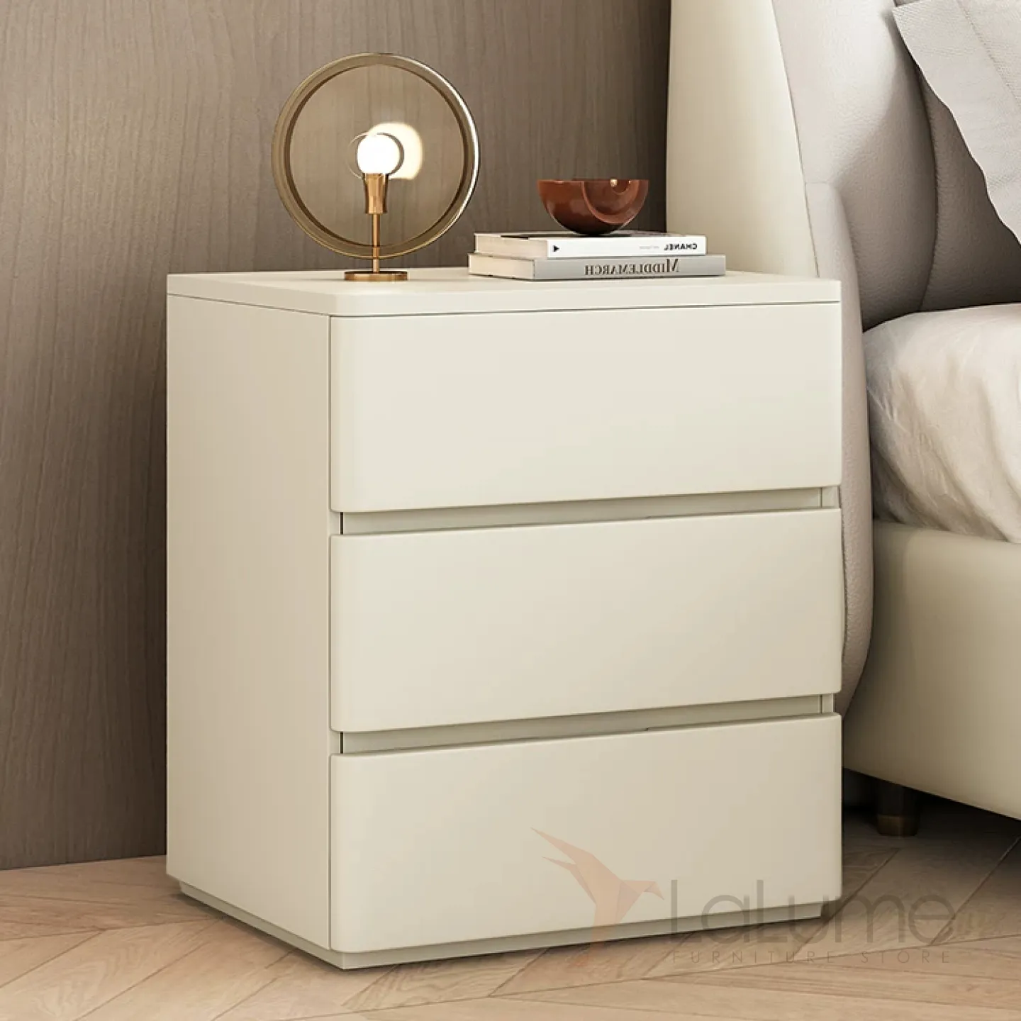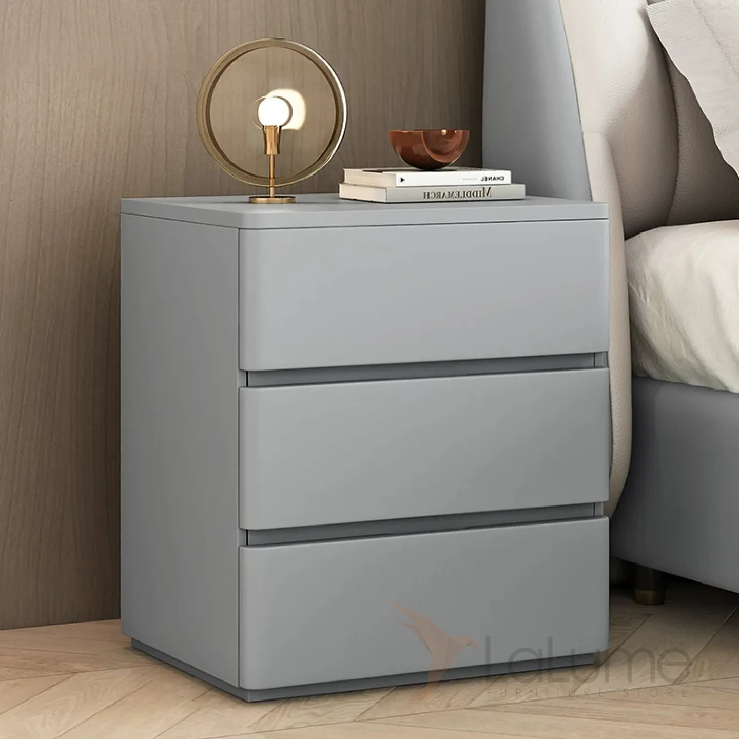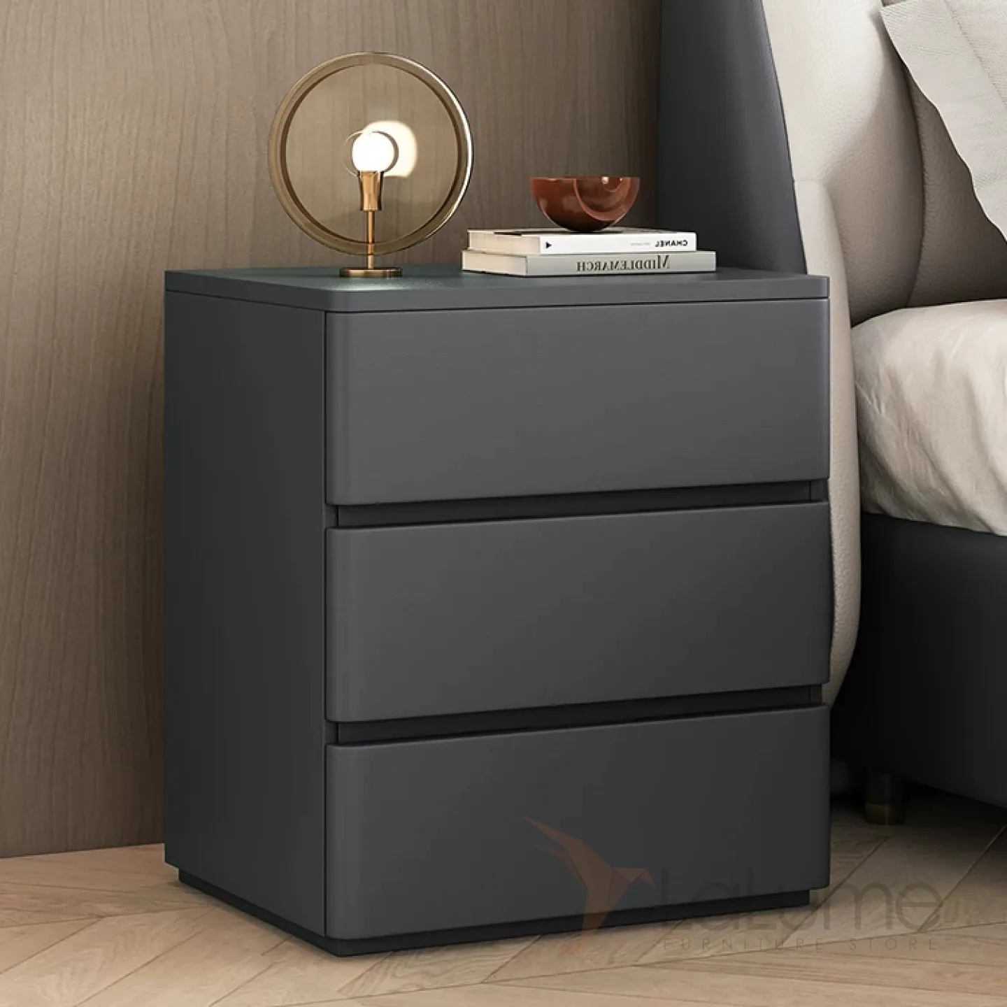 Классическая прикроватная тумба из цельного дерева обитого кожей, столешница из мрамора. Функциональность дополнена 3мя выдвижными ящиками.