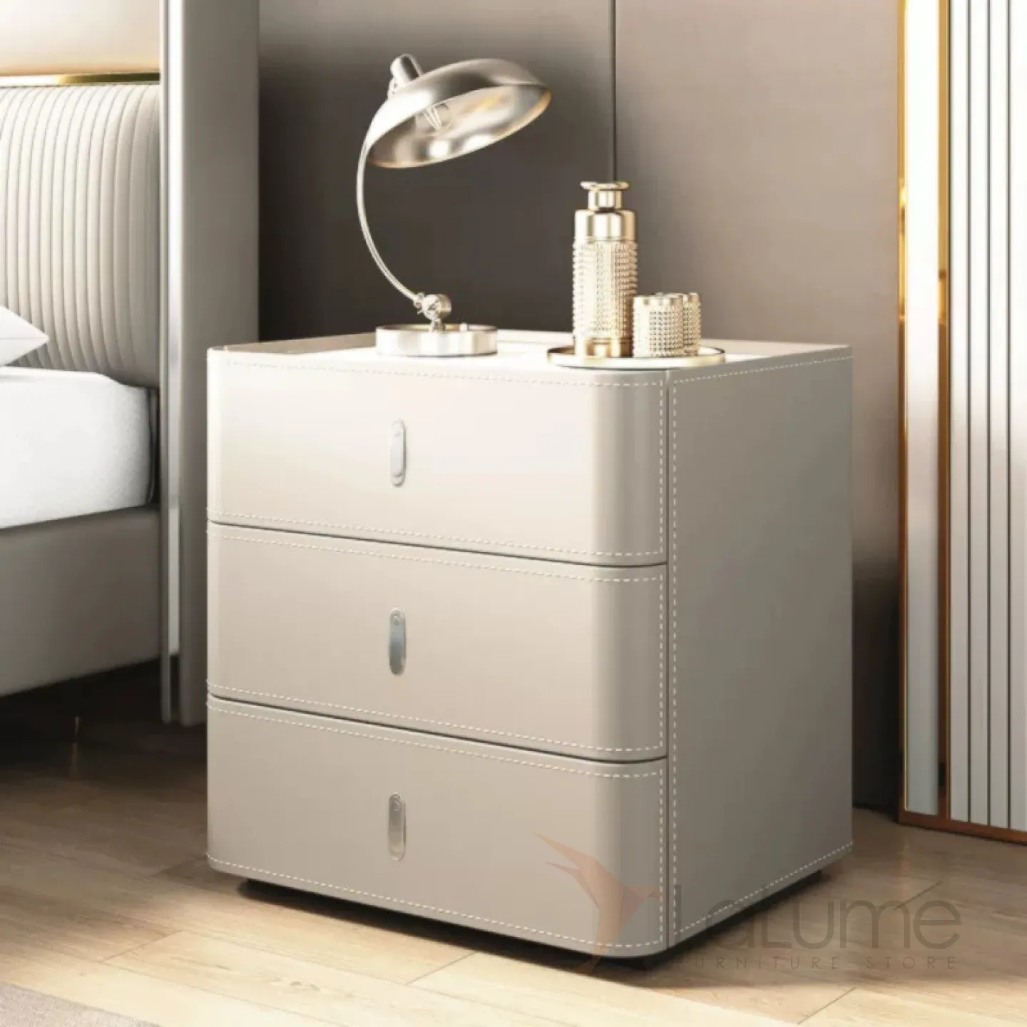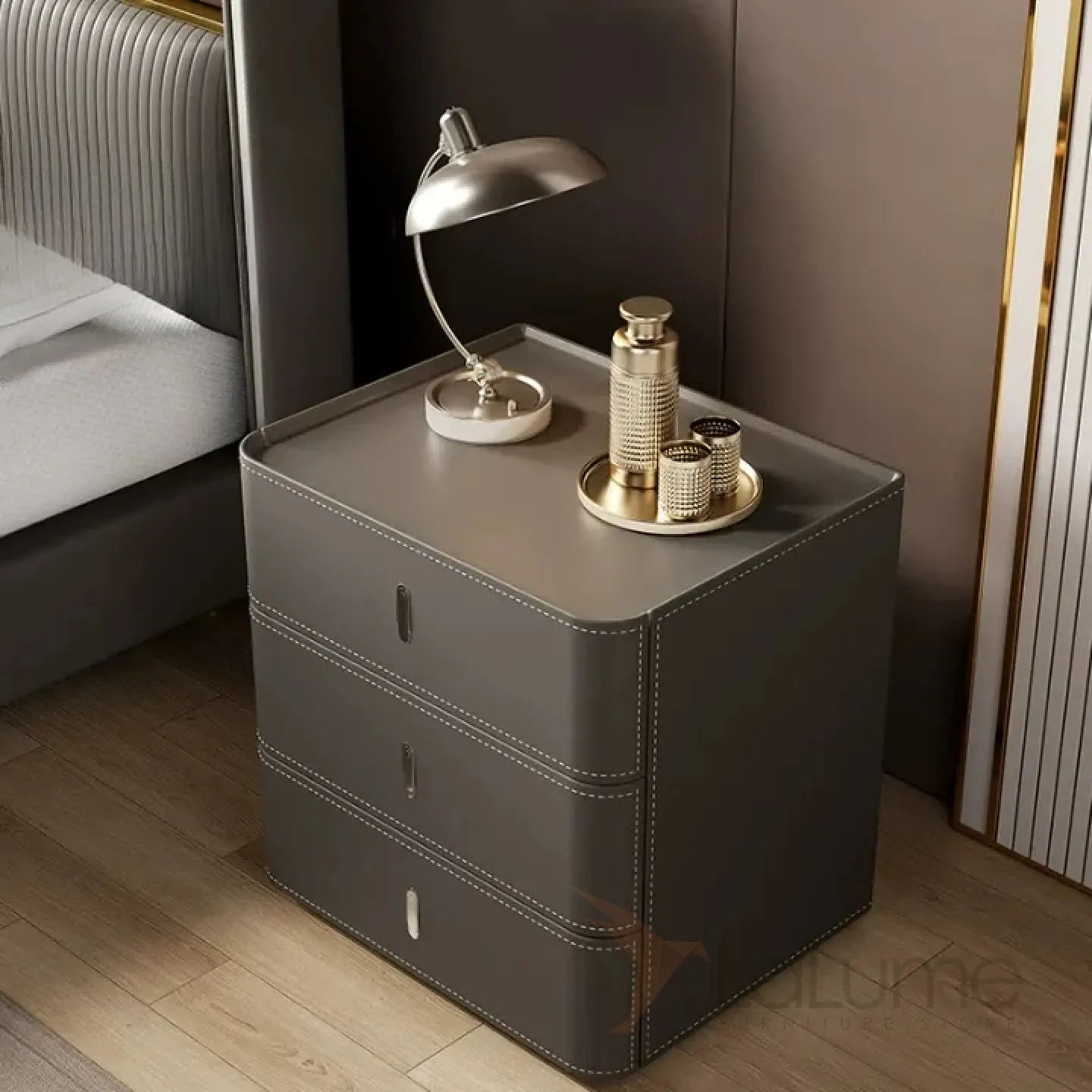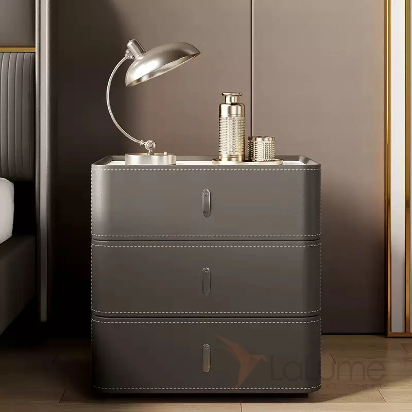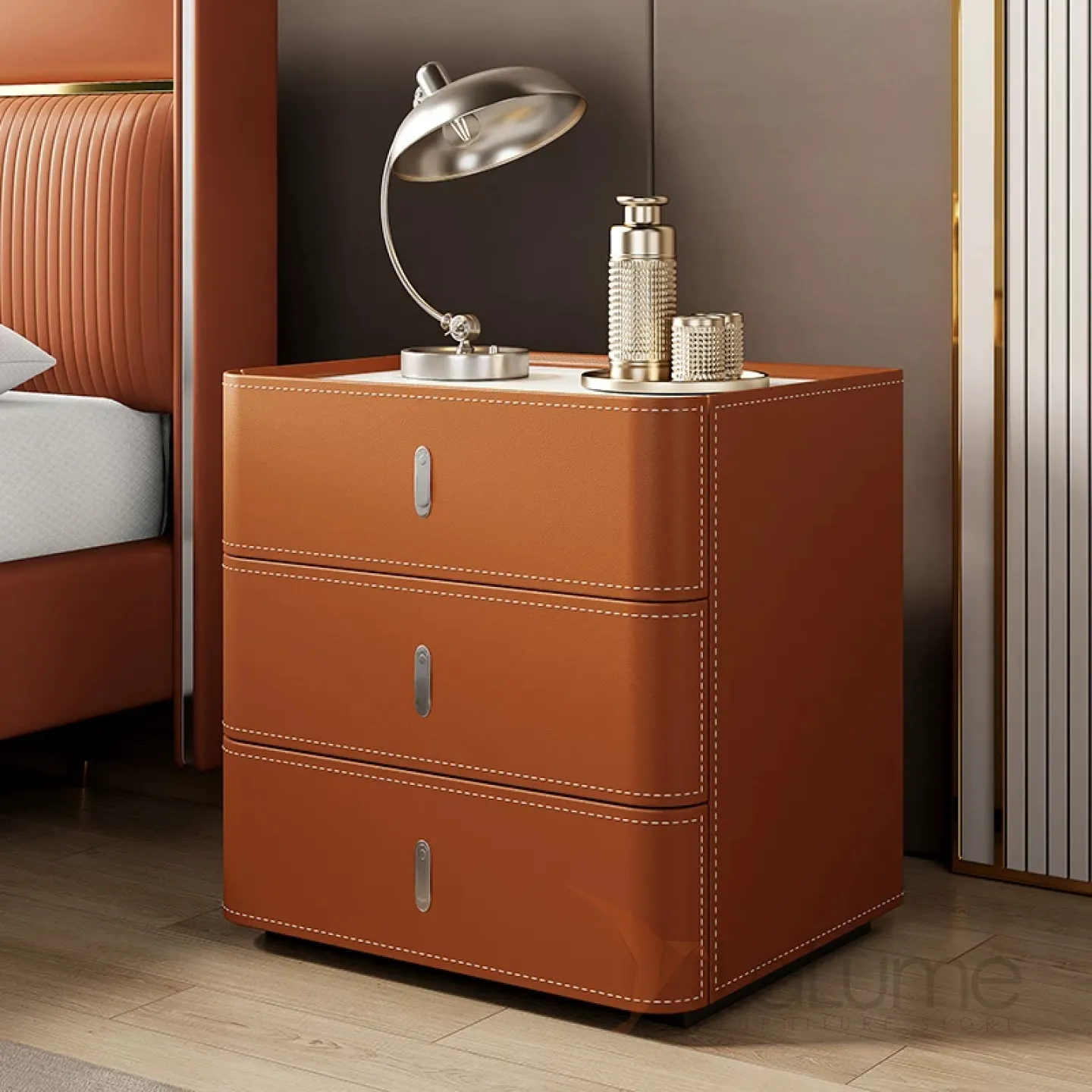 Классическая прикроватная тумба Carat с кожаной обивкой KD40308-32