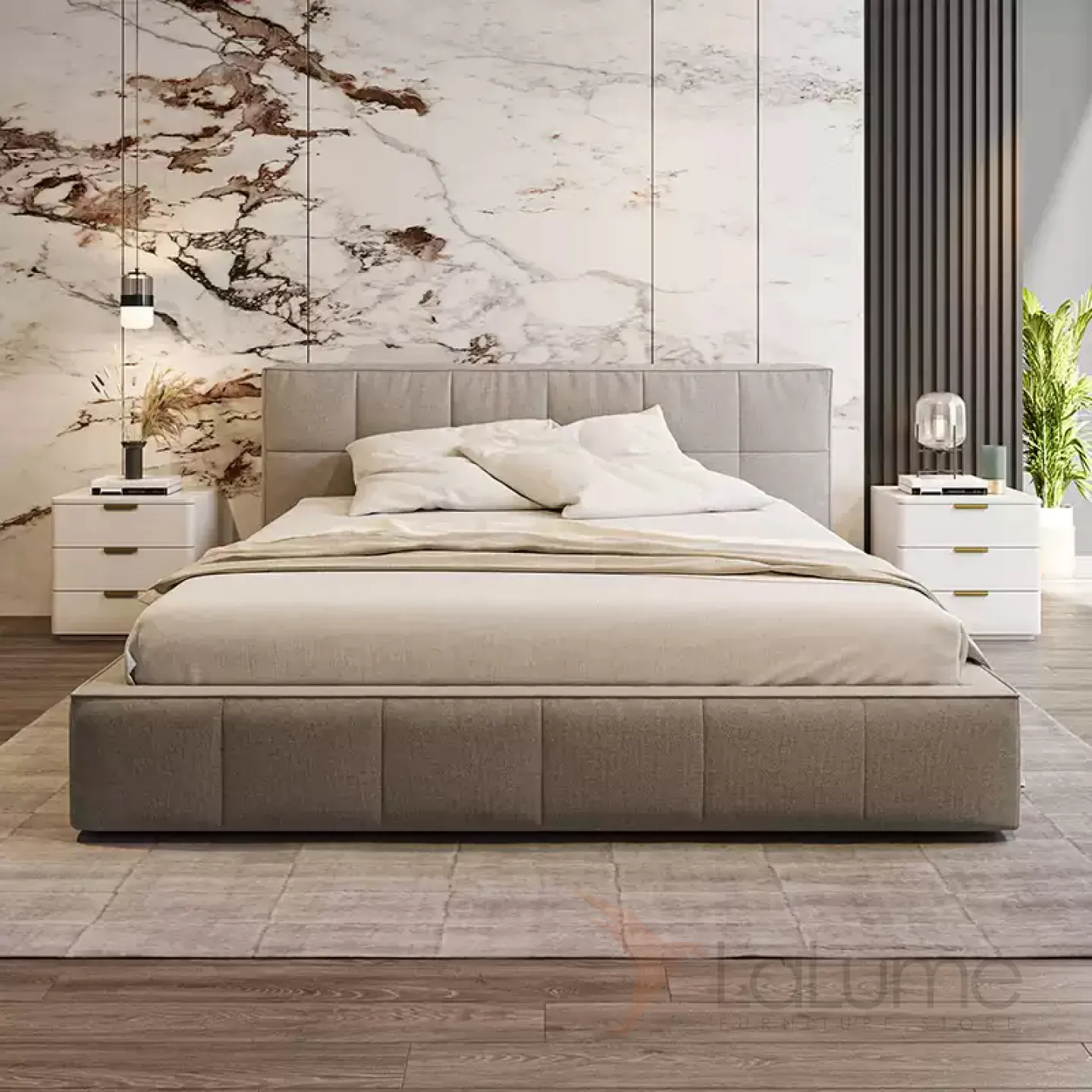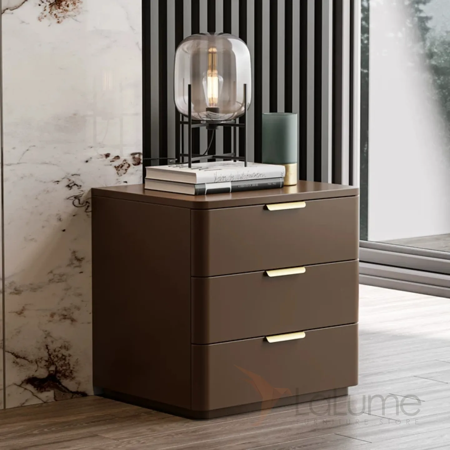 Классическая прикроватная тумба из цельного дерева обитого кожей, столешница из кожи или мрамора, в зависимости от модели. Функциональность дополнена 3мя выдвижными ящиками.