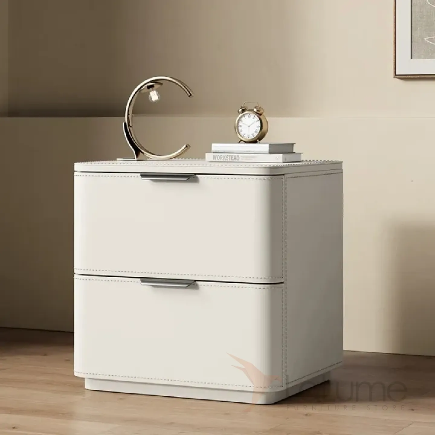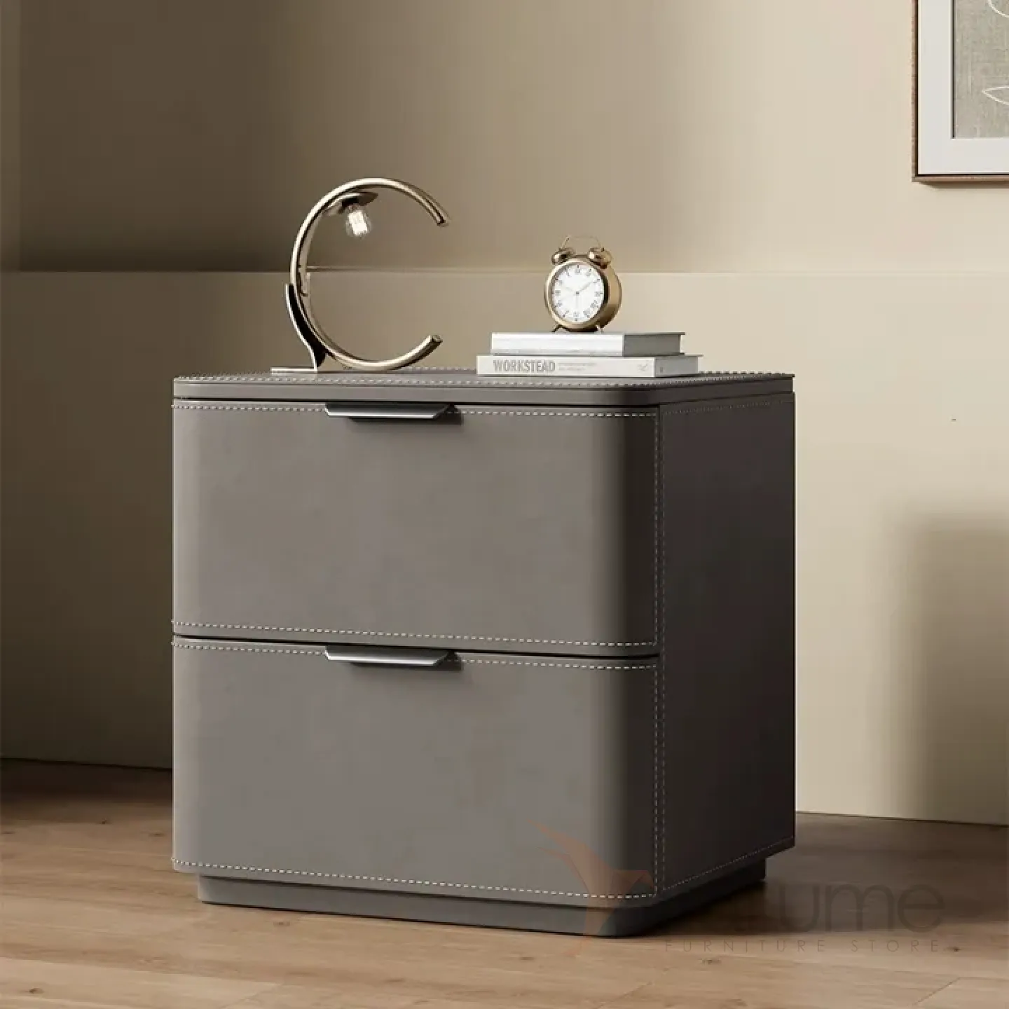 Классическая прикроватная тумба из цельного дерева обитого кожей, столешница из кожи или мрамора, в зависимости от модели. Функциональность дополнена 2 выдвижными ящиками.