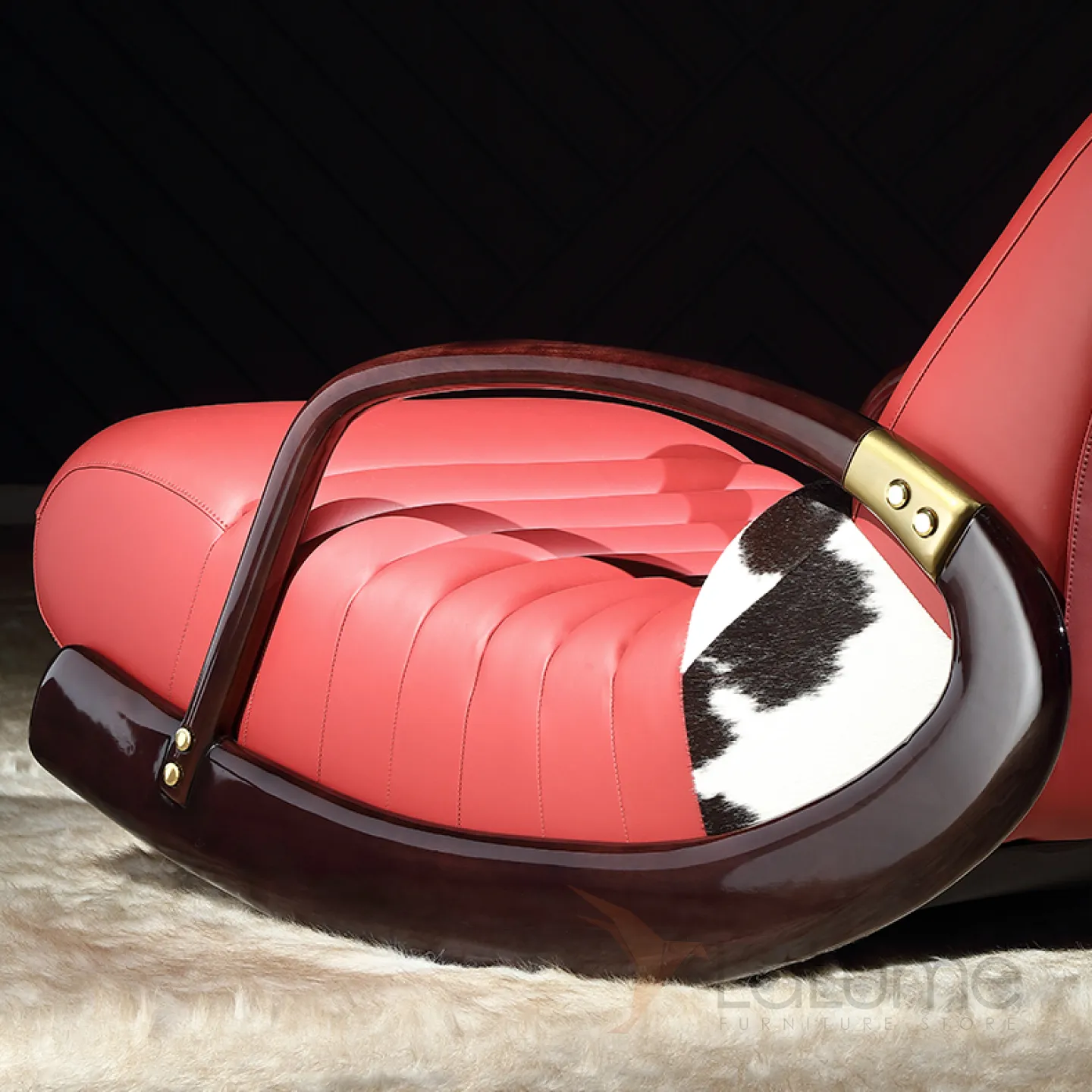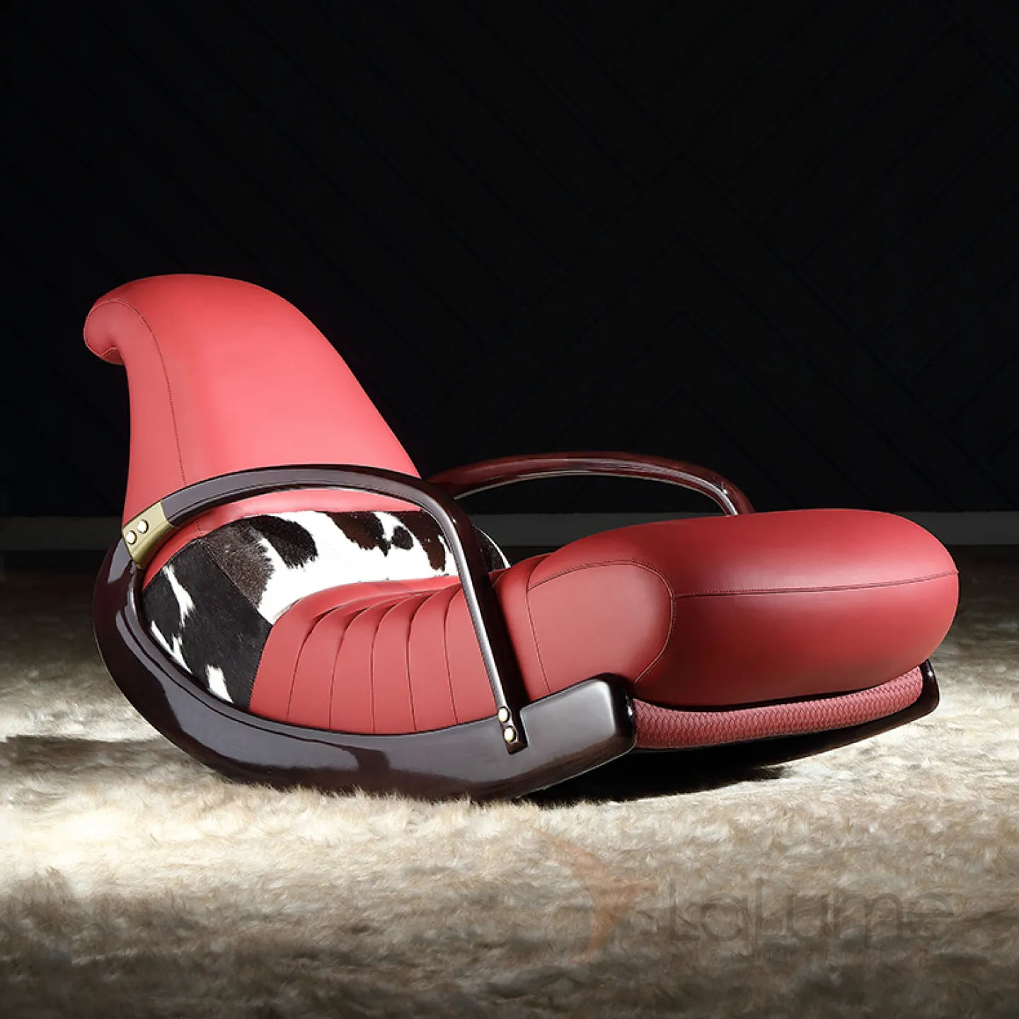 Кресло-качалка, изготовленное из натуральной кожи и дерева, станет вашим излюбленным уголком для отдыха. Валик под спину из кожи коровы.