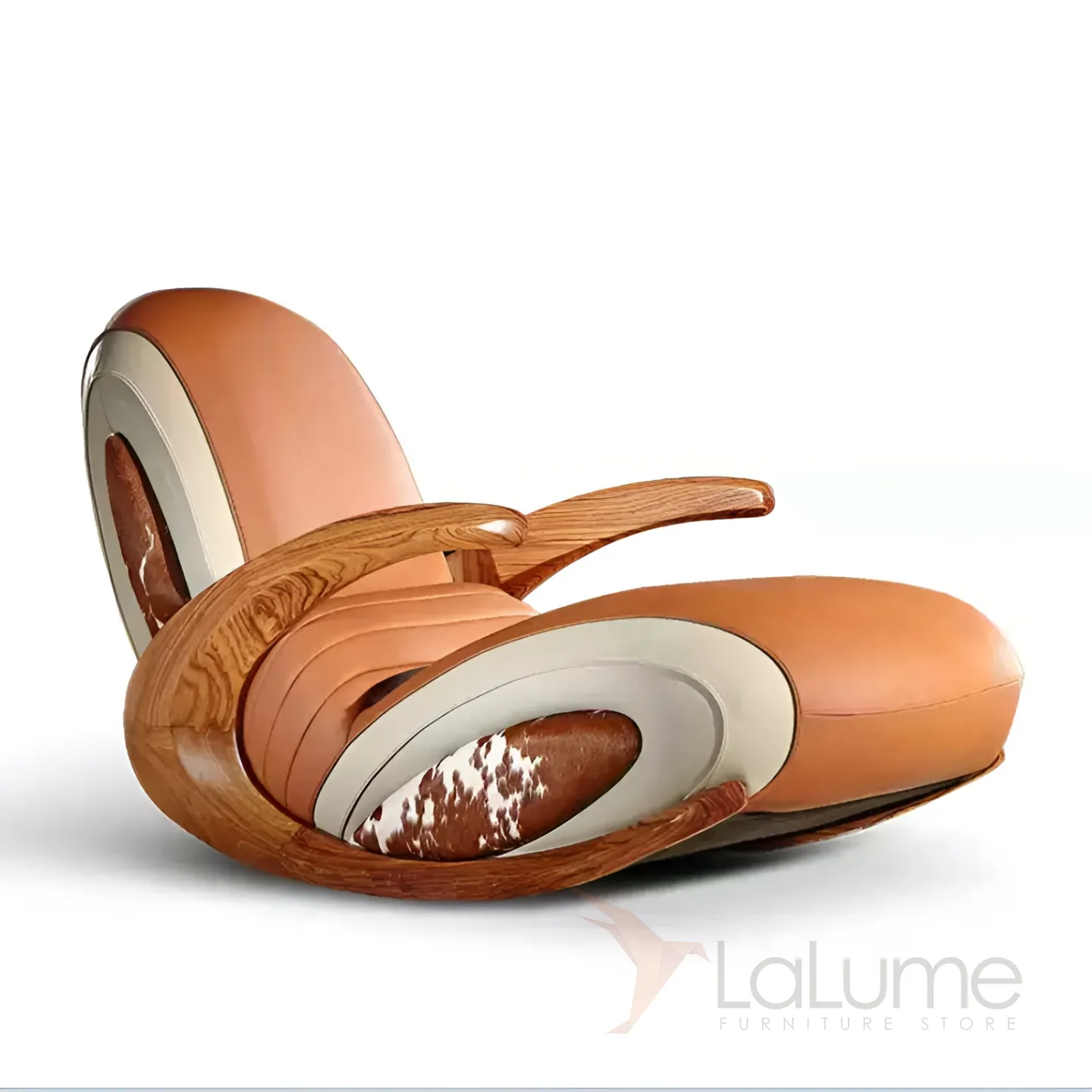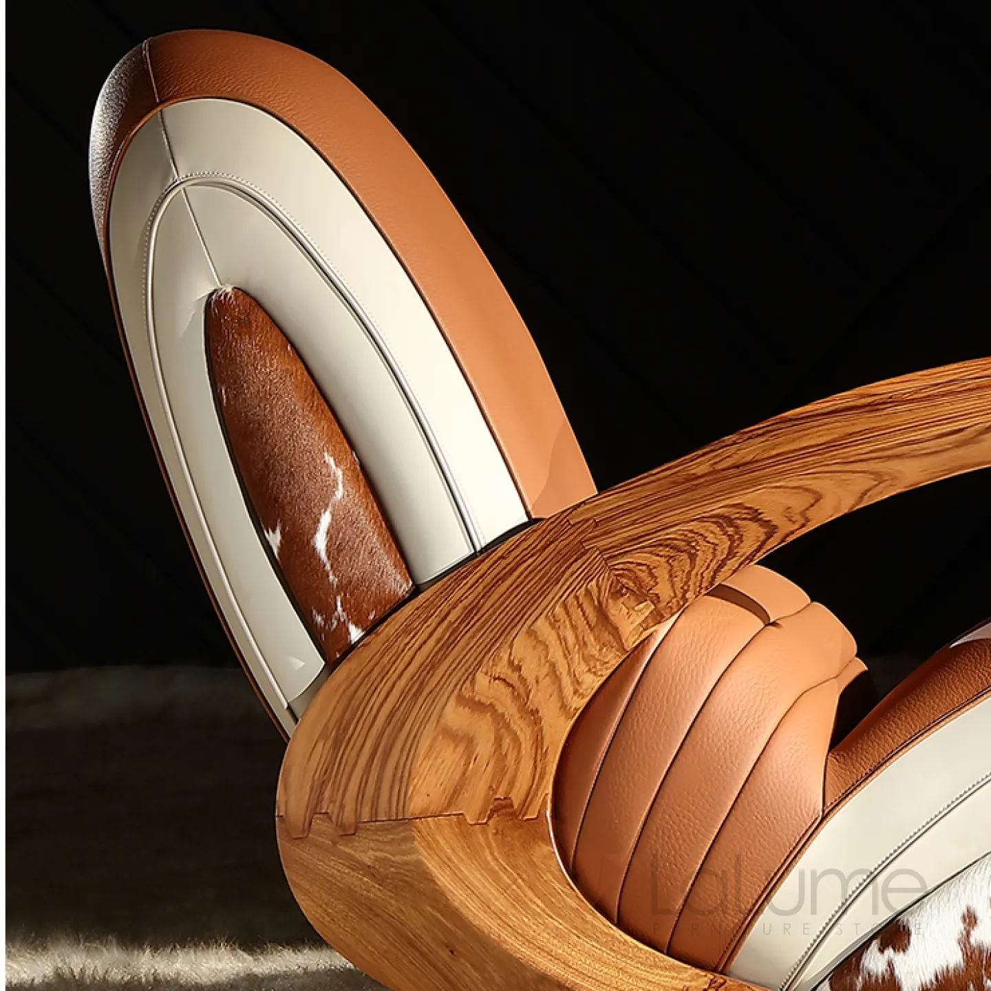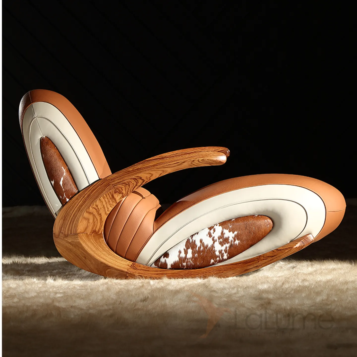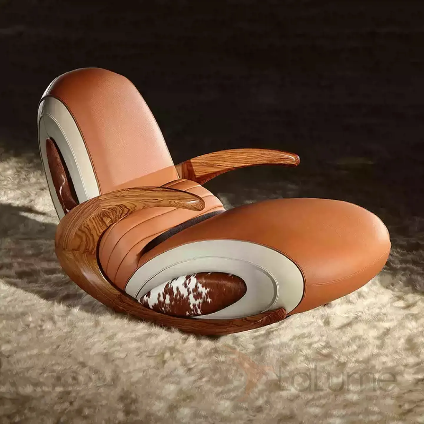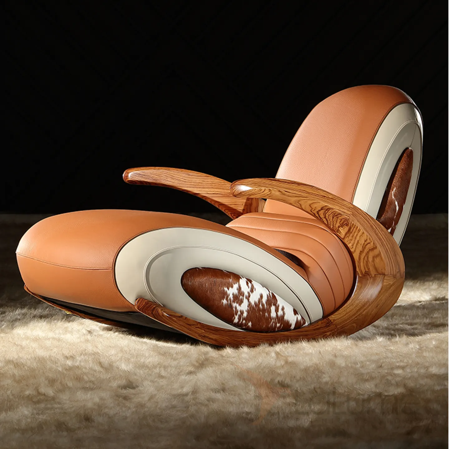 Дизайнерское кресло-качалка Mivica из дерева, натуральной кожи, меха коровы KR38189-32