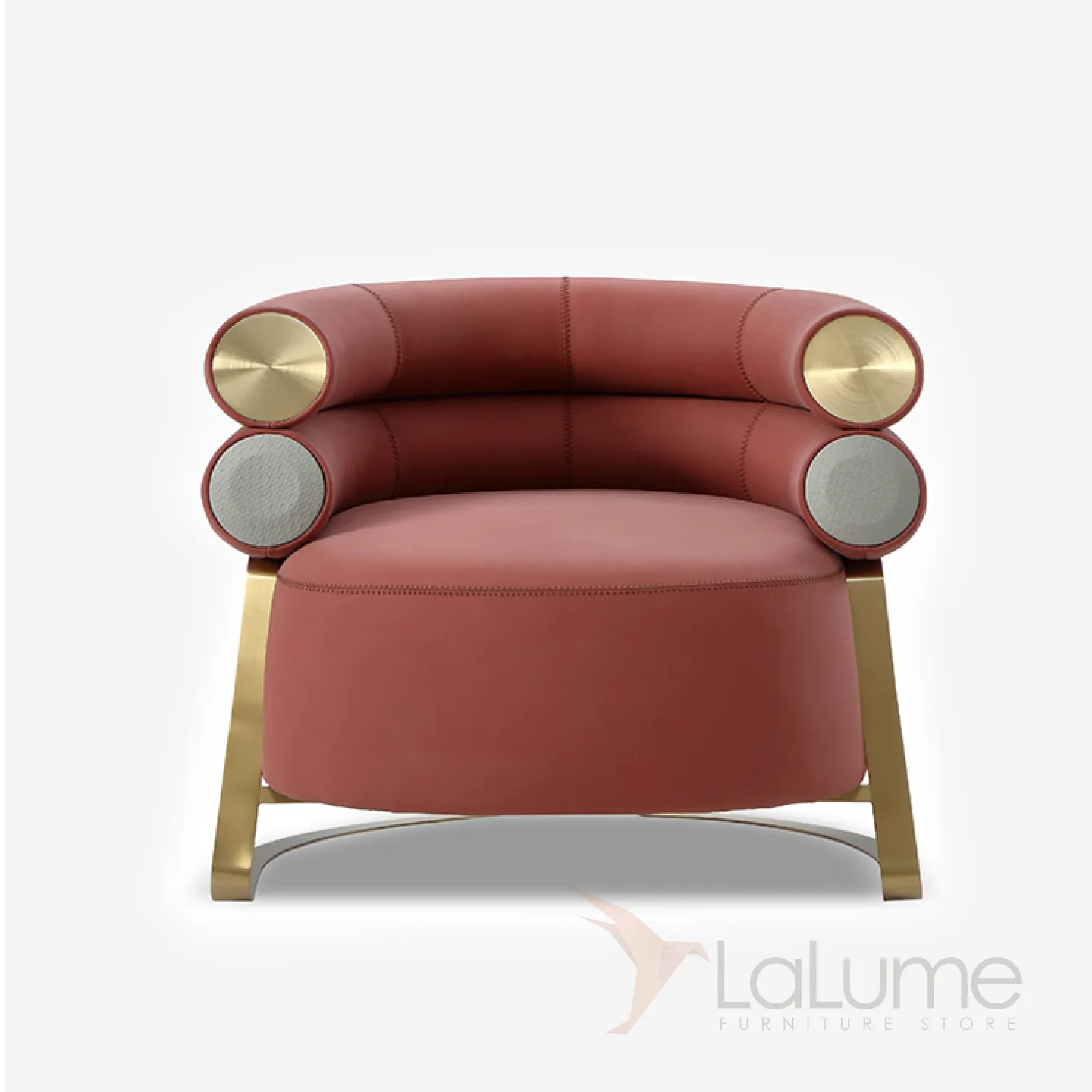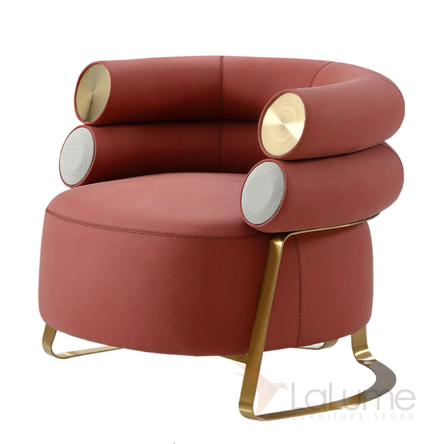 Кожаное кресло с золотой ножкой из нержавеющей стали отличается необычным дизайном. Оно станет ярким акцентом в интерьере и будет привлекать внимание.