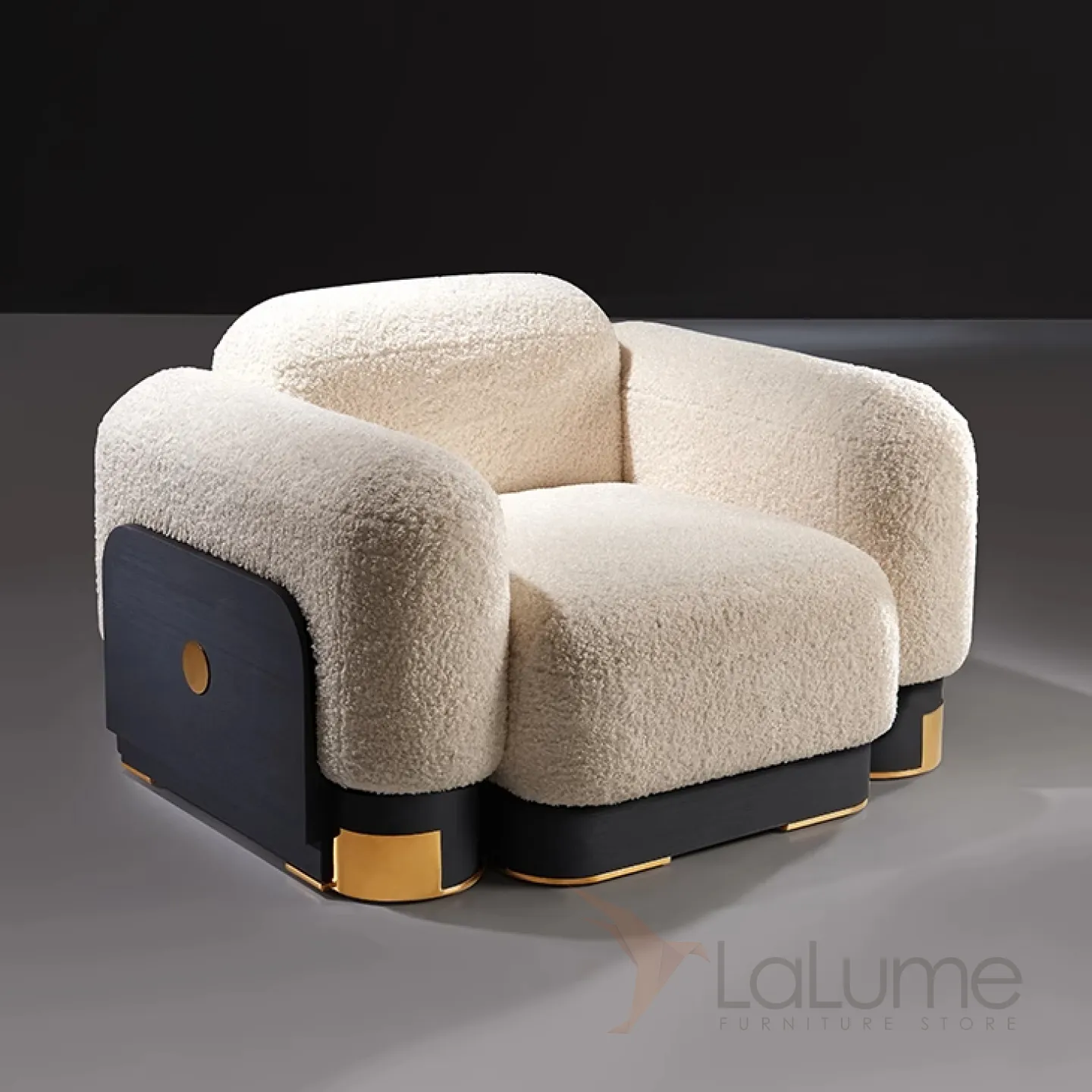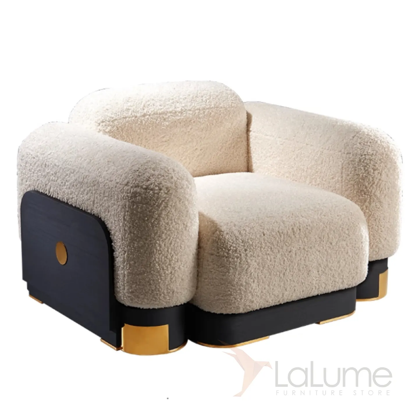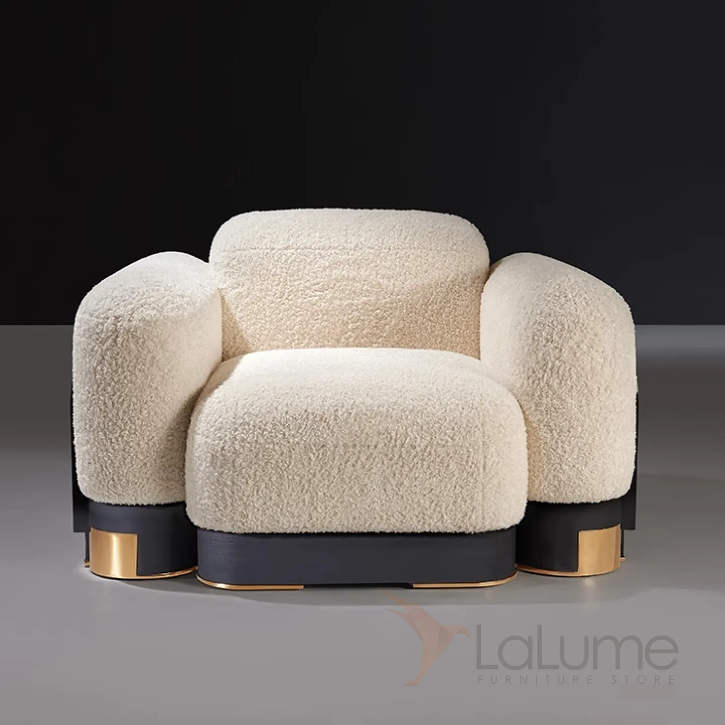 Просторное и уютное кресло. Его основание выполнено из нержавеющей стали и ясеня. Сиденье с прочным мебельным поролоном и пружиной в форме змейки обтянуто высококачественным кашемиром. Пушистая фактура ткани обеспечивает особый комфорт для владельцев.