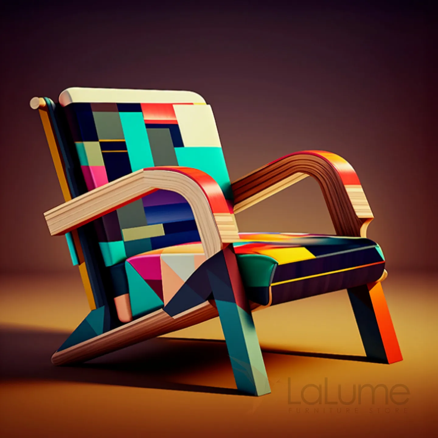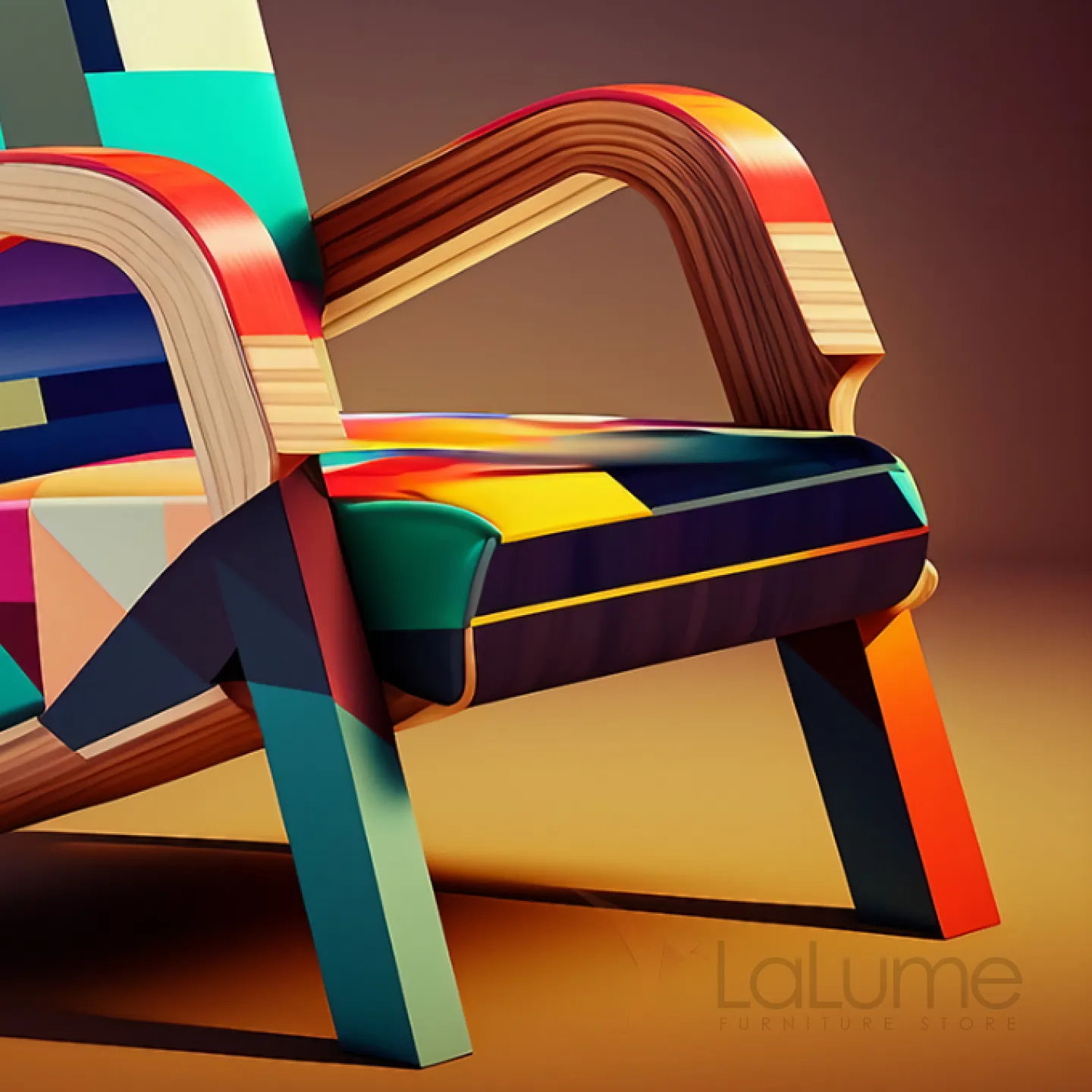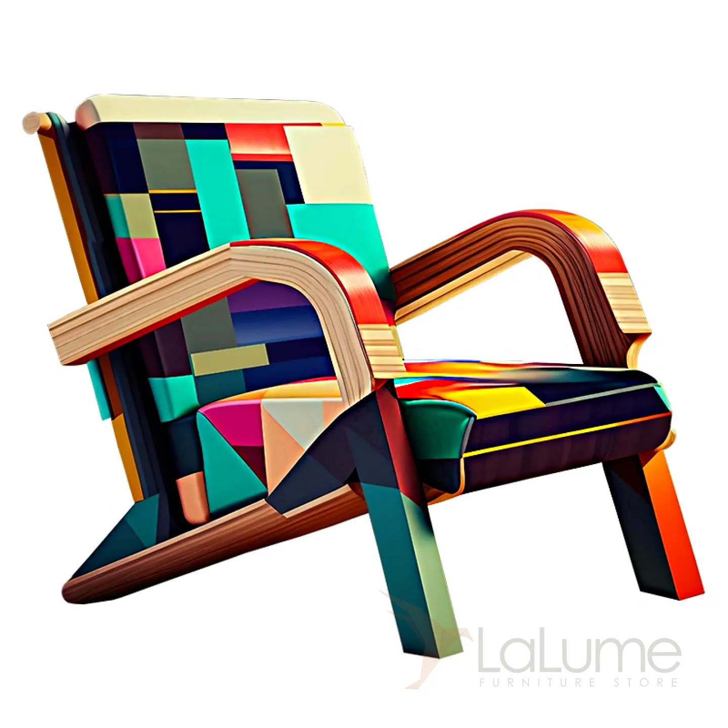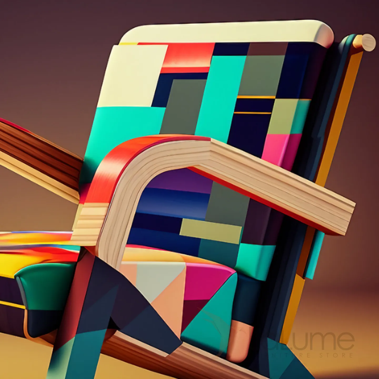 Смелое авангардное кресло — сочетание натурального дерева и элегантной кожи с динамичным геометрическим принтом. Броский акцент, который преобразит любой интерьер.