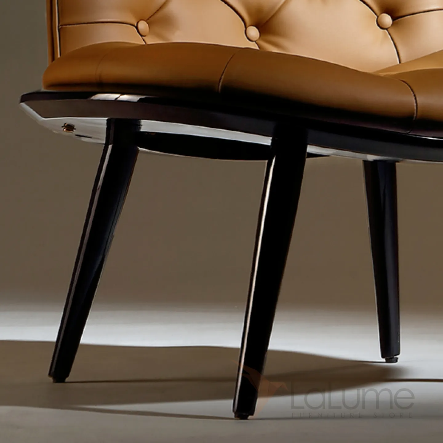 Кресло с эргономичной спинкой из натуральной кожи и деревянным каркасом и ножками. Его утончённый дизайн добавит шарма вашему интерьеру и подчеркнёт безупречный вкус.