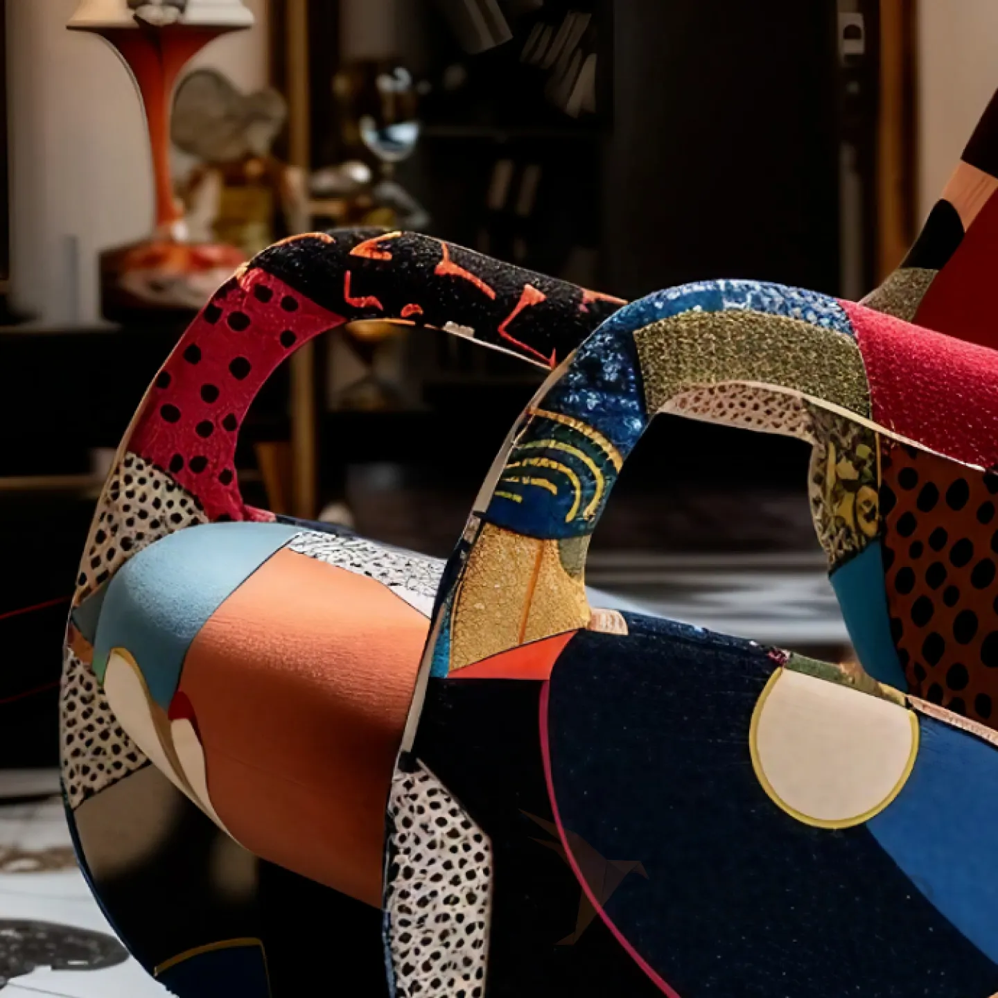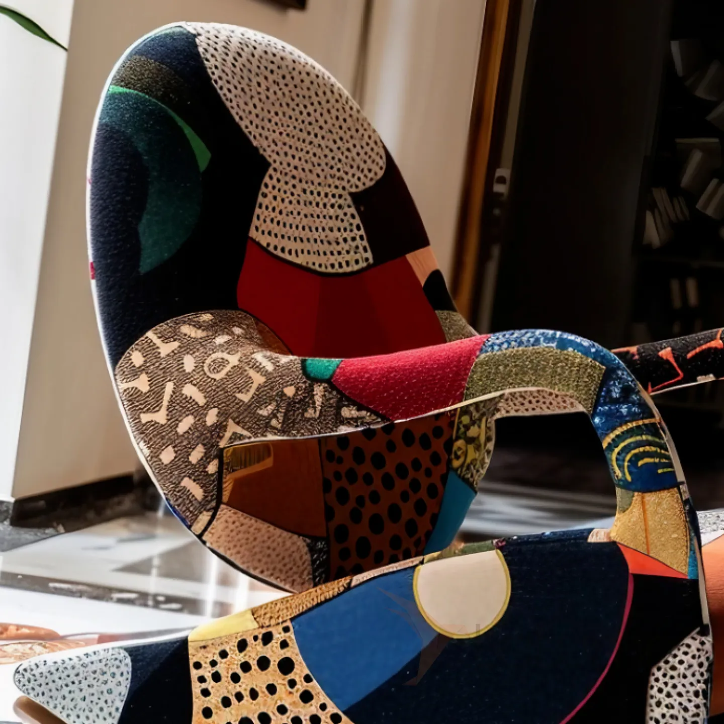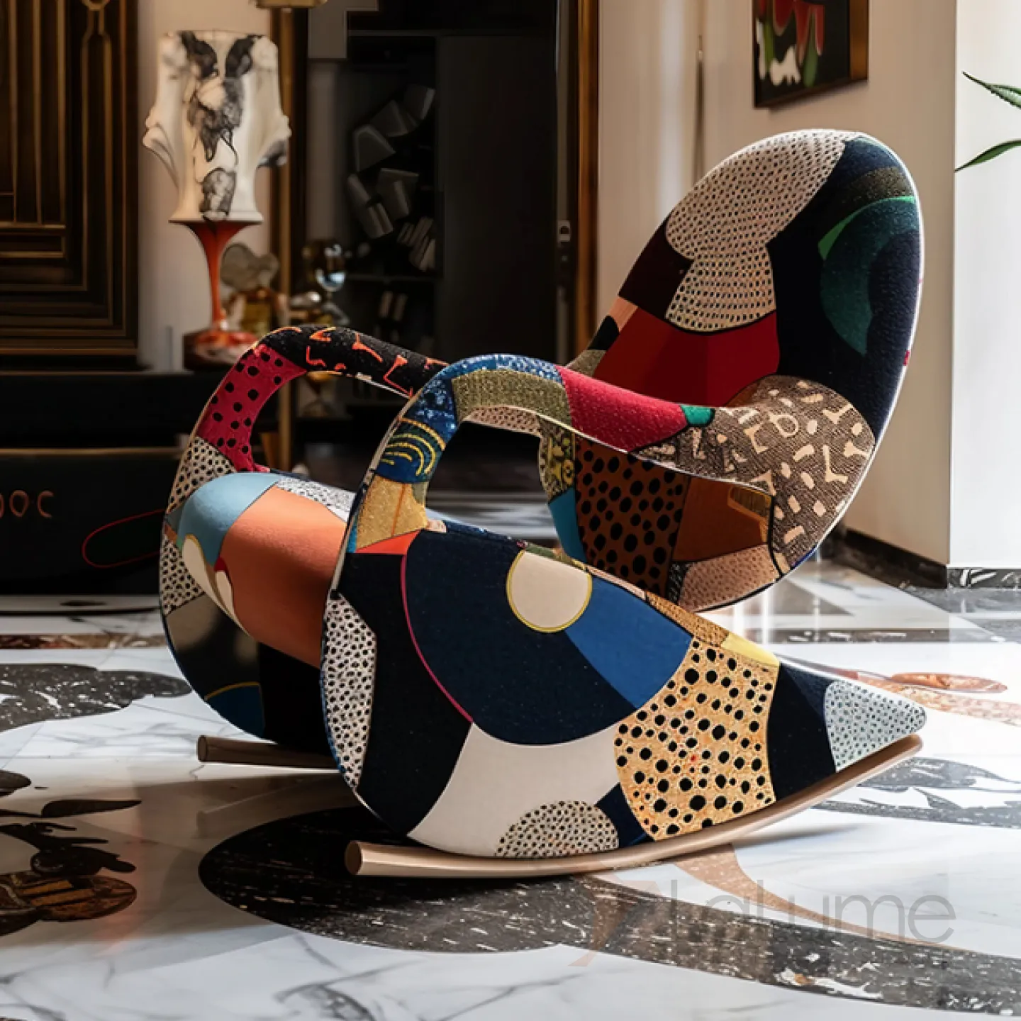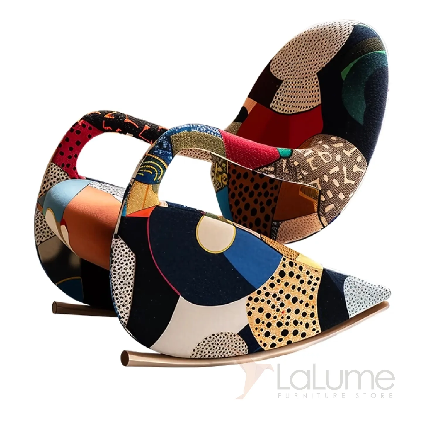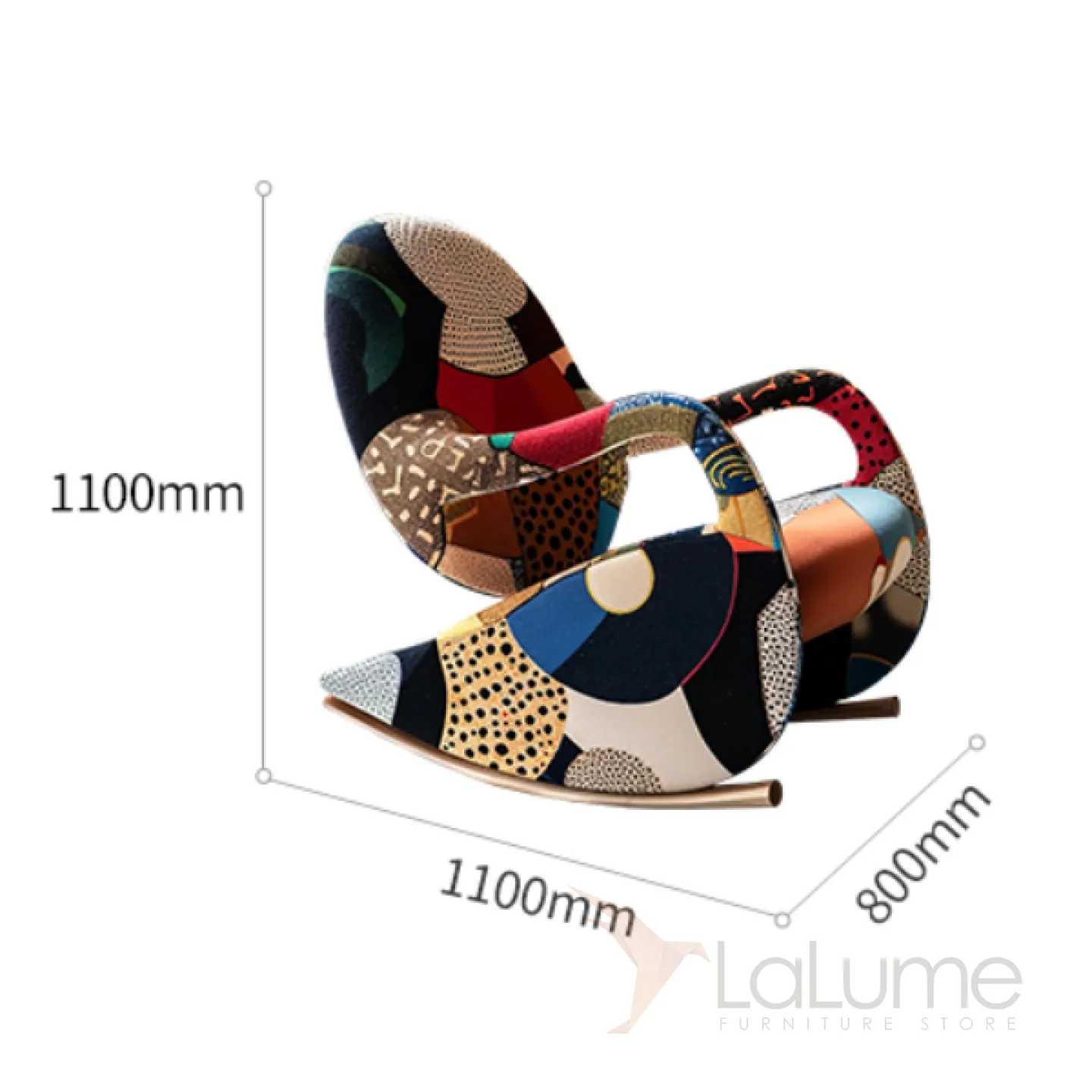 Кресло-качалка из дерева и ткани с оригинальным рисунком станет ярким акцентом вашего интерьера. Его изящный дизайн и мягкое сиденье создадут атмосферу домашнего уюта.