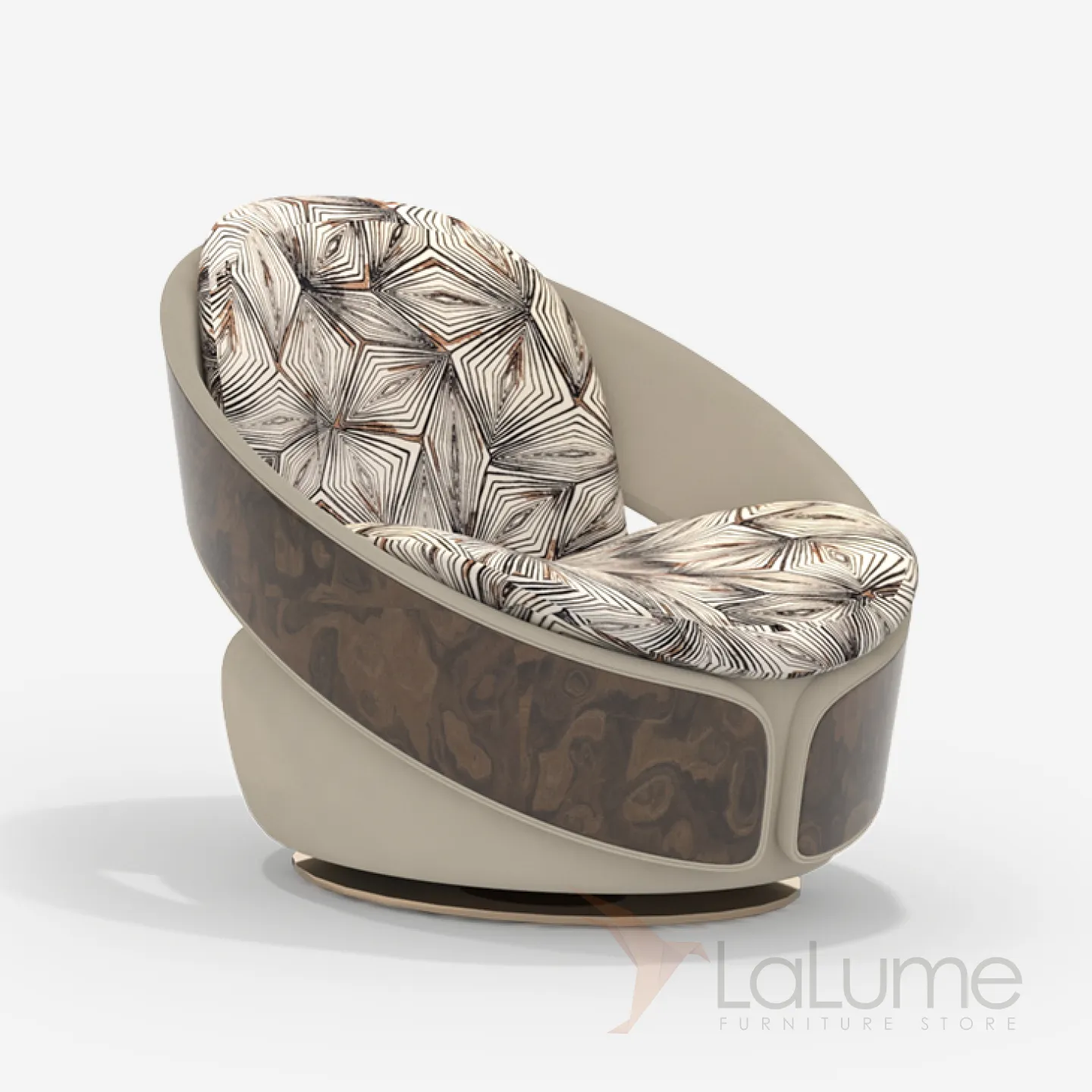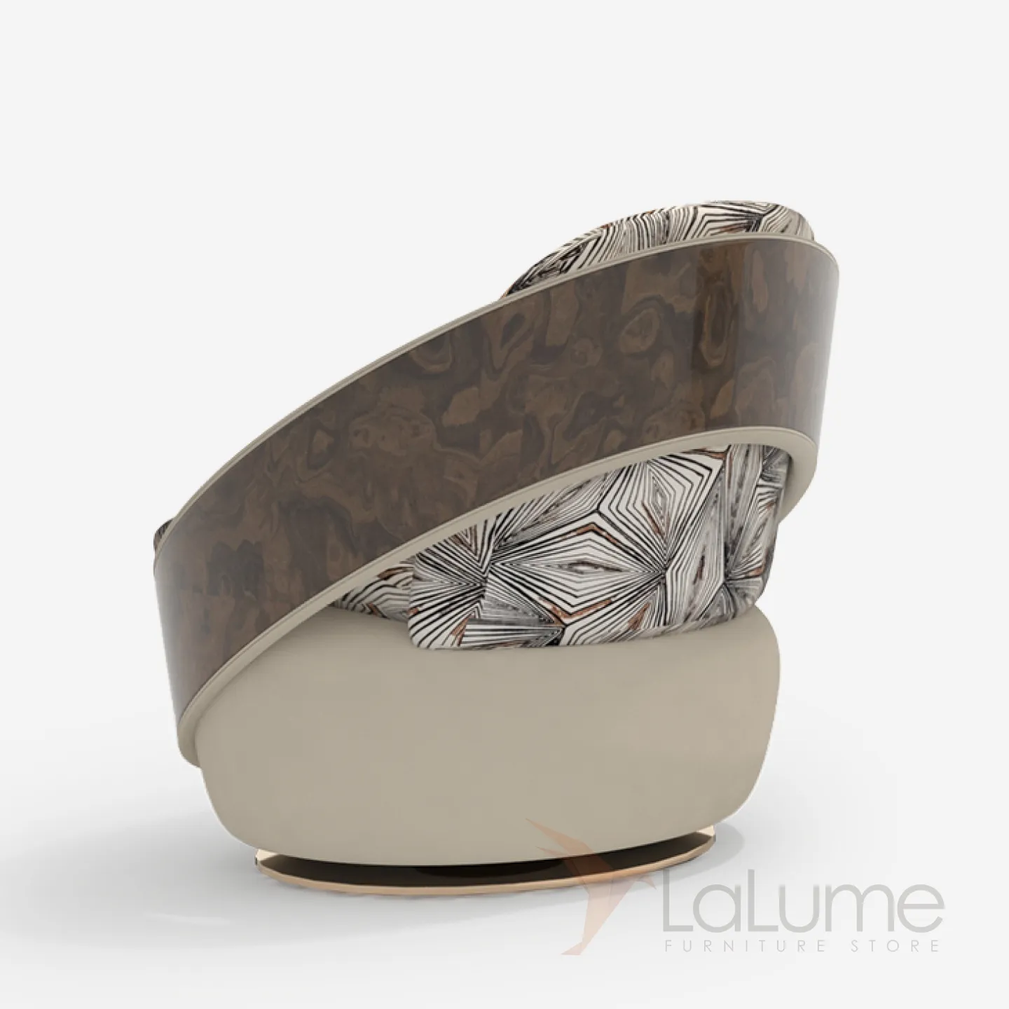 Кресло из бука и латуни обито мягкой бежевой воловьей кожей. Его продуманная конструкция с удобной спинкой, подголовником и подушкой дарит ощущение уюта и покоя в любое время дня и ночи.