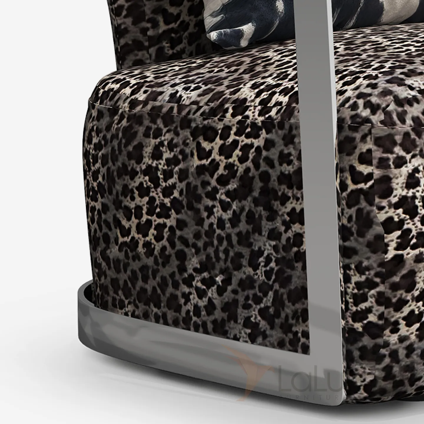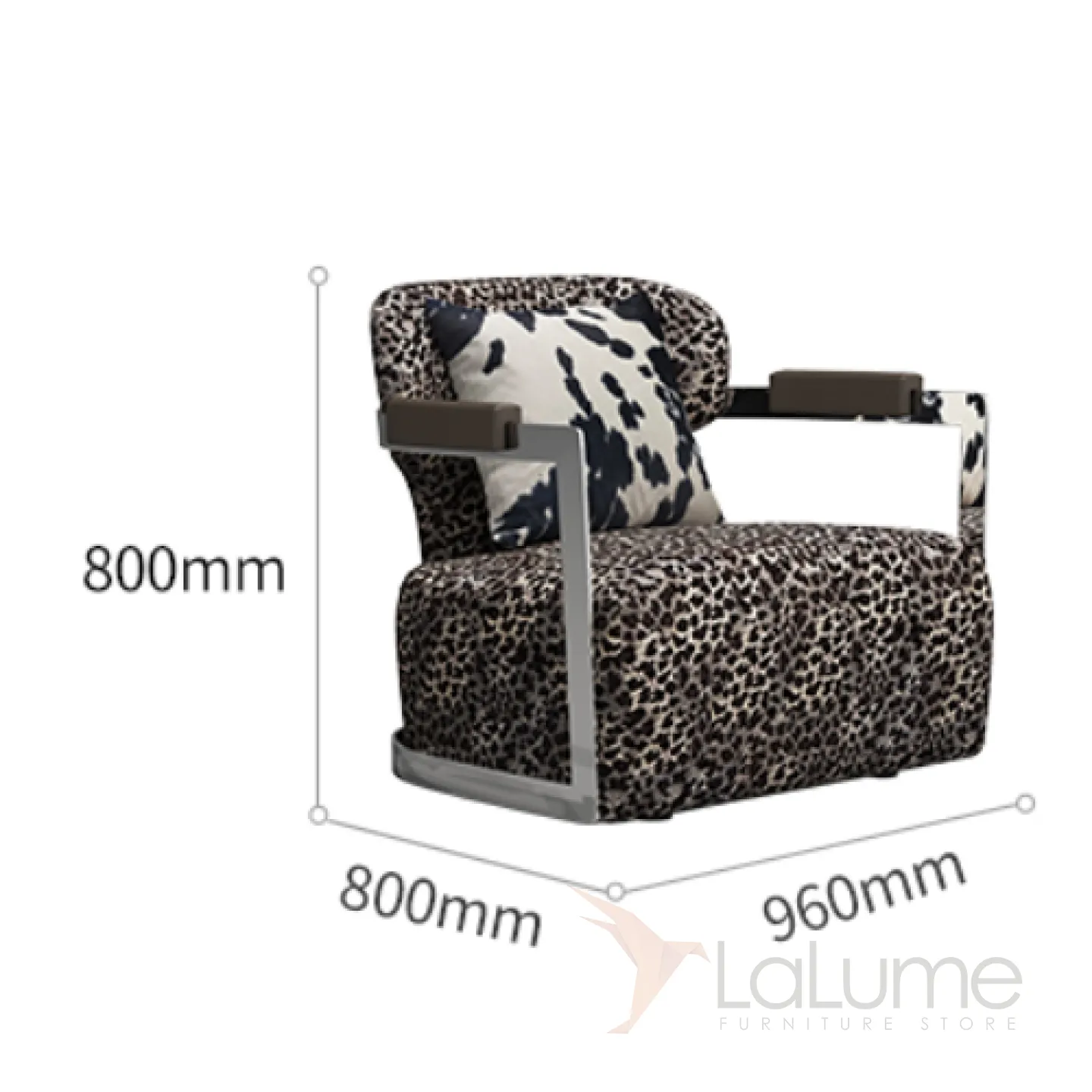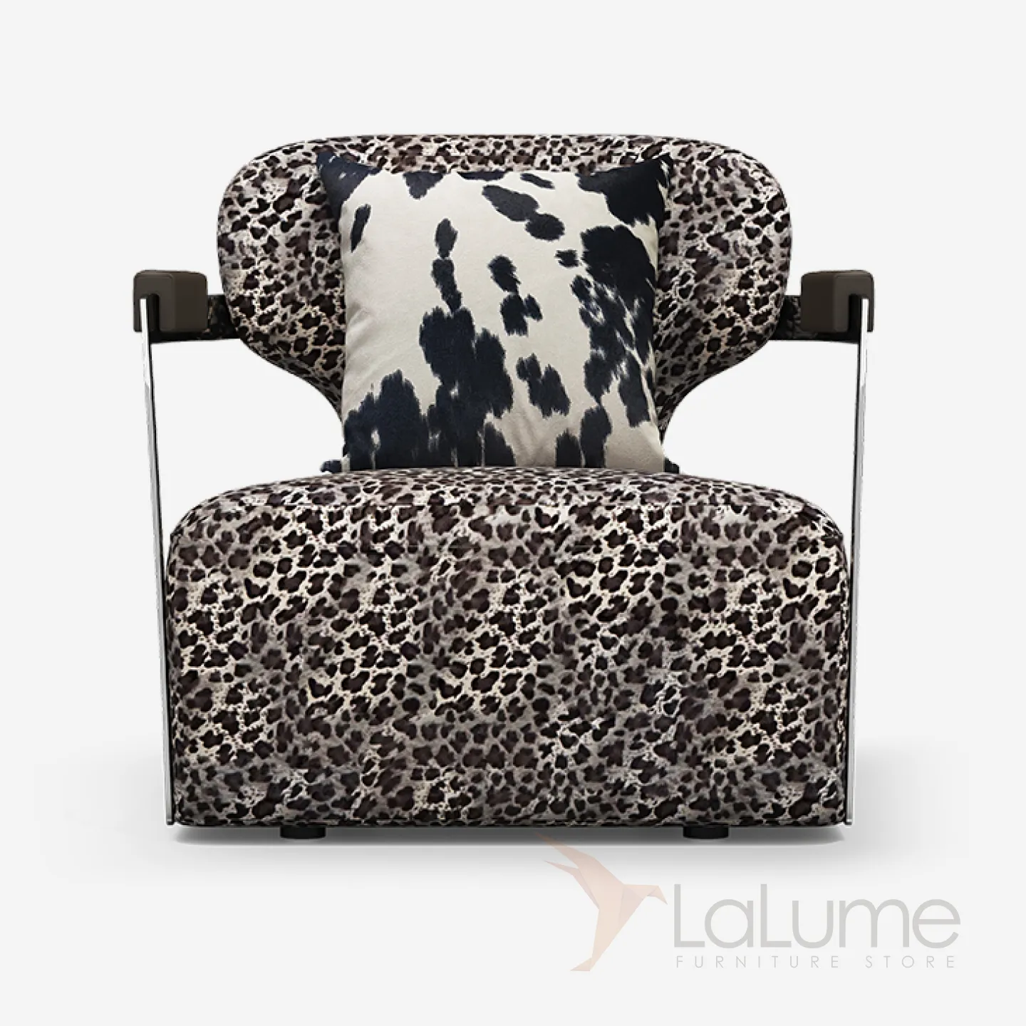 Дизайнерское кресло в стильной леопардовой расцветке. Основано на прочном буке и нержавеющей стали. Мягкость обеспечивает качественный поролон и мебельная фланель.